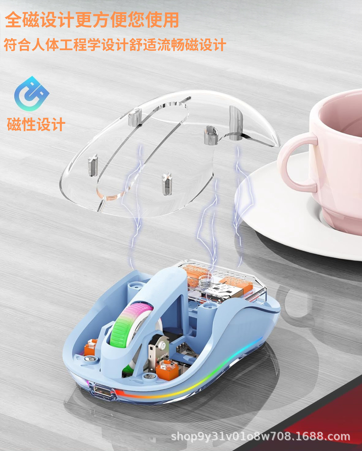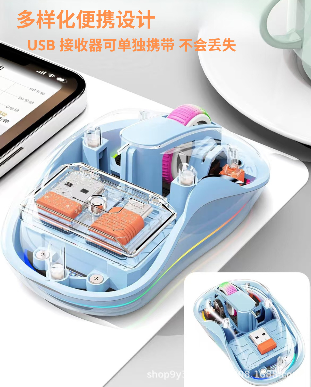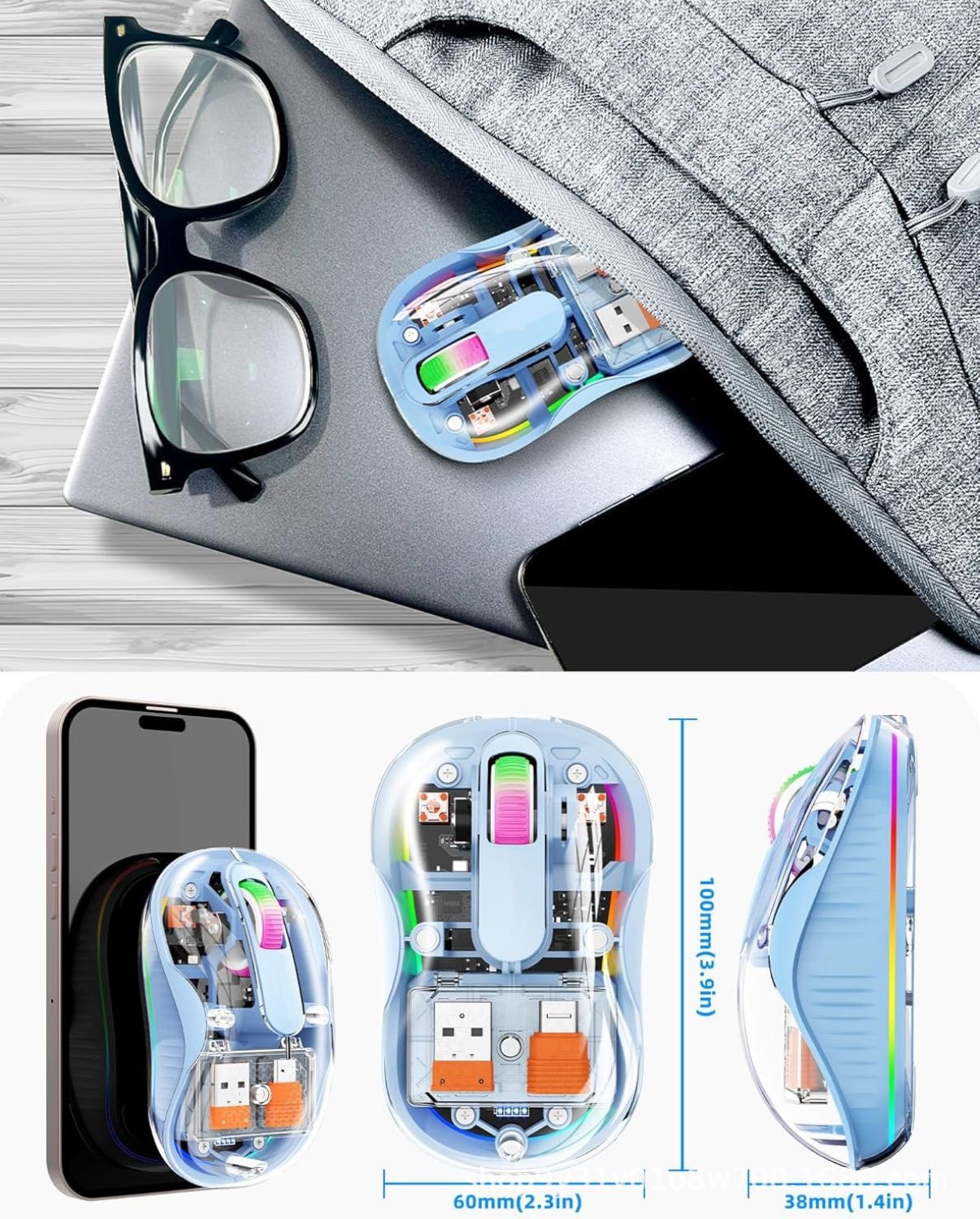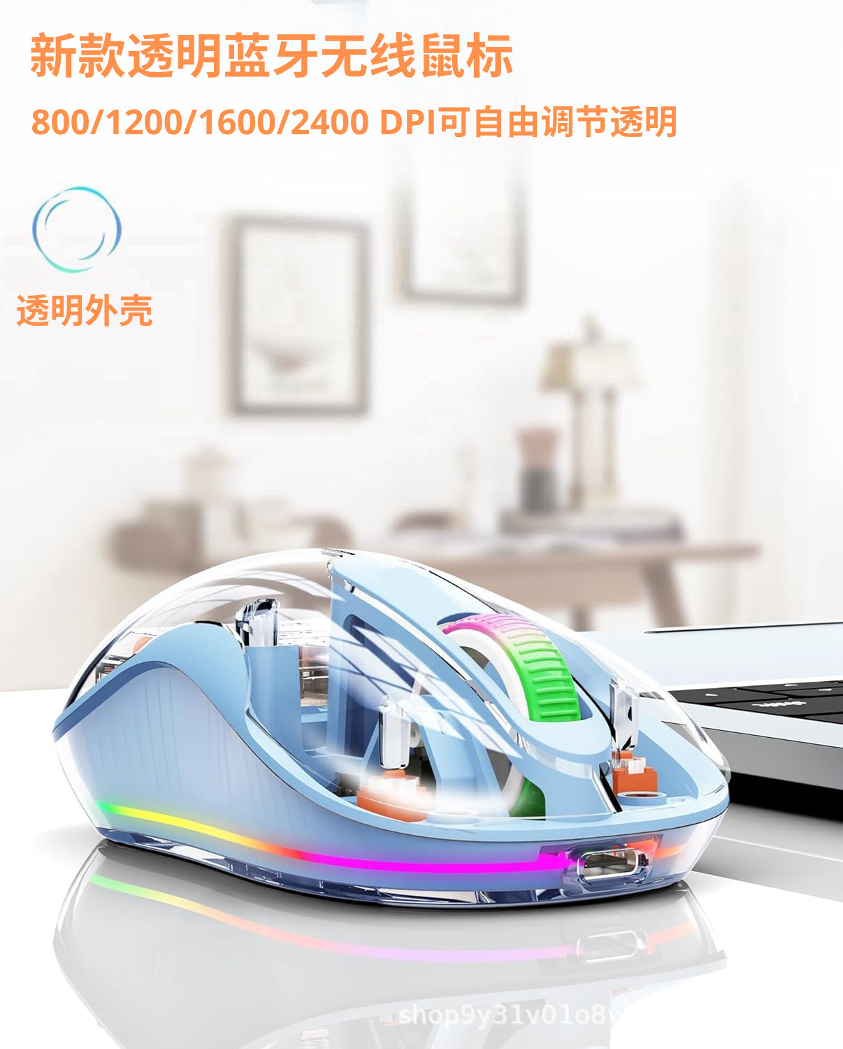 고급스러운 무선 블루투스 마우스 M333 C포트 충전 투명 디자인 호흡등 노트북 및 데스크탑용스토어 가기
