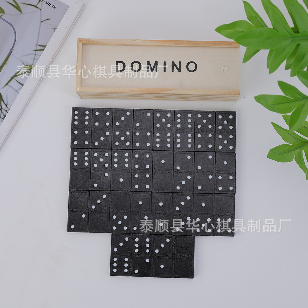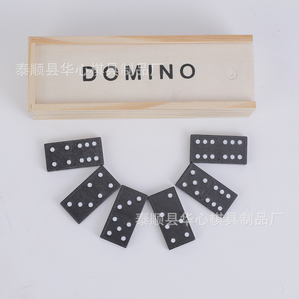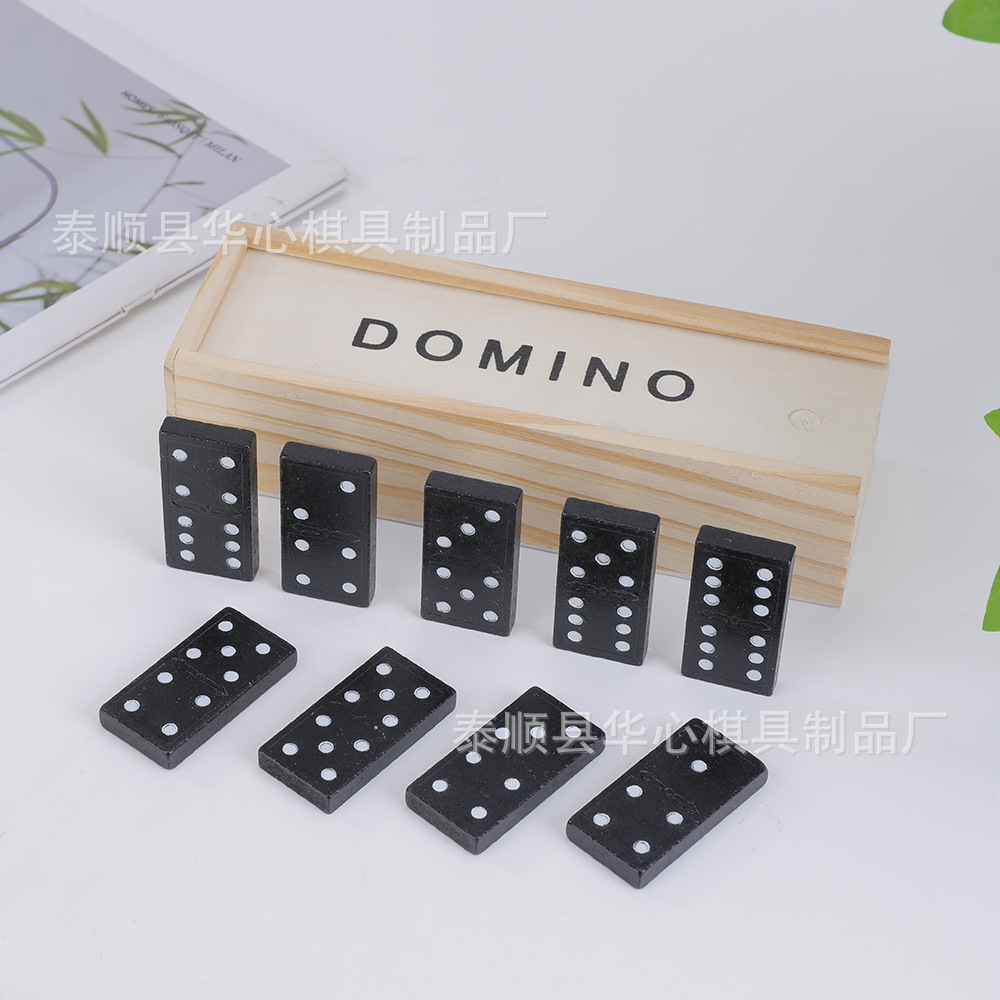대외 무역 국경 나무 도미노 28 조각 검은 도미노 나무 상자 체스 테이블 투어 가르침 도미노스토어 가기