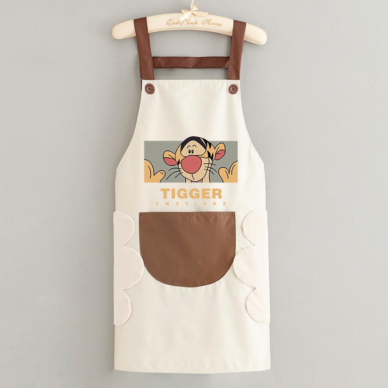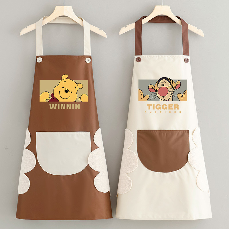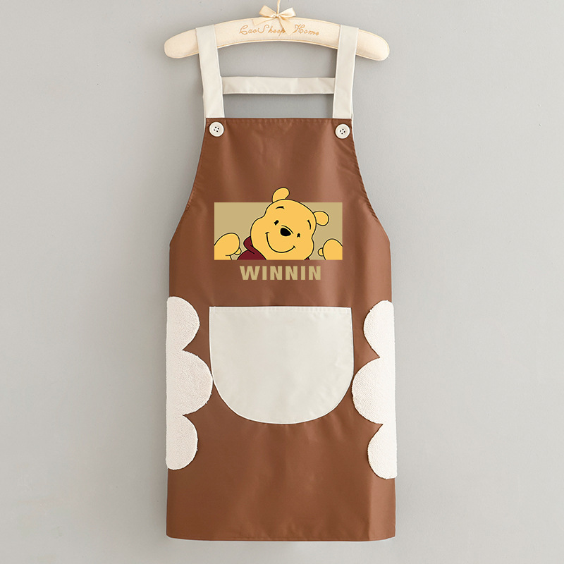 • 손 닦기 방수 홀터넥 브라운 그레이 포켓 곰돌이 푸 + 그레이 커피 포켓 티거