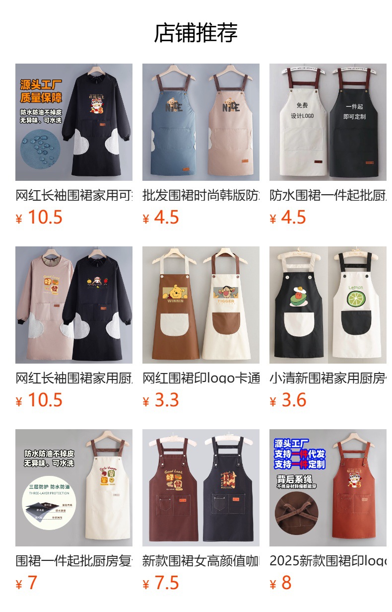 인터넷 유명인 앞치마, 사진에 따라 맞춤형 로고, 만화 프린트, 주방용 민소매 작업복, 방수 및 방유, 케이터링 전용 앞치마스토어 가기