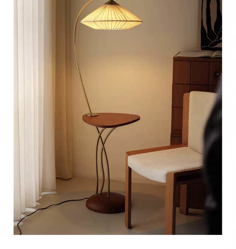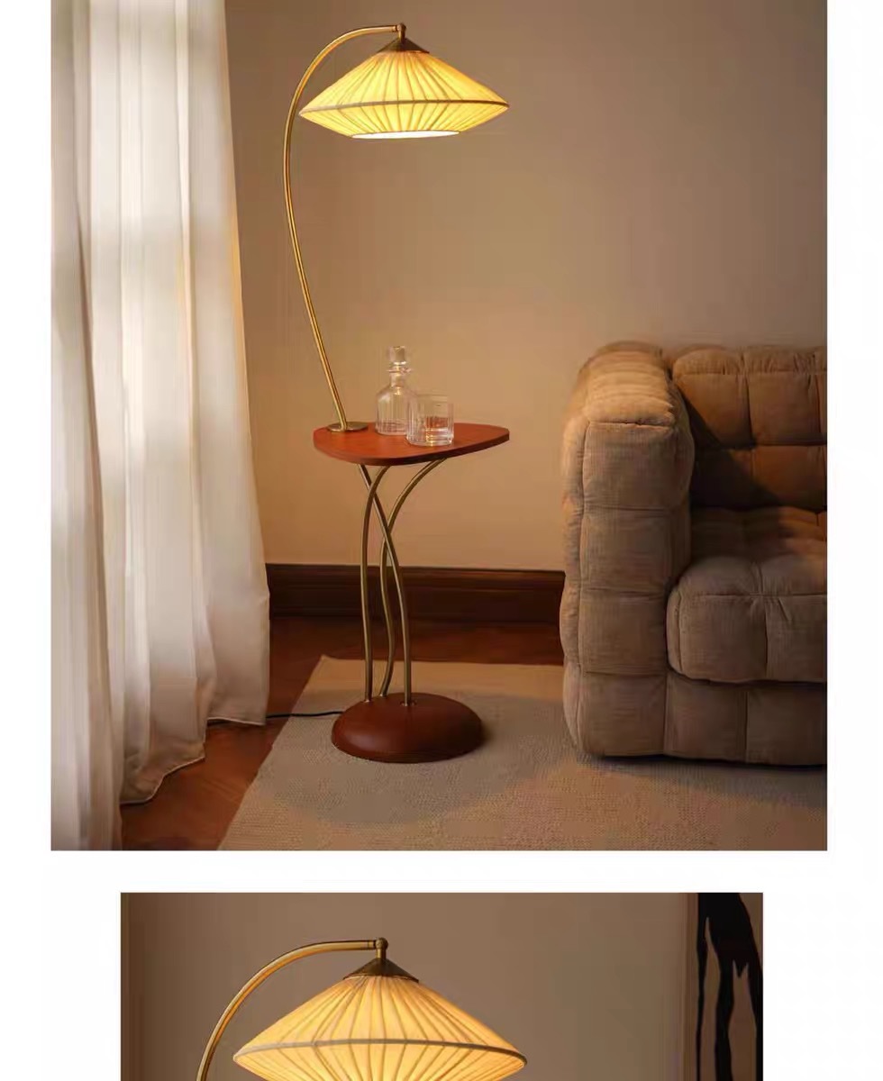 중간 고대 거실 소파 사이드 커피 테이블 바닥 램프 저장 랙 빈티지 침실 램프 장식 분위기 수직 테이블 램프