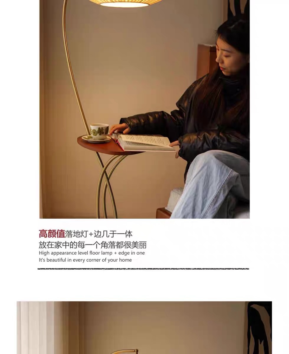 중간 고대 거실 소파 사이드 커피 테이블 바닥 램프 저장 랙 빈티지 침실 램프 장식 분위기 수직 테이블 램프스토어 가기