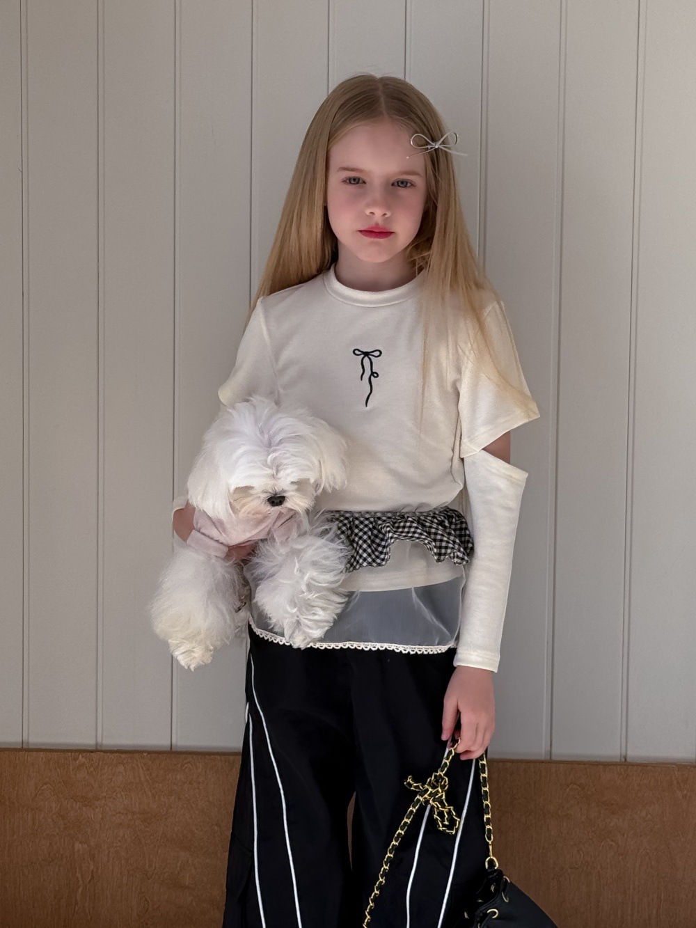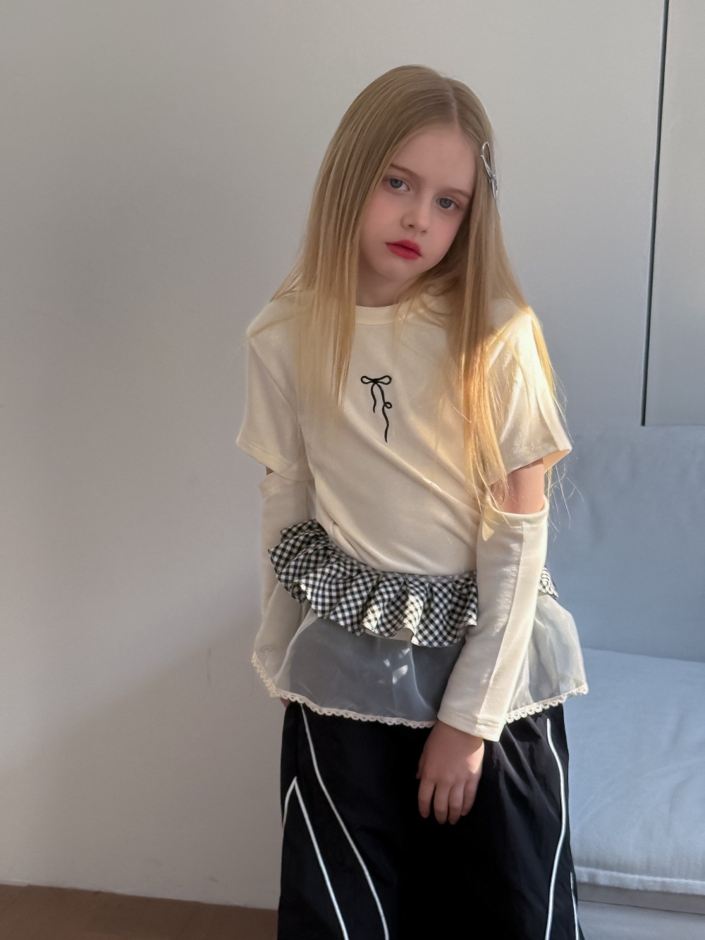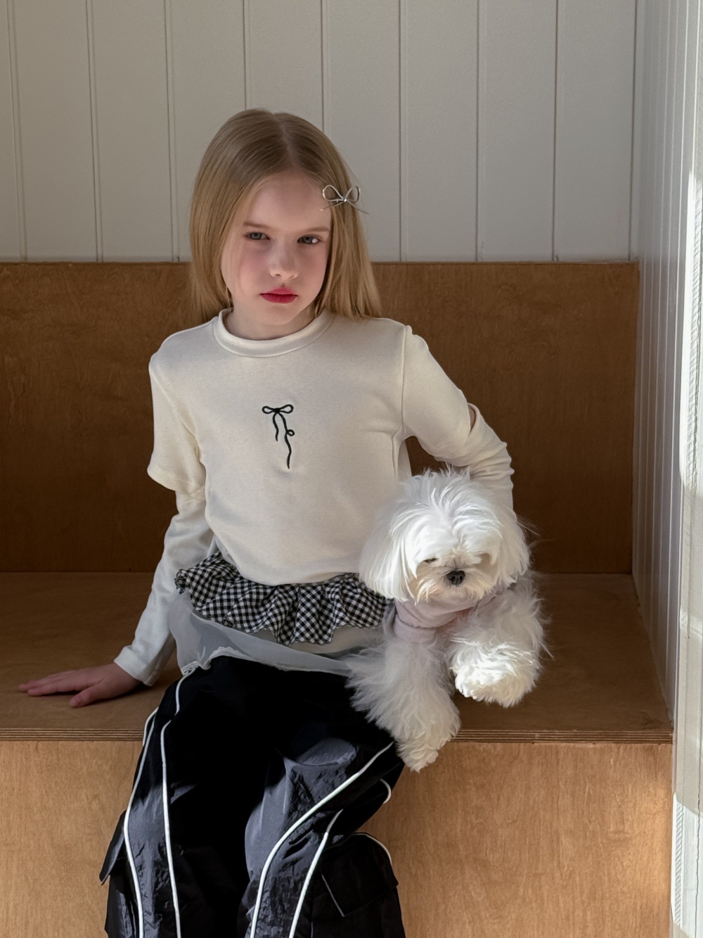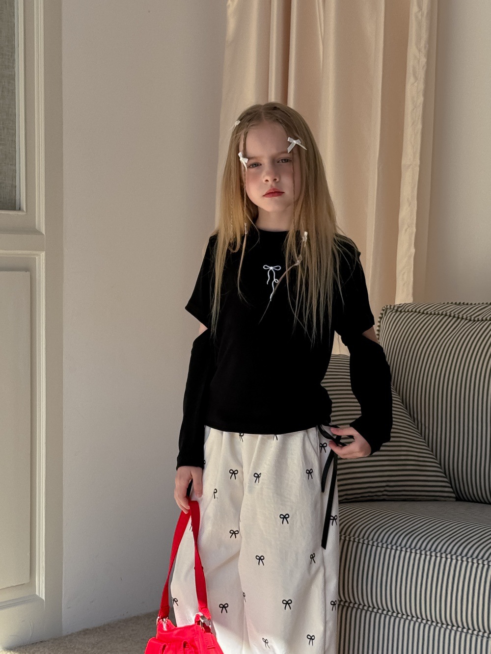 2025 봄과 가을 새로운 스타일 Bowknot 요소 소녀의 미국 슬림 피트 셔츠 어린이 중대형 어린이 스트레치 티셔츠