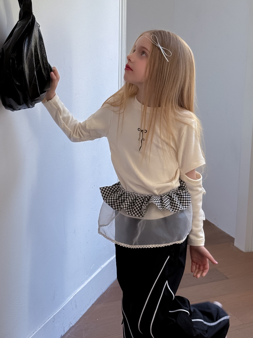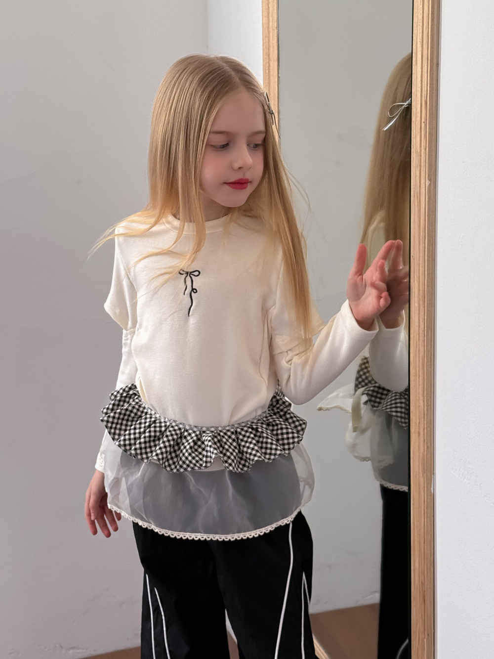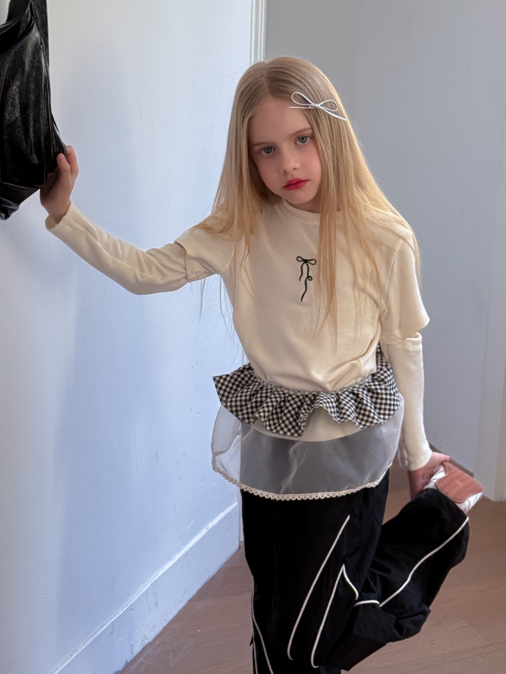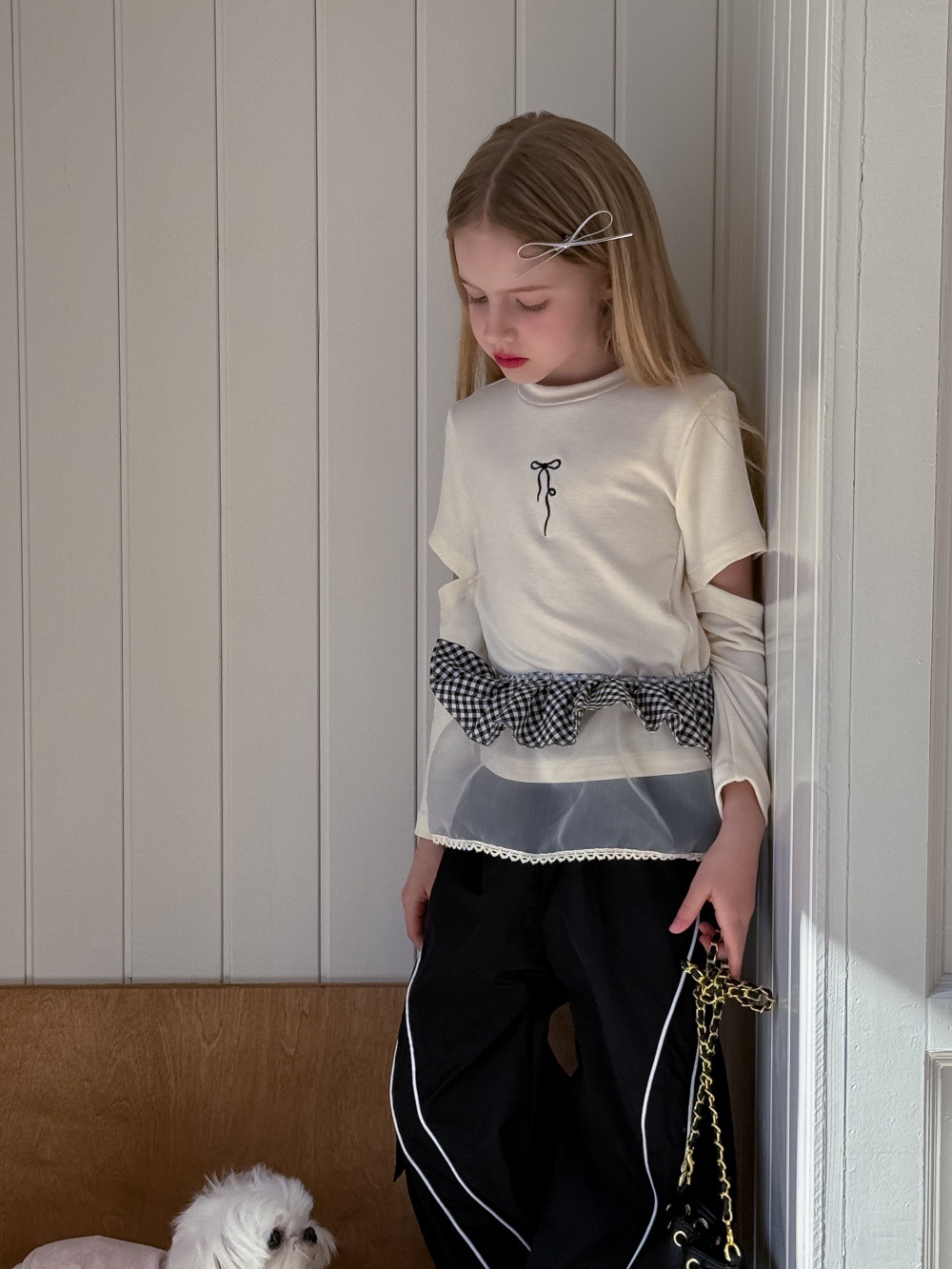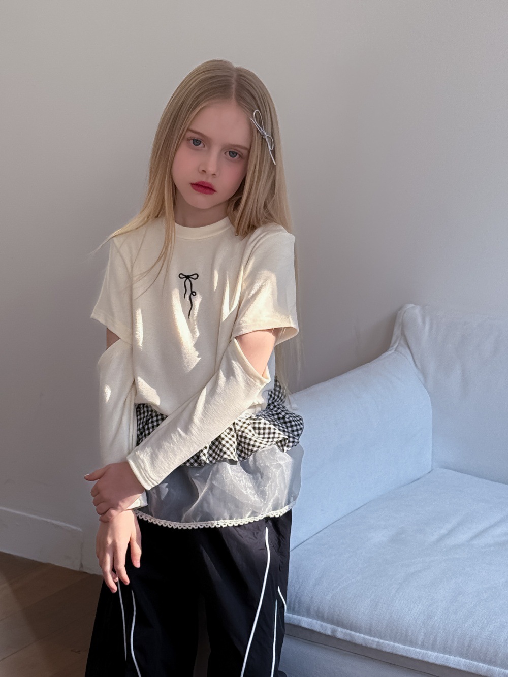 2025 봄과 가을 새로운 스타일 Bowknot 요소 소녀의 미국 슬림 피트 셔츠 어린이 중대형 어린이 스트레치 티셔츠