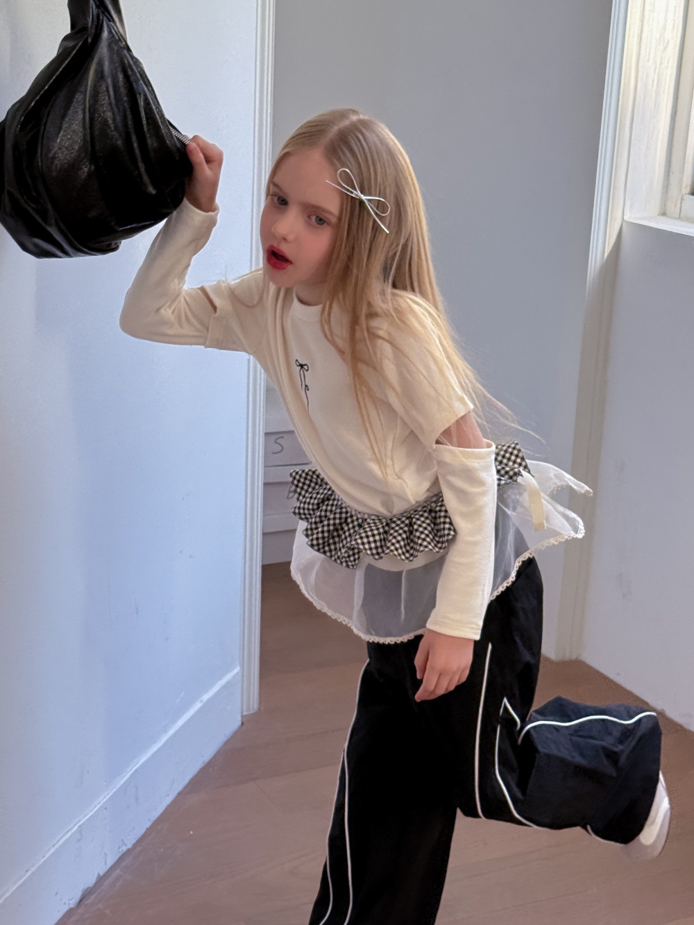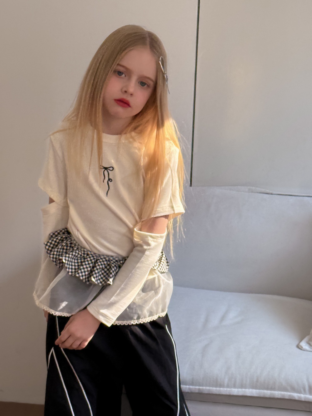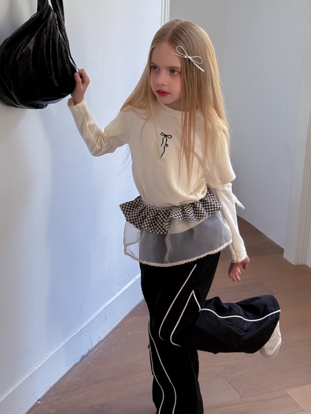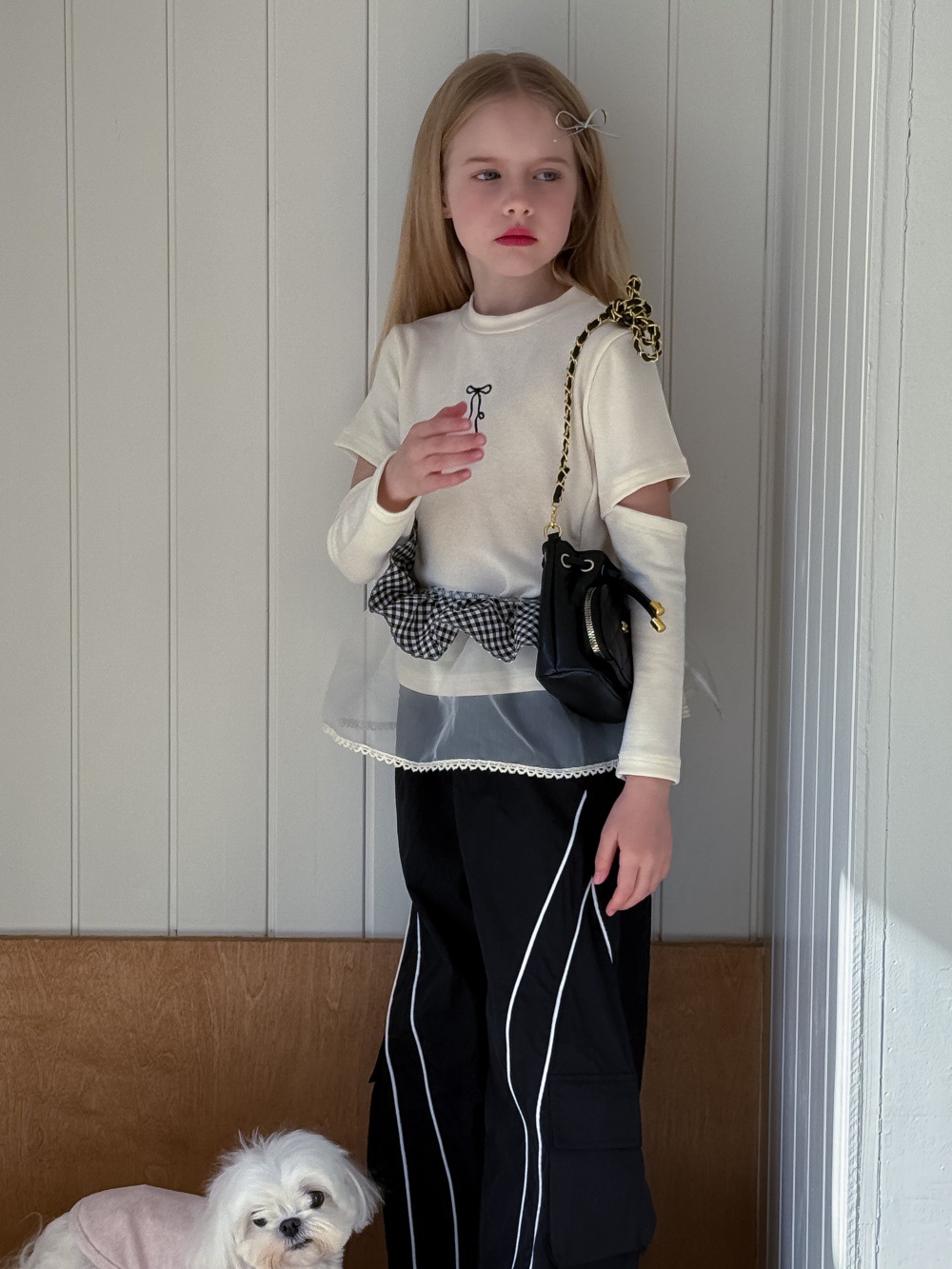 2025 봄과 가을 새로운 스타일 Bowknot 요소 소녀의 미국 슬림 피트 셔츠 어린이 중대형 어린이 스트레치 티셔츠