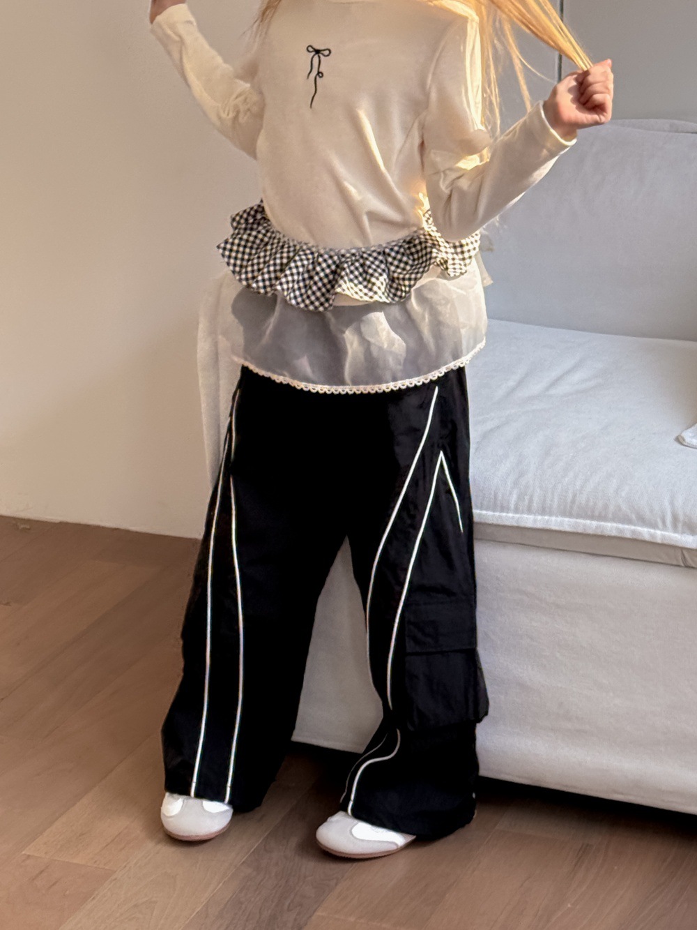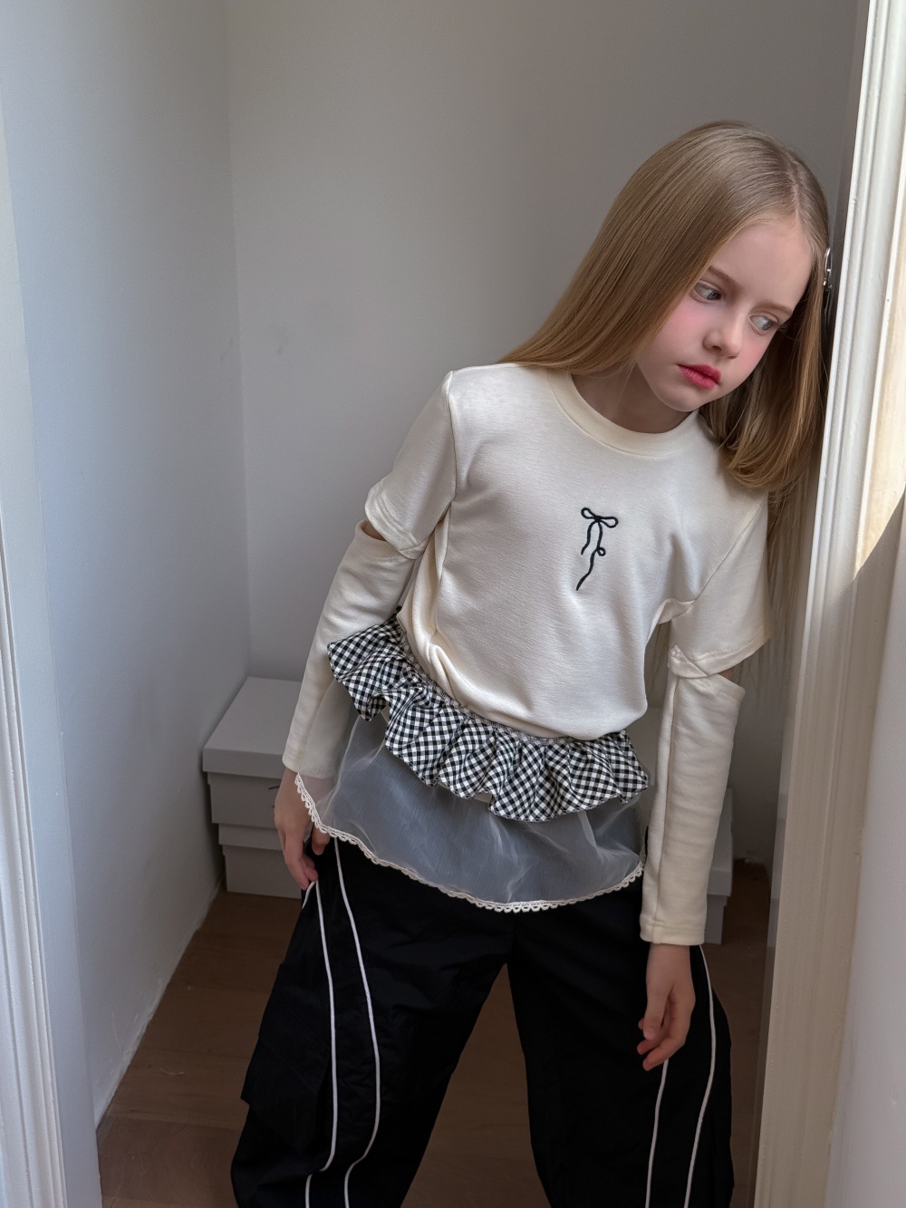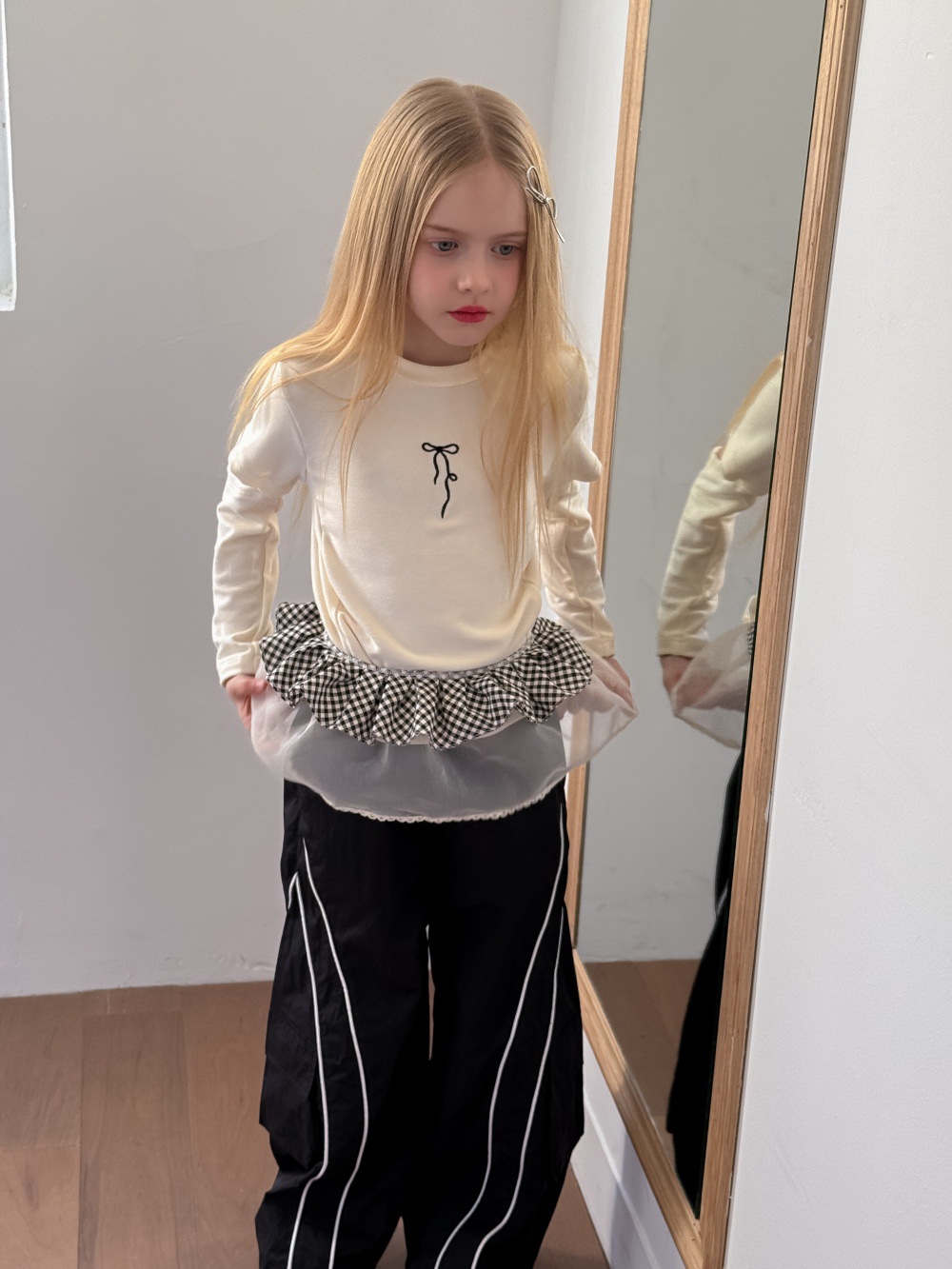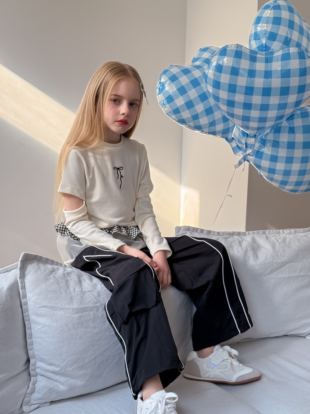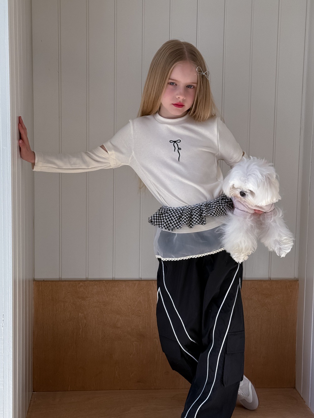 2025 봄과 가을 새로운 스타일 Bowknot 요소 소녀의 미국 슬림 피트 셔츠 어린이 중대형 어린이 스트레치 티셔츠