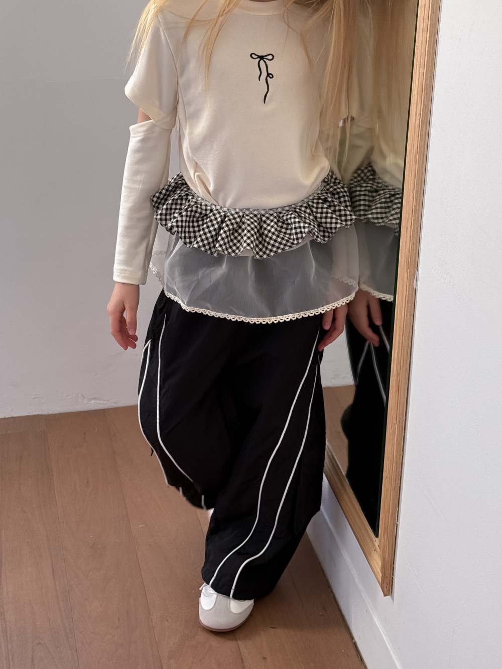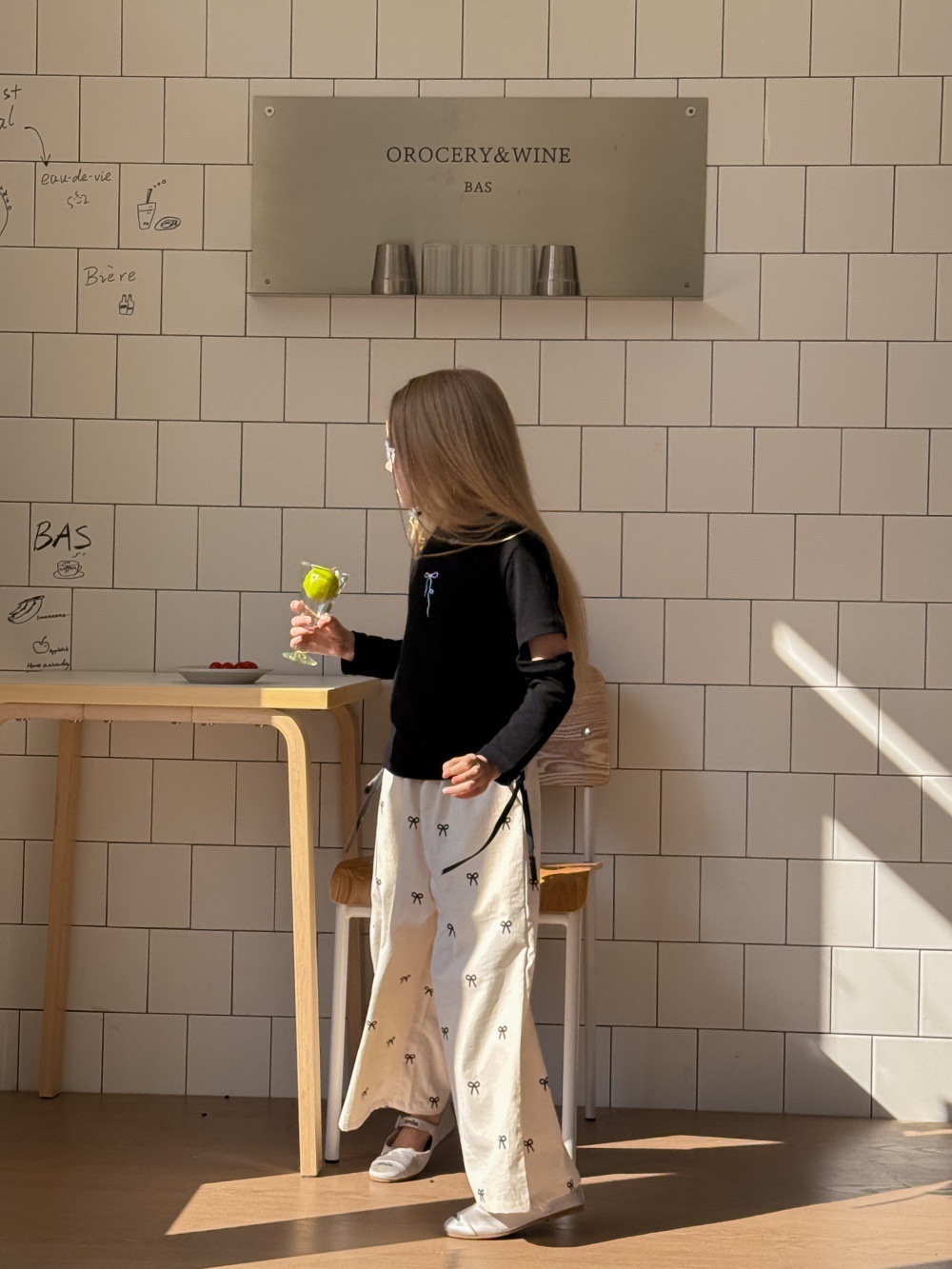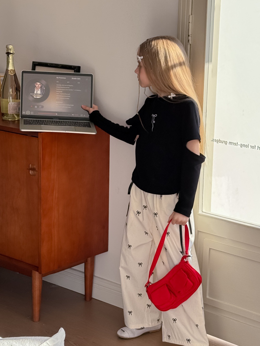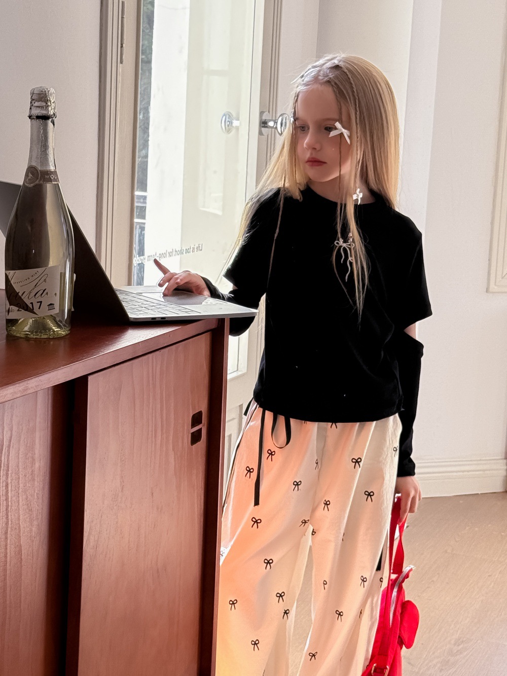 2025 봄과 가을 새로운 스타일 Bowknot 요소 소녀의 미국 슬림 피트 셔츠 어린이 중대형 어린이 스트레치 티셔츠스토어 가기
