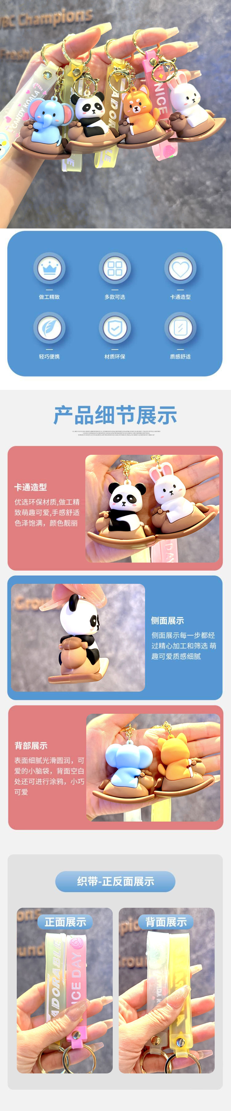 만화 흔들 말 pvc 키 체인 귀여운 팬더 창조적 인 가방 펜던트 자동차 체인 액세서리 블라인드 박스 도매스토어 가기