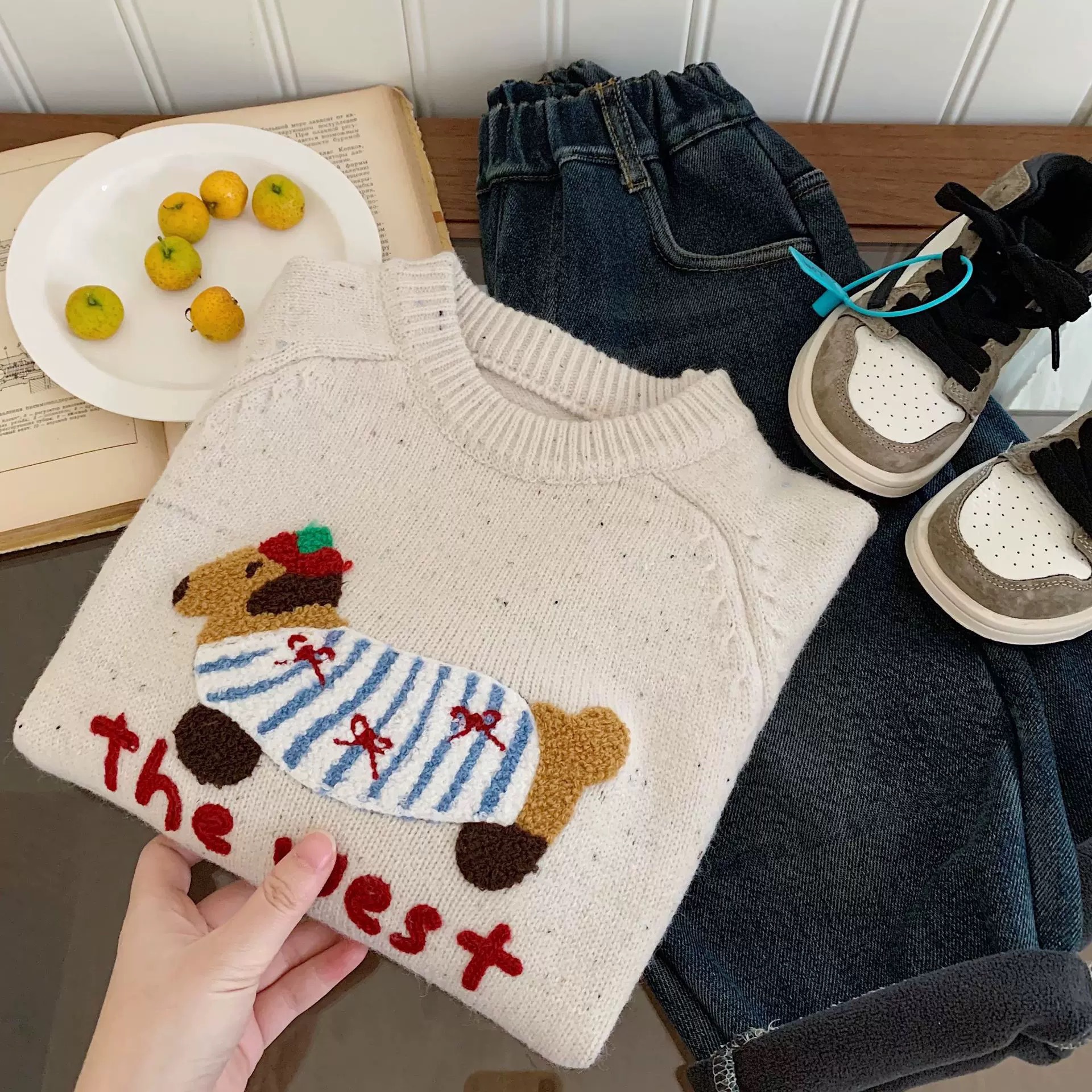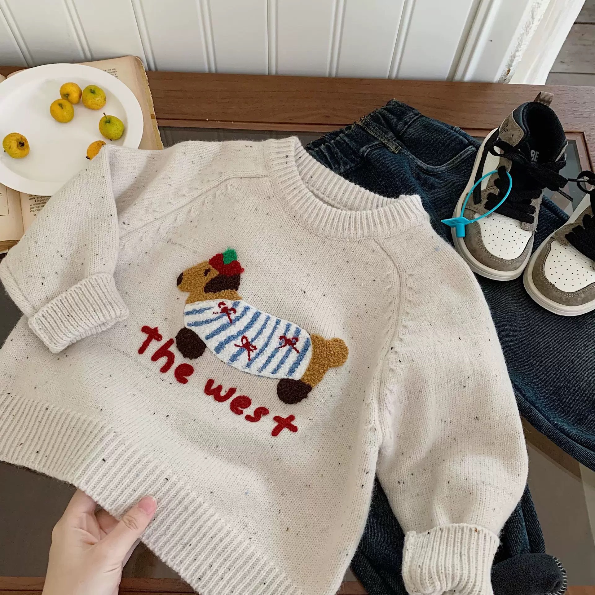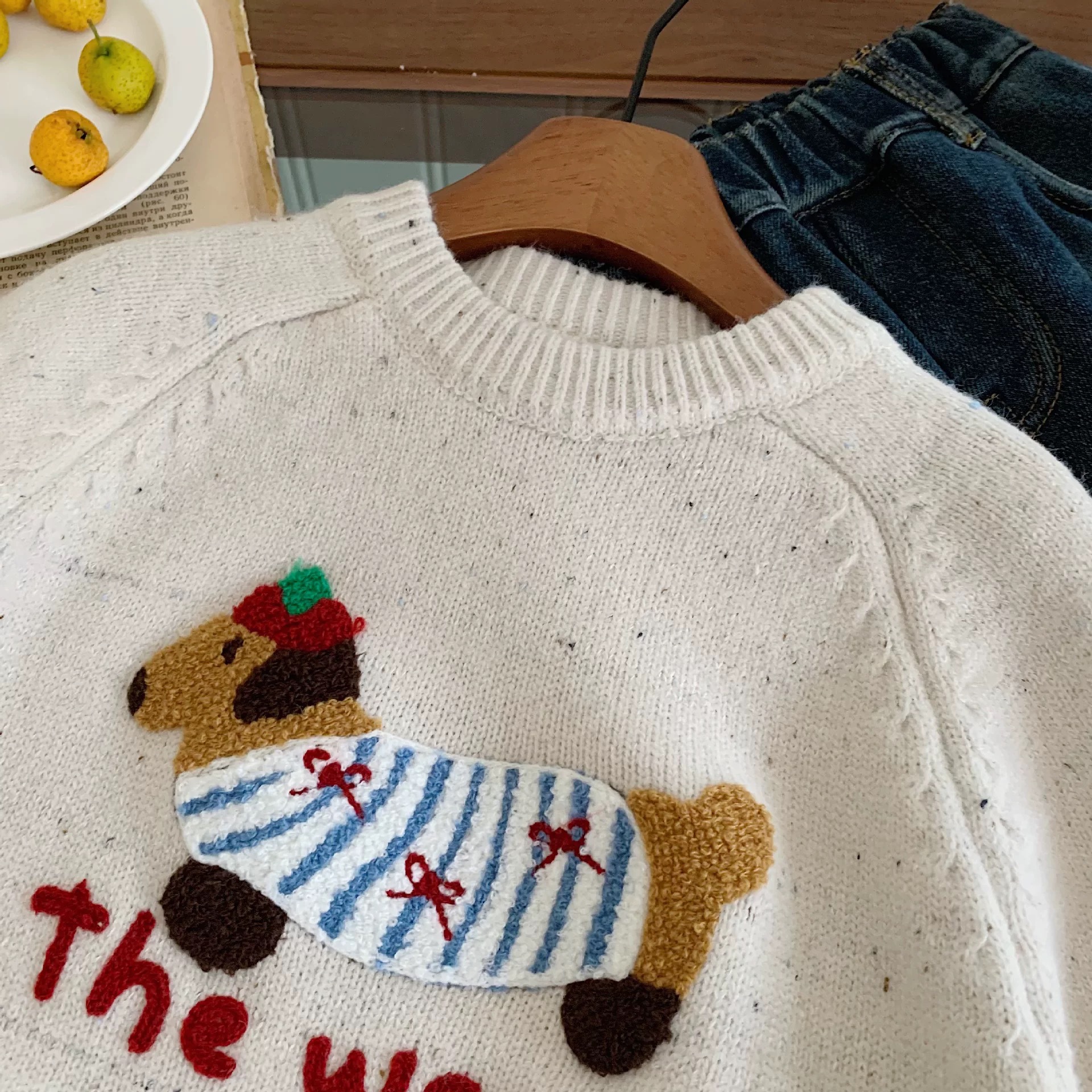 어머니 어린이 만화 스웨터 소년의 겨울 새로운 루즈 탑 강아지 아기 여성을위한 입체 두꺼운 스웨터스토어 가기