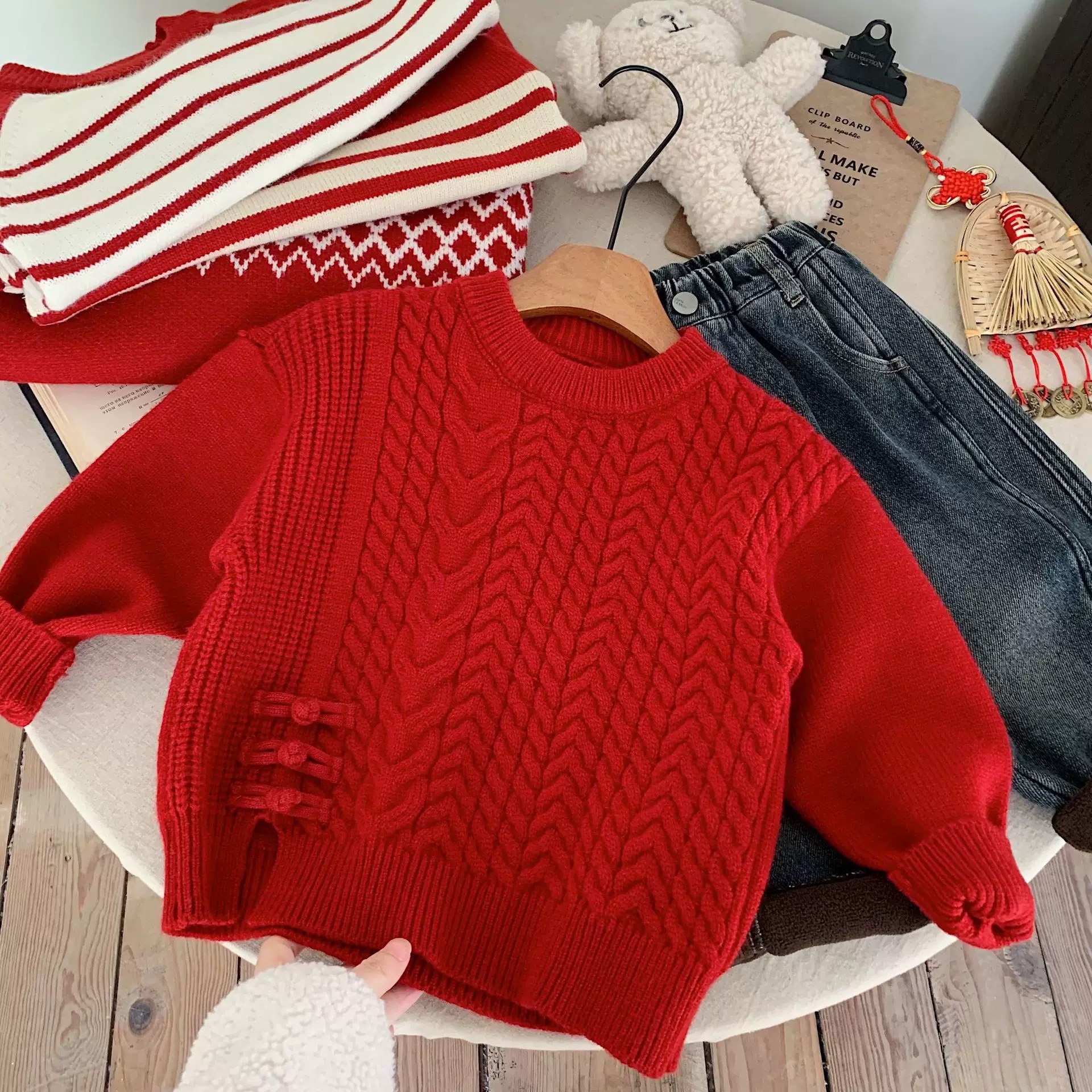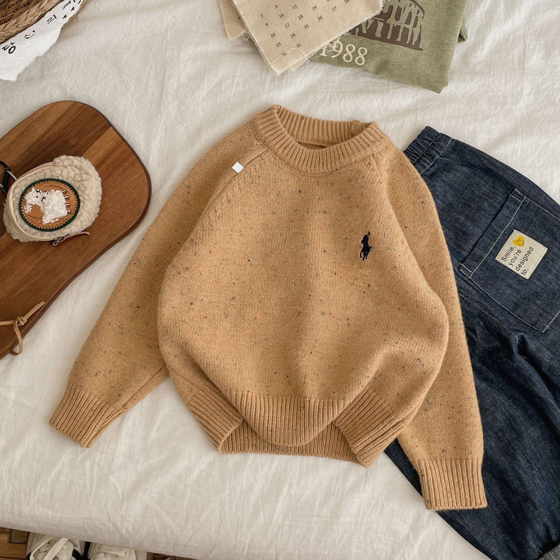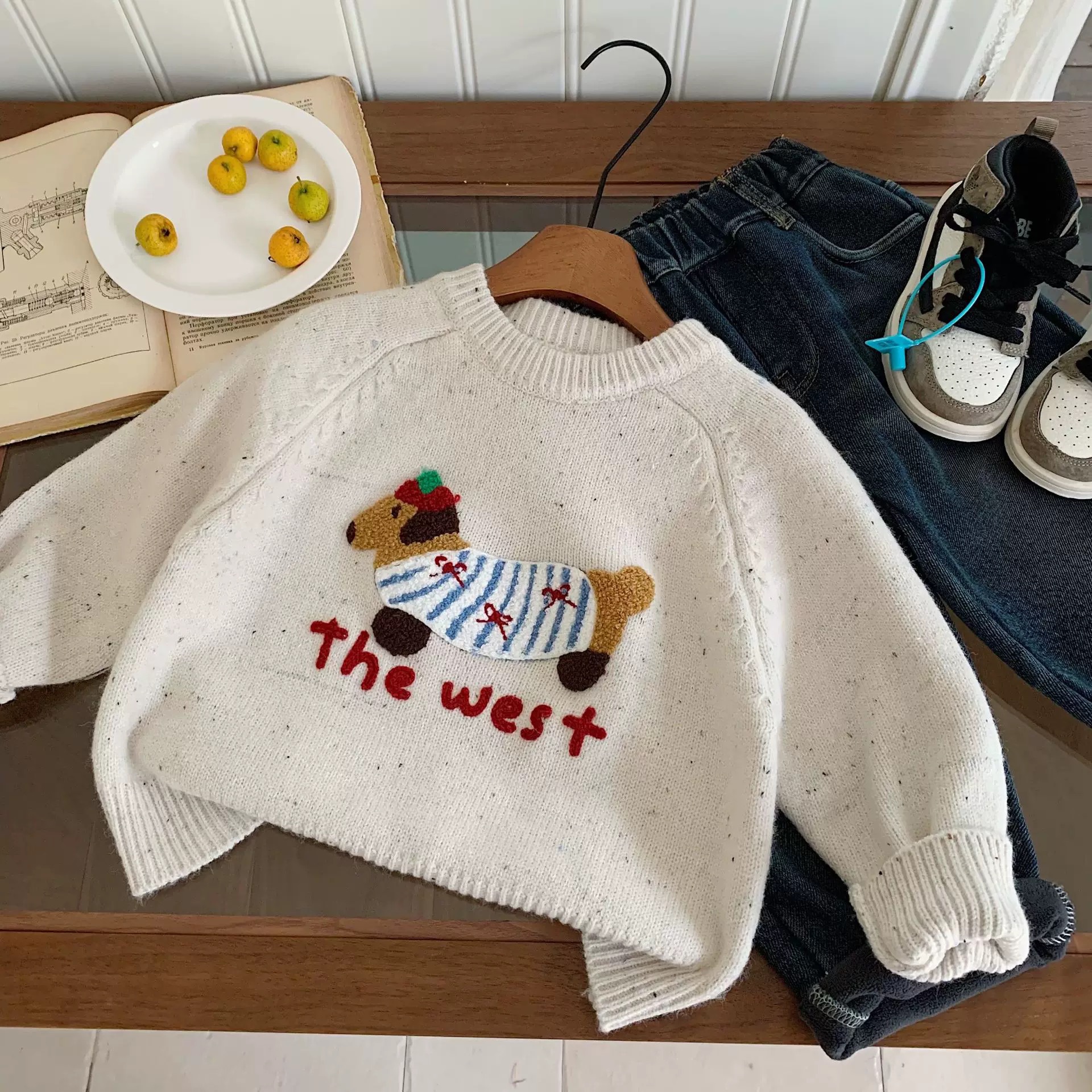 어머니 어린이 만화 스웨터 소년의 겨울 새로운 루즈 탑 강아지 아기 여성을위한 입체 두꺼운 스웨터스토어 가기
