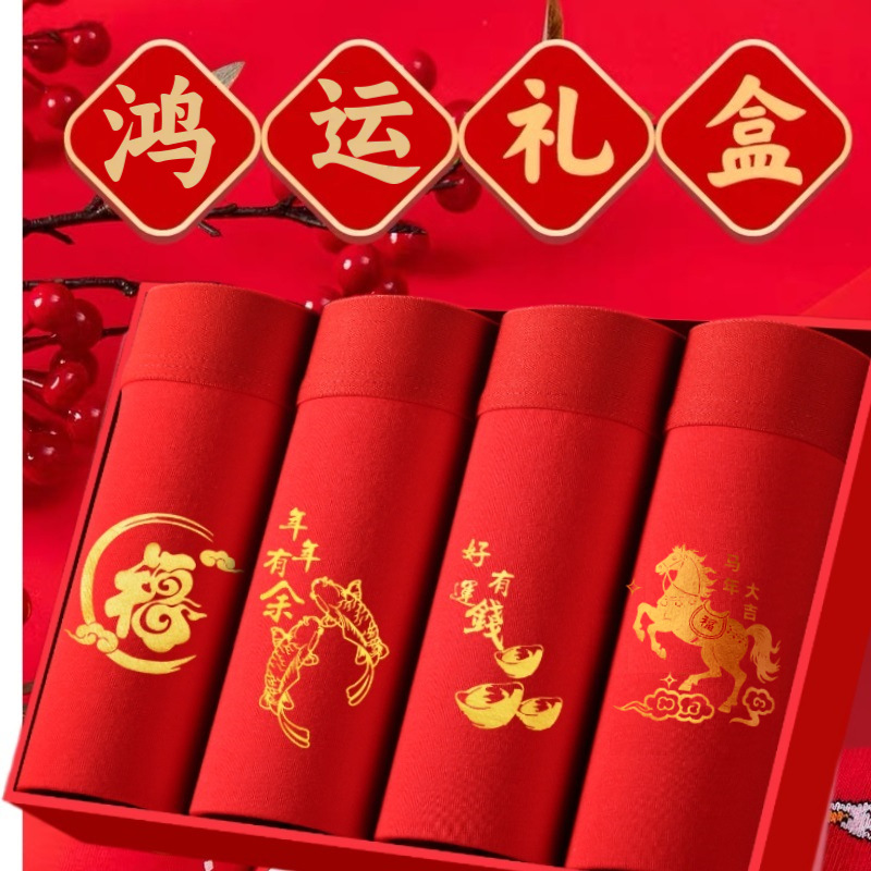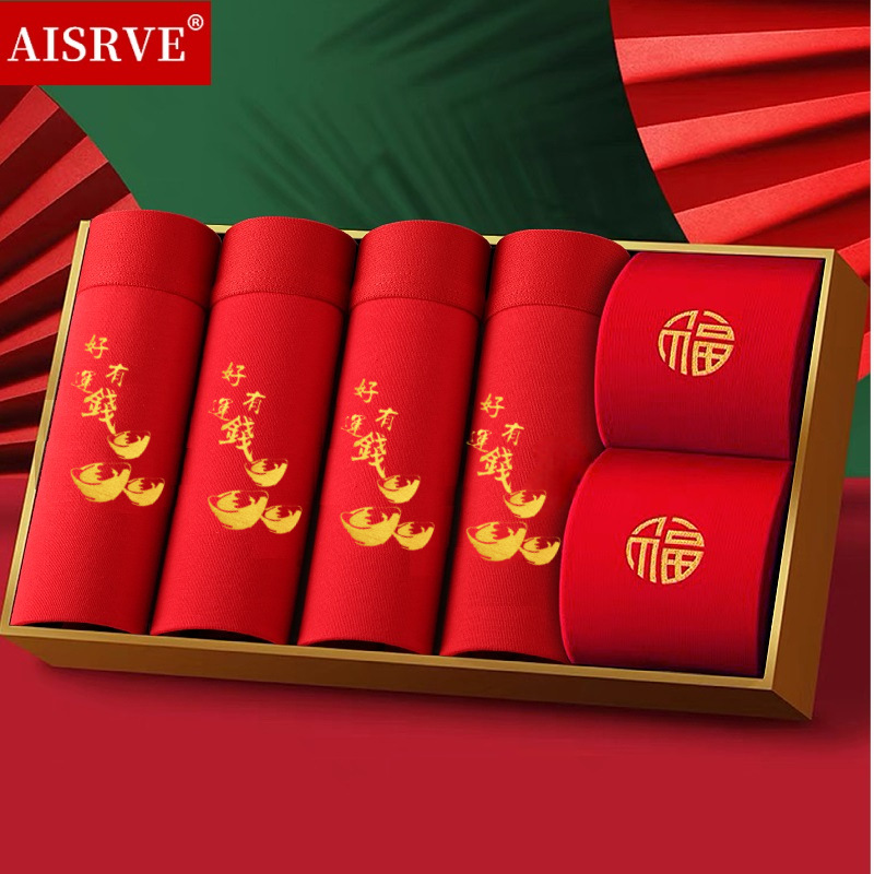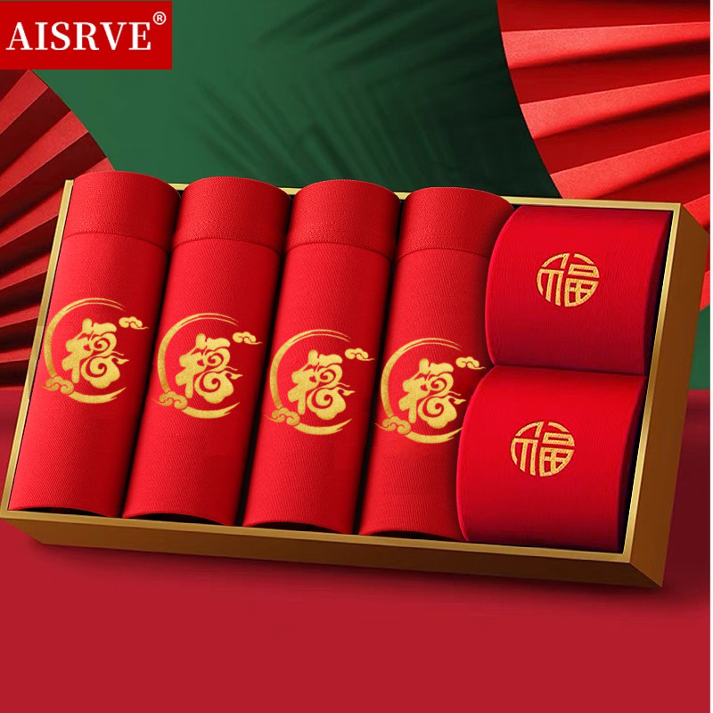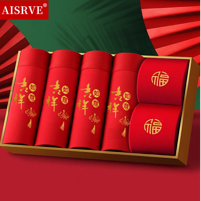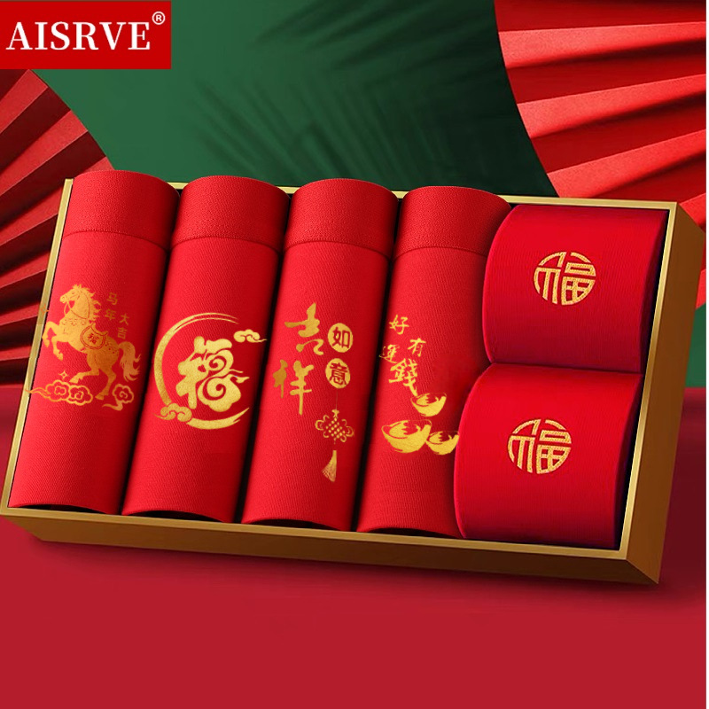 토끼띠 선물세트 남성용 사각팬티 빨간색 면팬티 항균 빨간색 속옷 양말 세트 도매