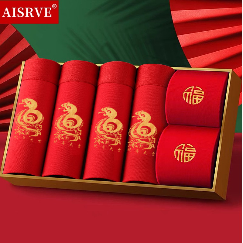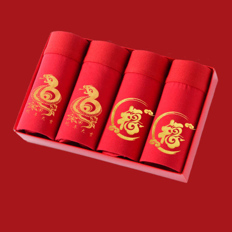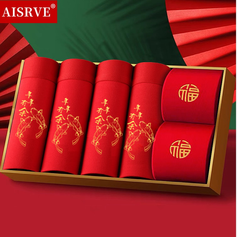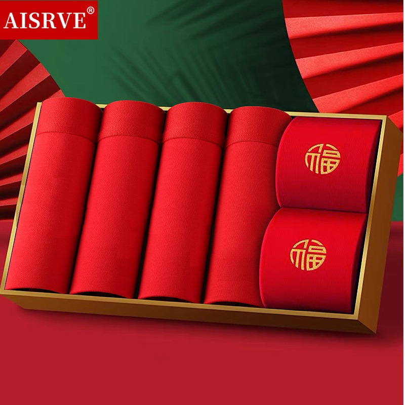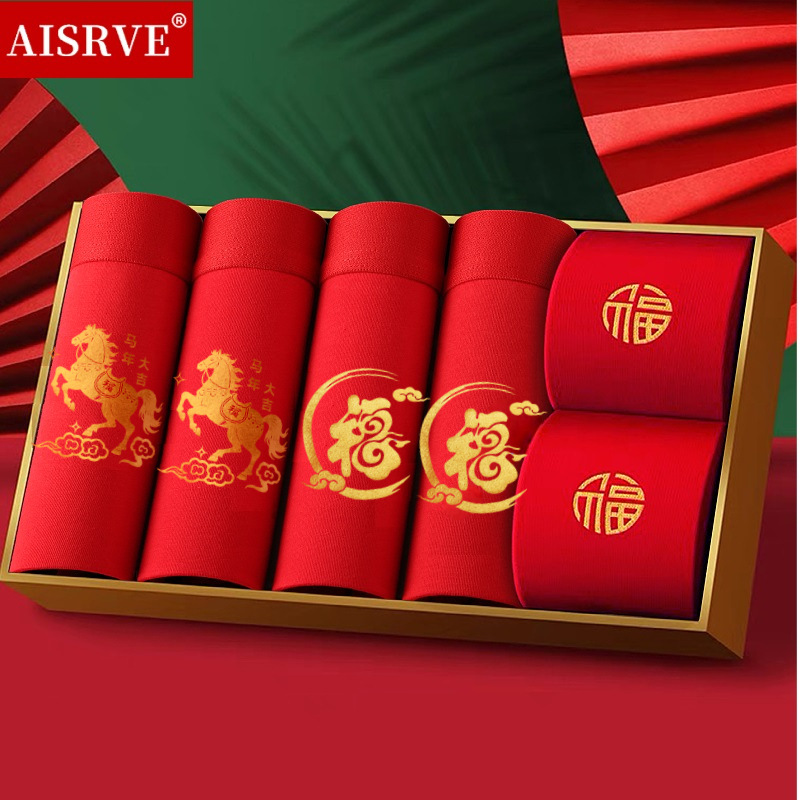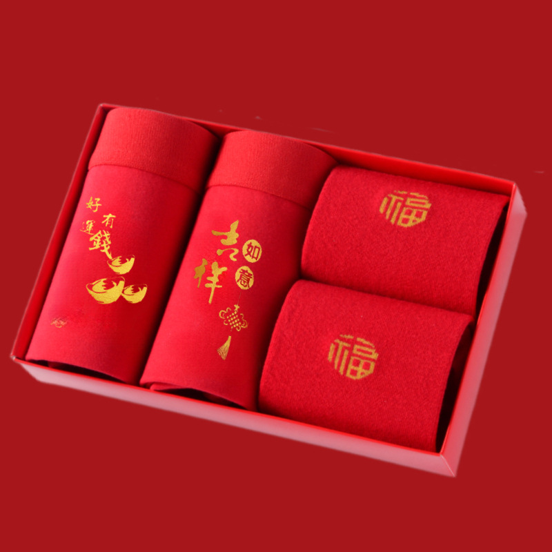 토끼띠 선물세트 남성용 사각팬티 빨간색 면팬티 항균 빨간색 속옷 양말 세트 도매