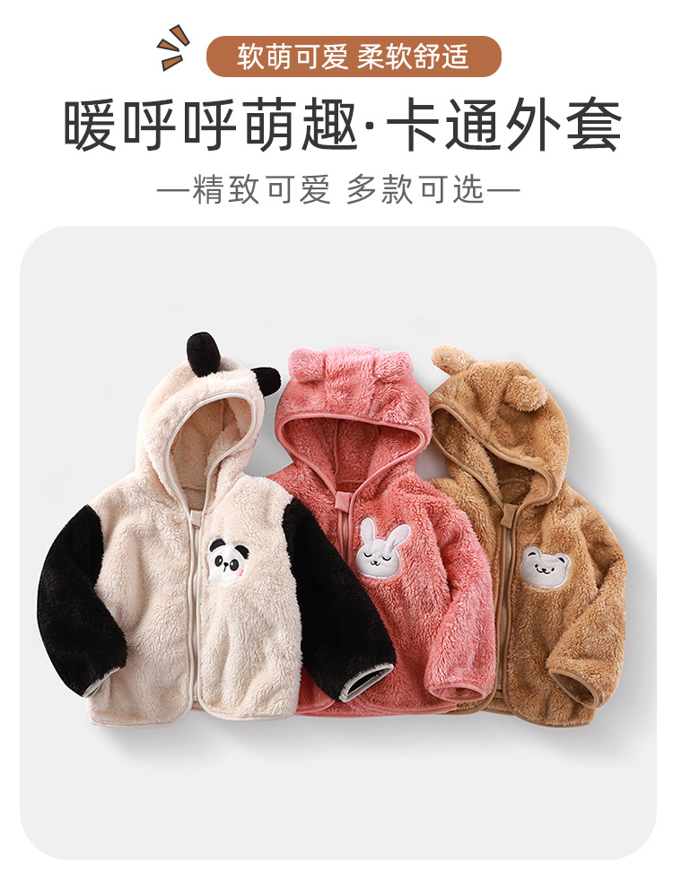 어린이 만화 봉제 최고 가을과 겨울 새로운 아기 귀여운 기모 후드 지퍼 쇼핑백 홈 의류 자켓