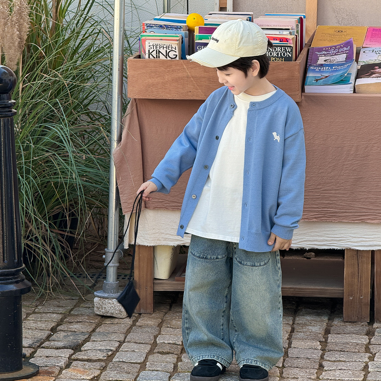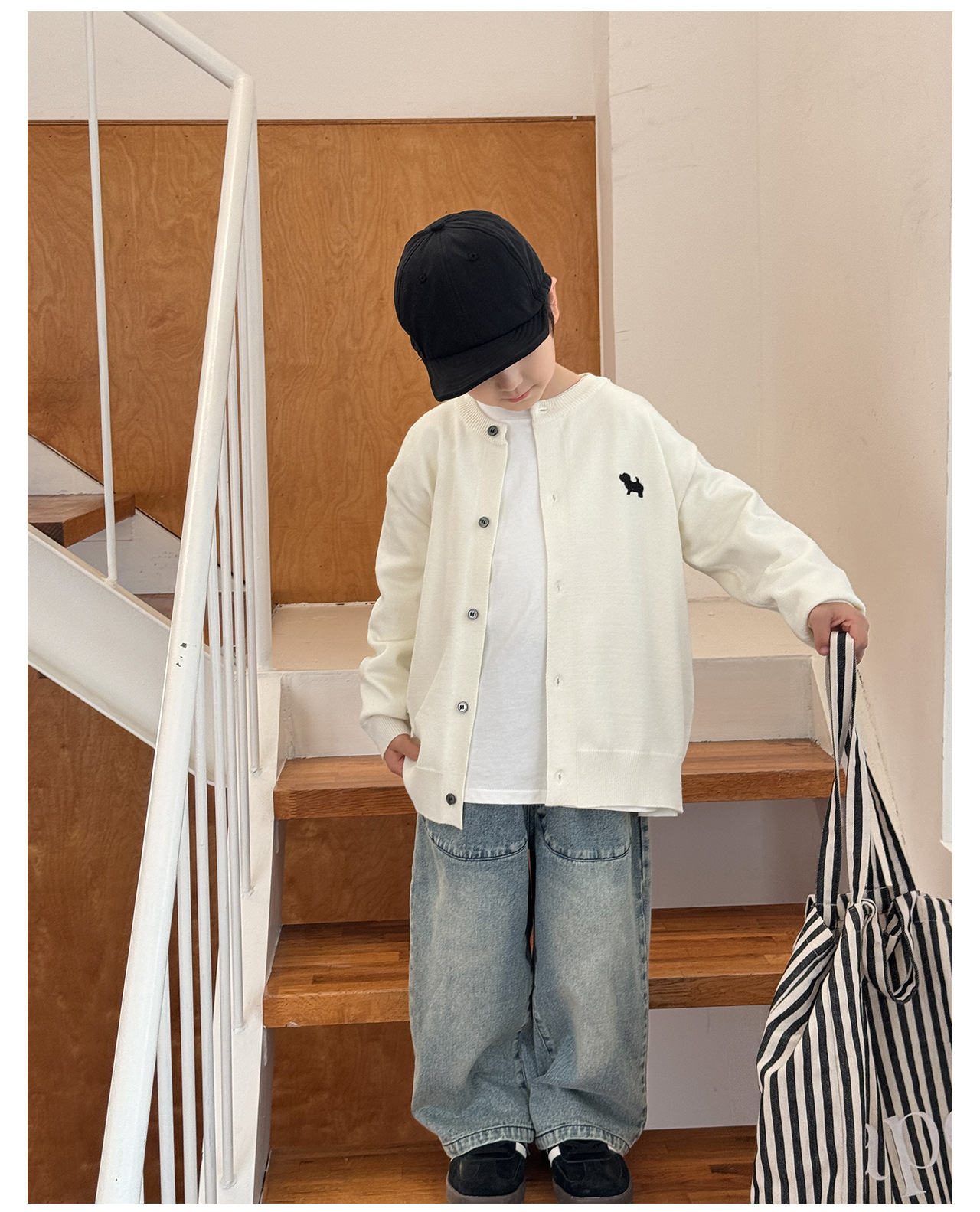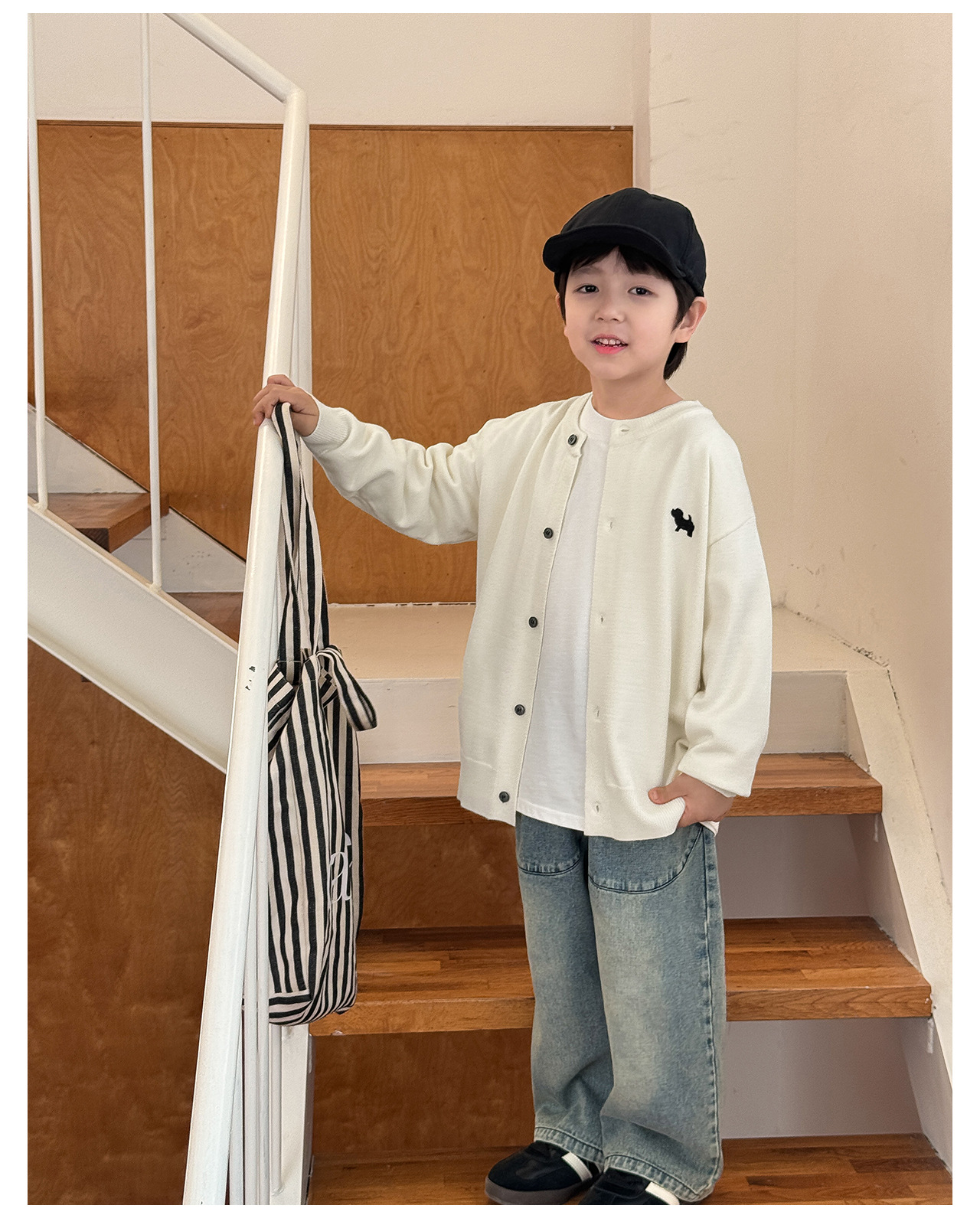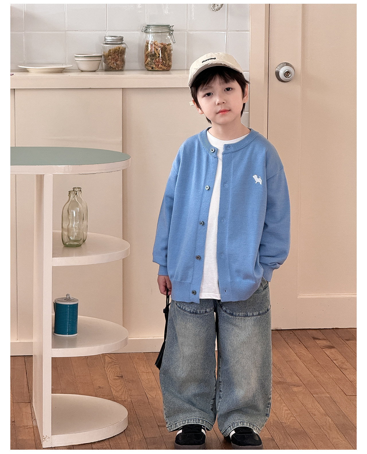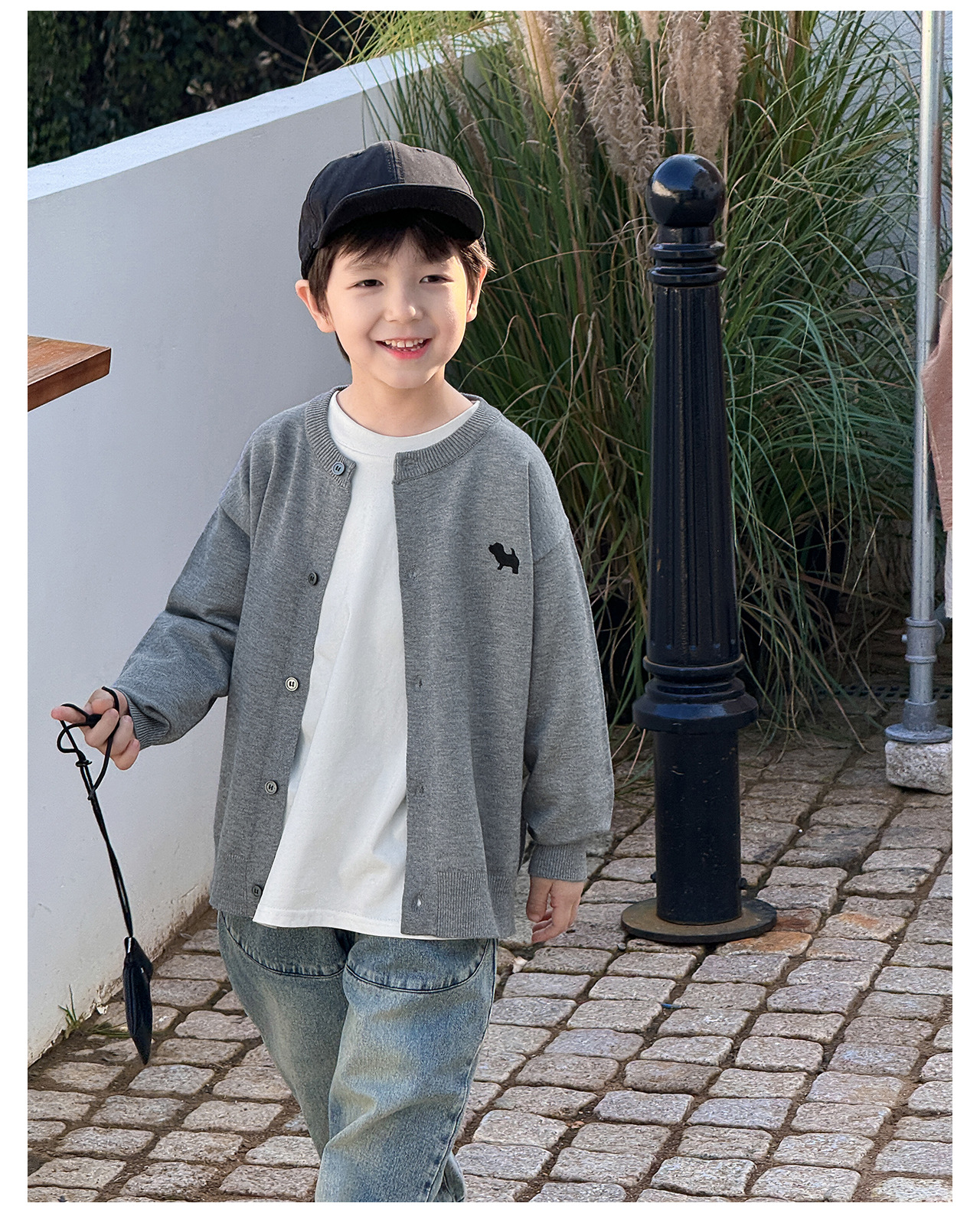 통쿠 2025 봄 신상품 호주직물 아동복 한국 스타일 남아 니트 가디건 만화 강아지 자수 아동 스웨터스토어 가기