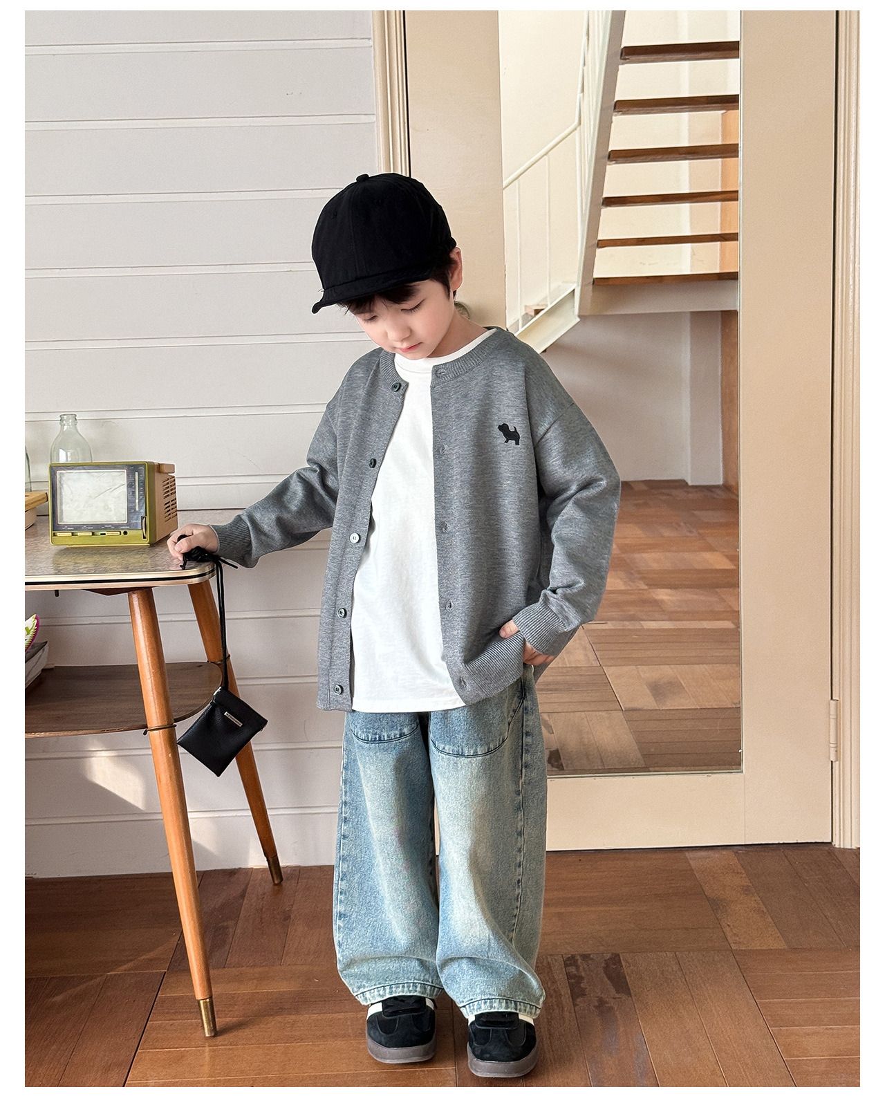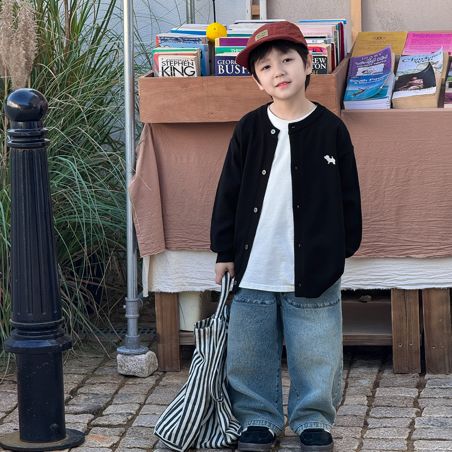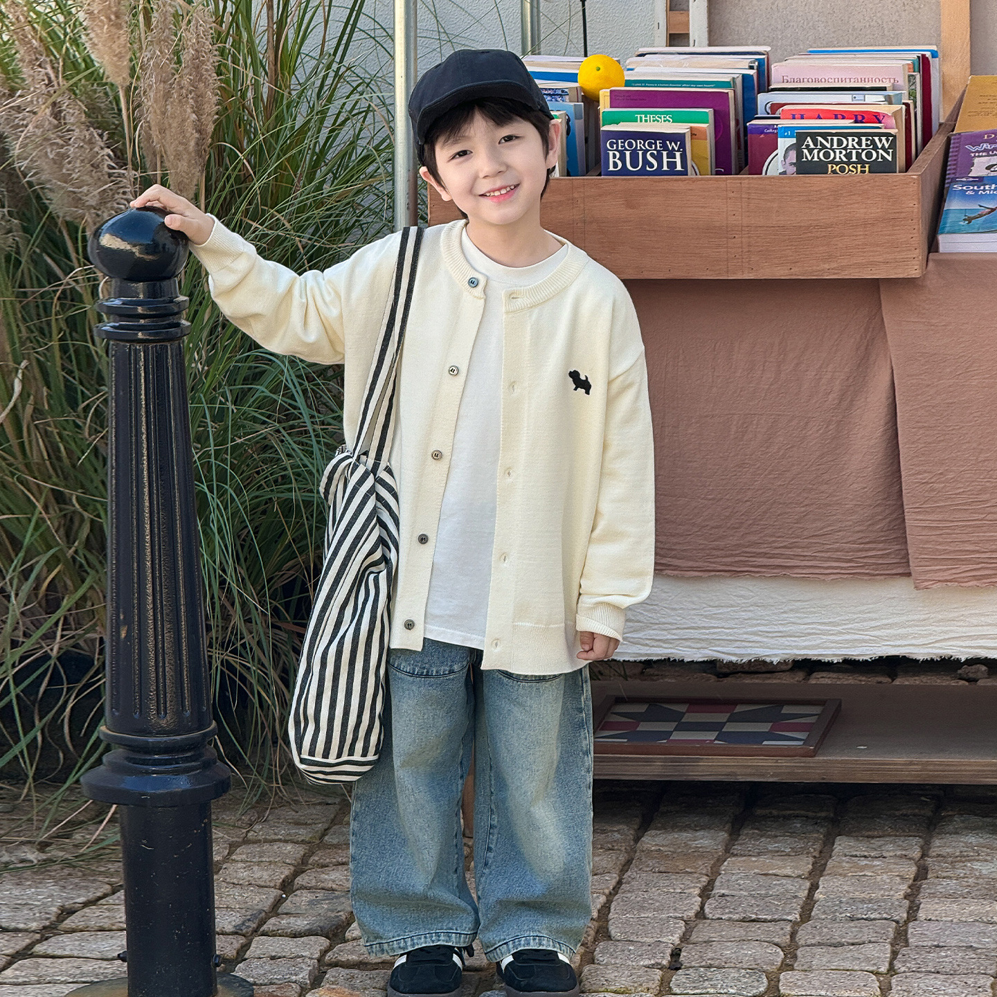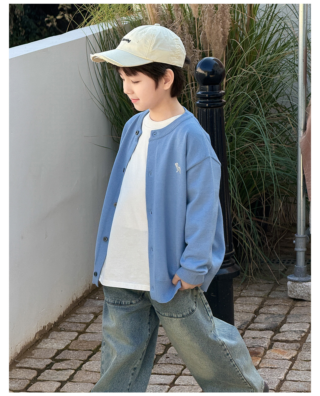 통쿠 2025 봄 신상품 호주직물 아동복 한국 스타일 남아 니트 가디건 만화 강아지 자수 아동 스웨터스토어 가기