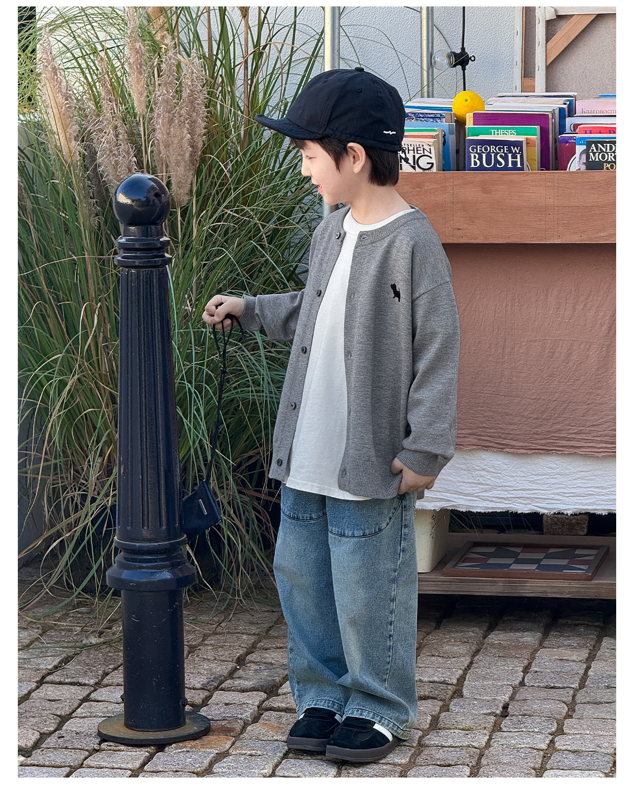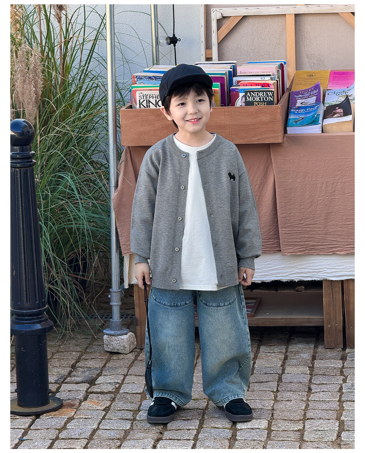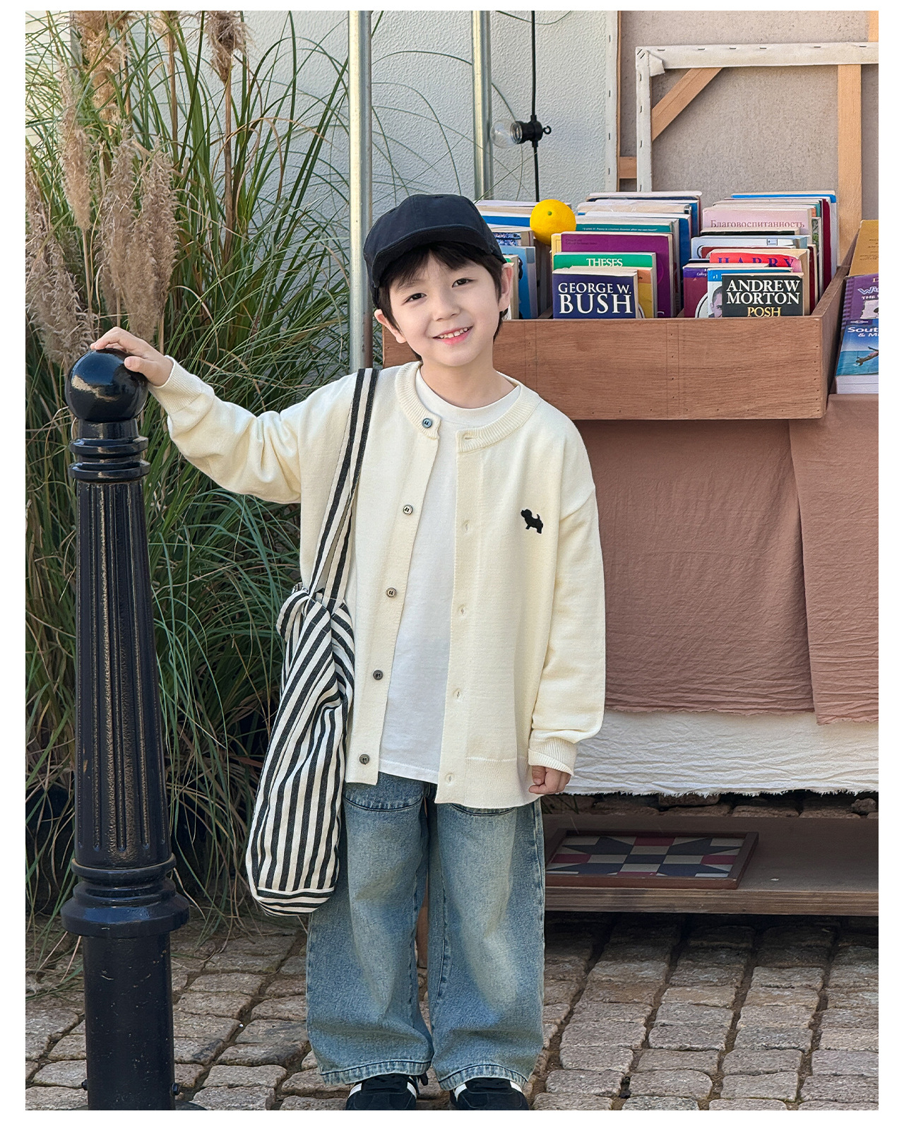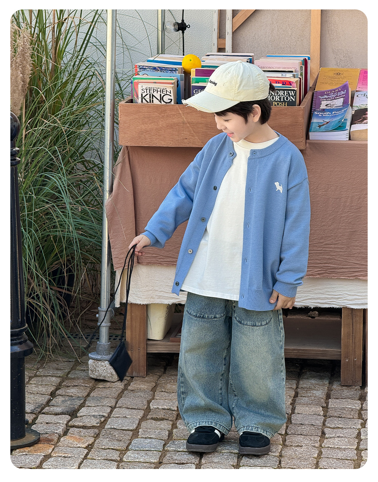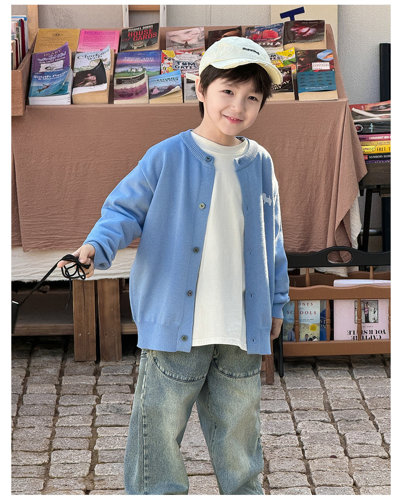 통쿠 2025 봄 신상품 호주직물 아동복 한국 스타일 남아 니트 가디건 만화 강아지 자수 아동 스웨터스토어 가기