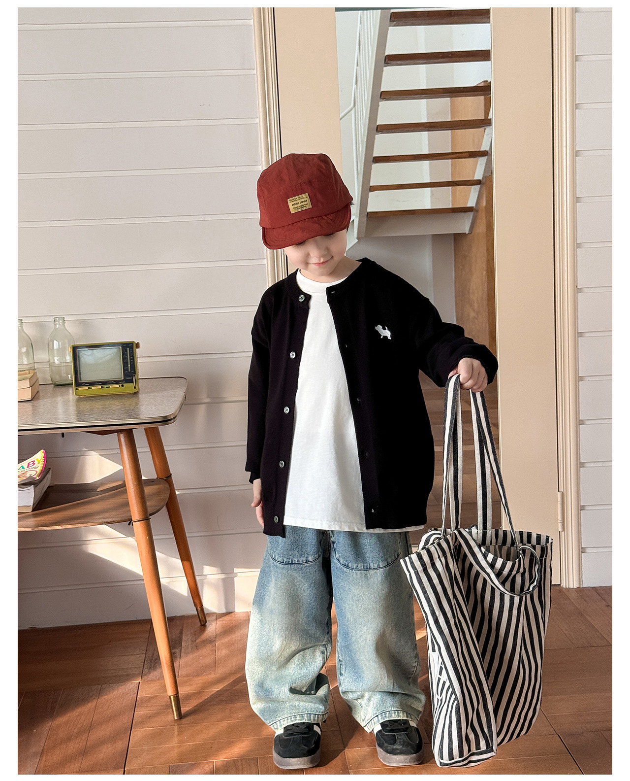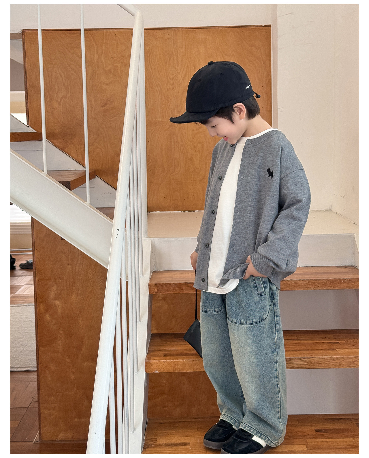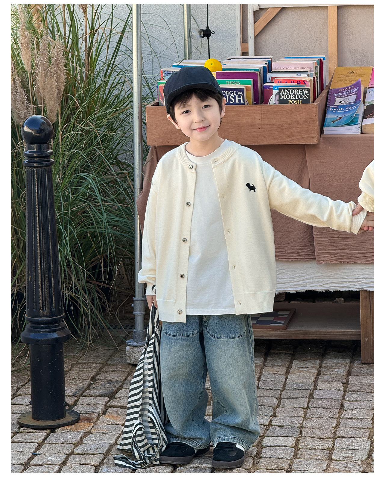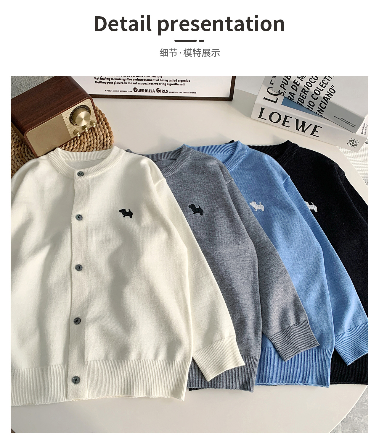 통쿠 2025 봄 신상품 호주직물 아동복 한국 스타일 남아 니트 가디건 만화 강아지 자수 아동 스웨터스토어 가기