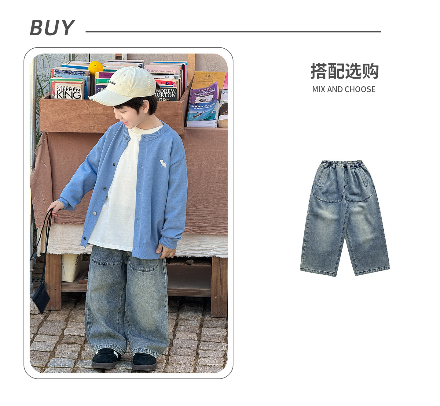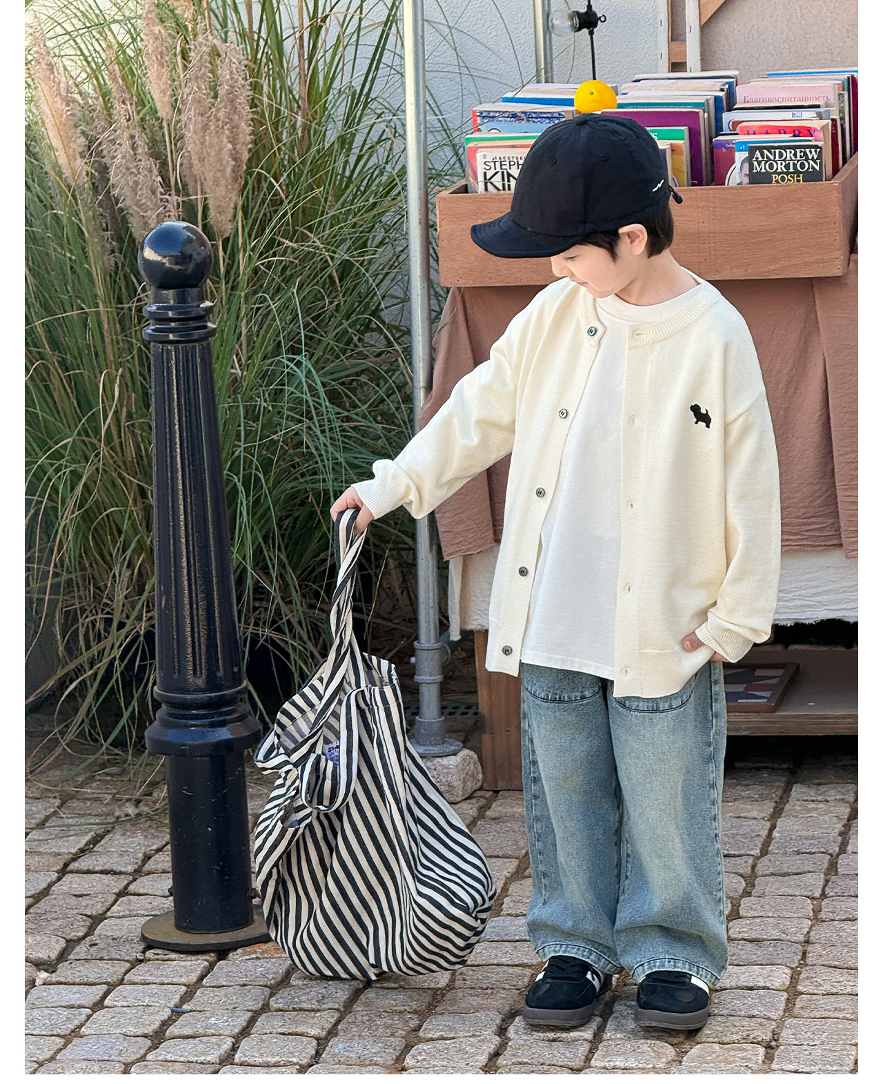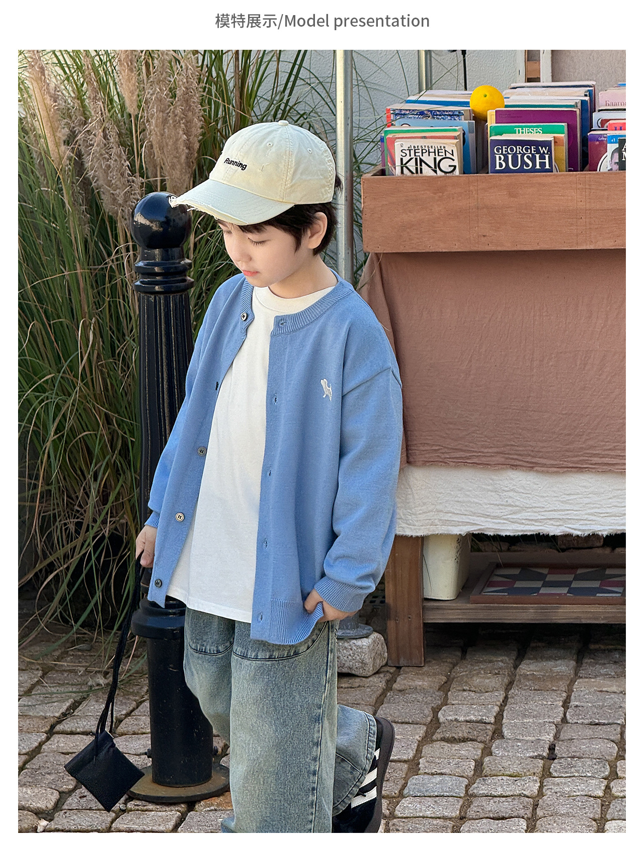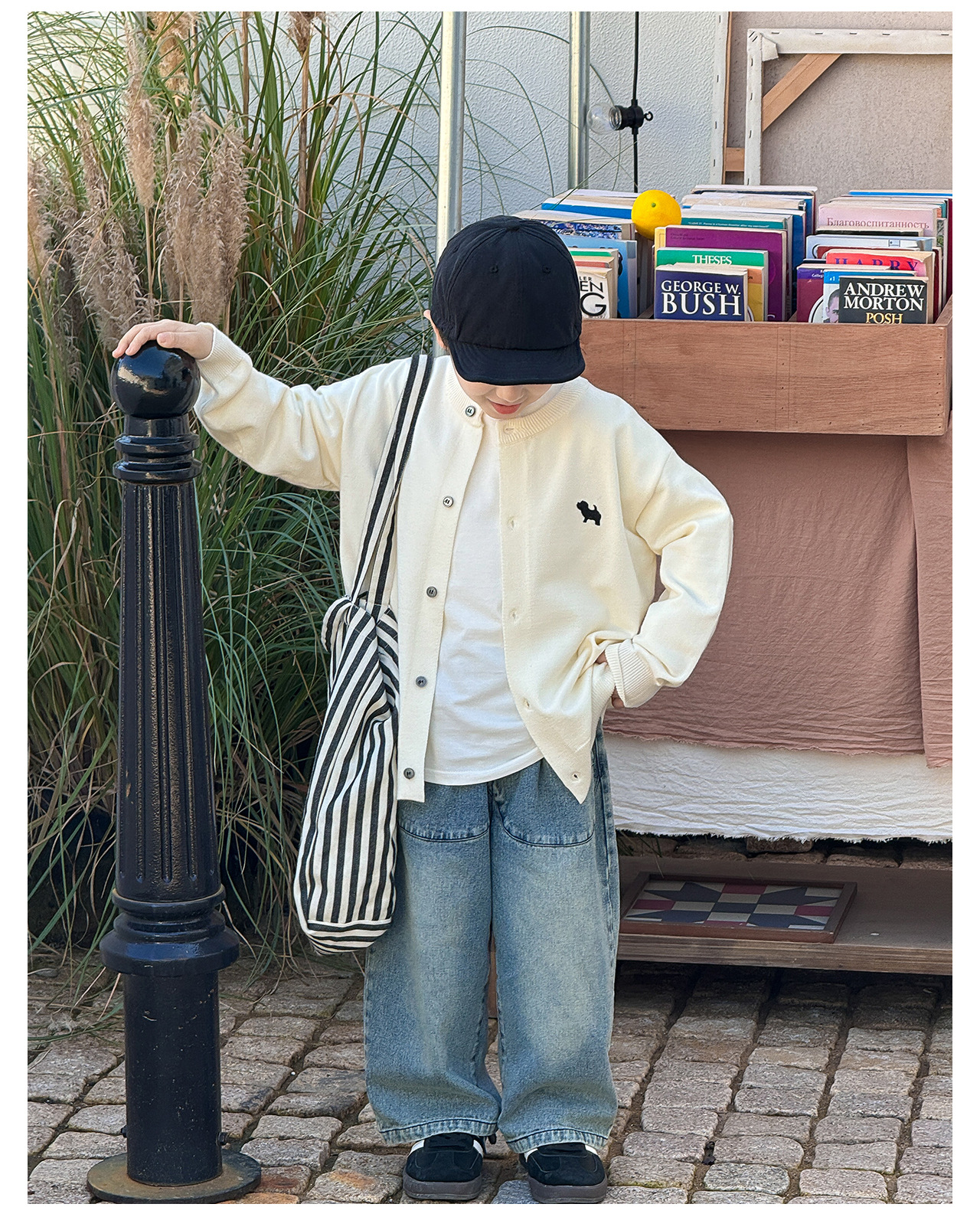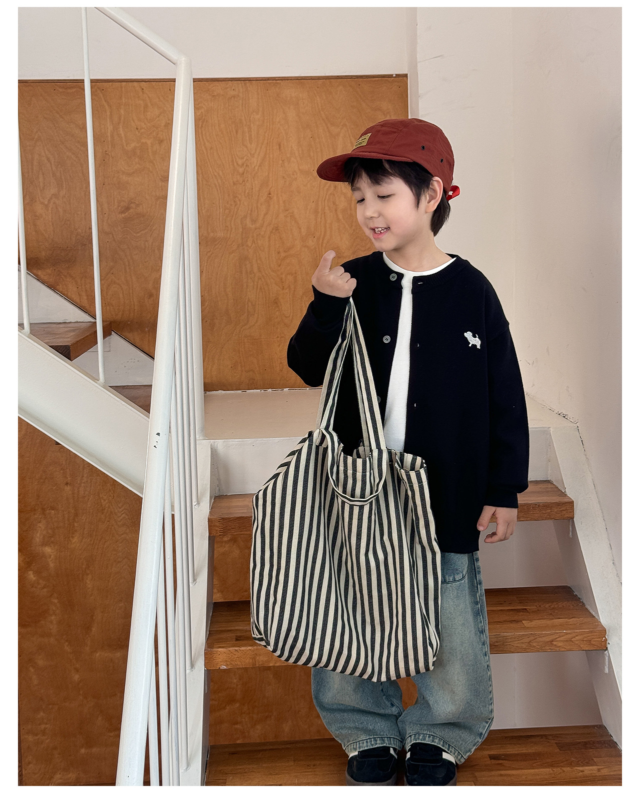 통쿠 2025 봄 신상품 호주직물 아동복 한국 스타일 남아 니트 가디건 만화 강아지 자수 아동 스웨터스토어 가기