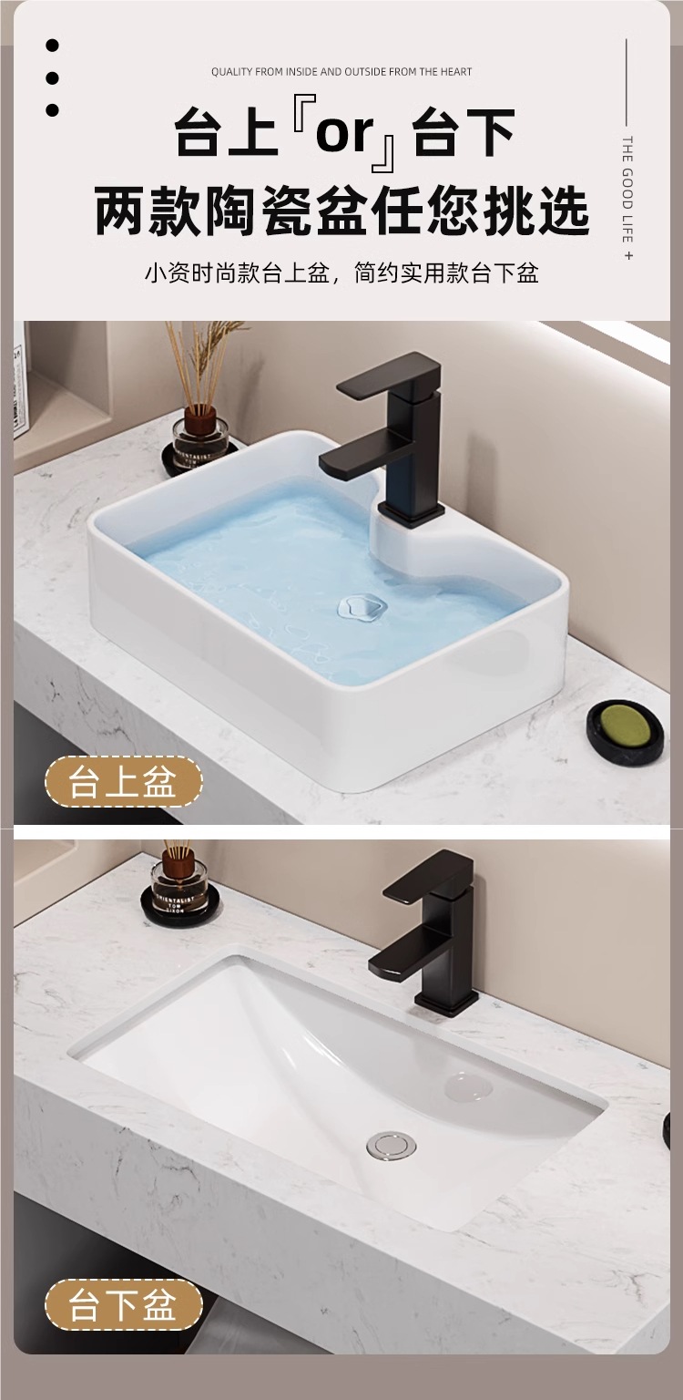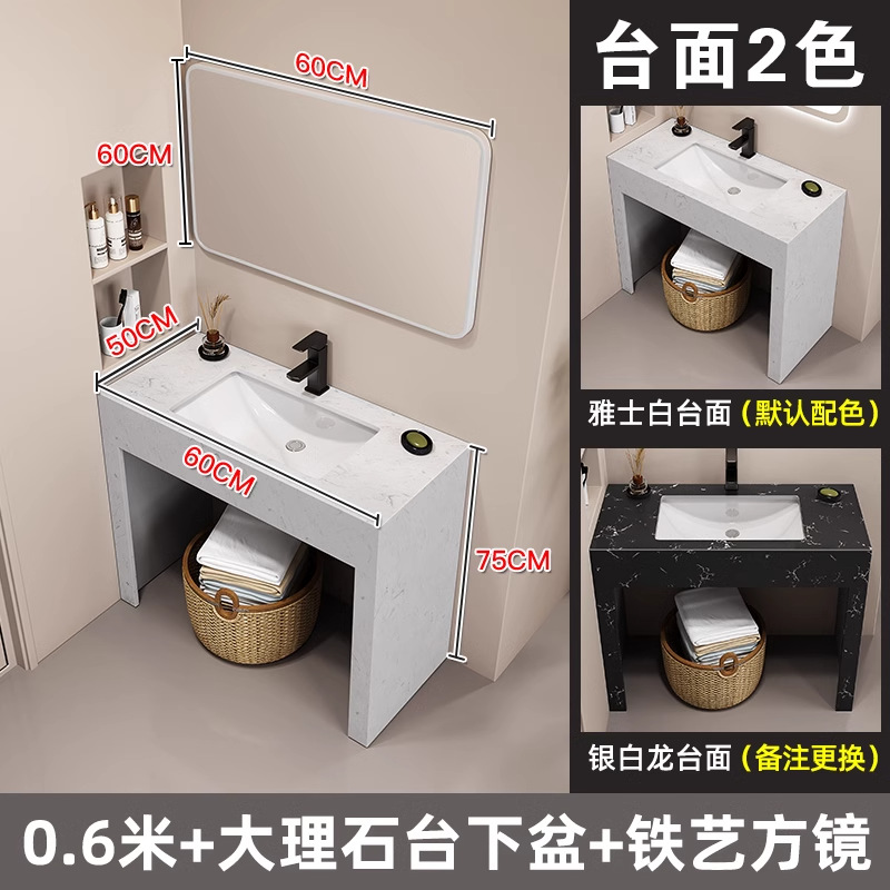 • 0.6m 언더카운터 세면기 일반 사각형 거울 + 수도꼭지 하드웨어 액세서리