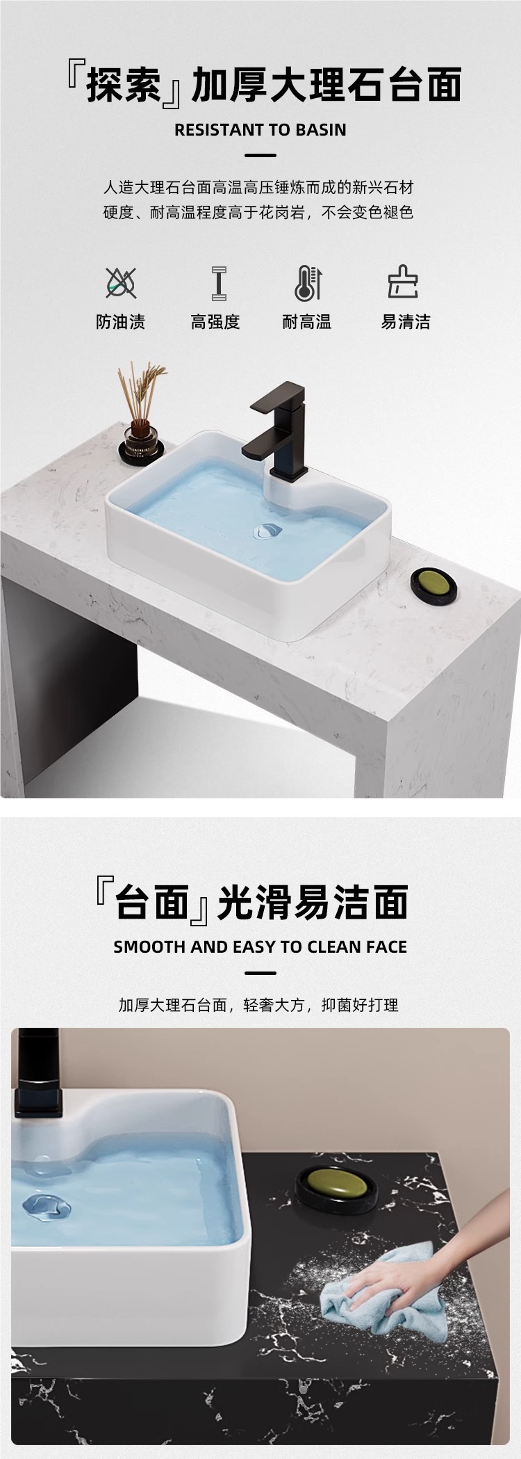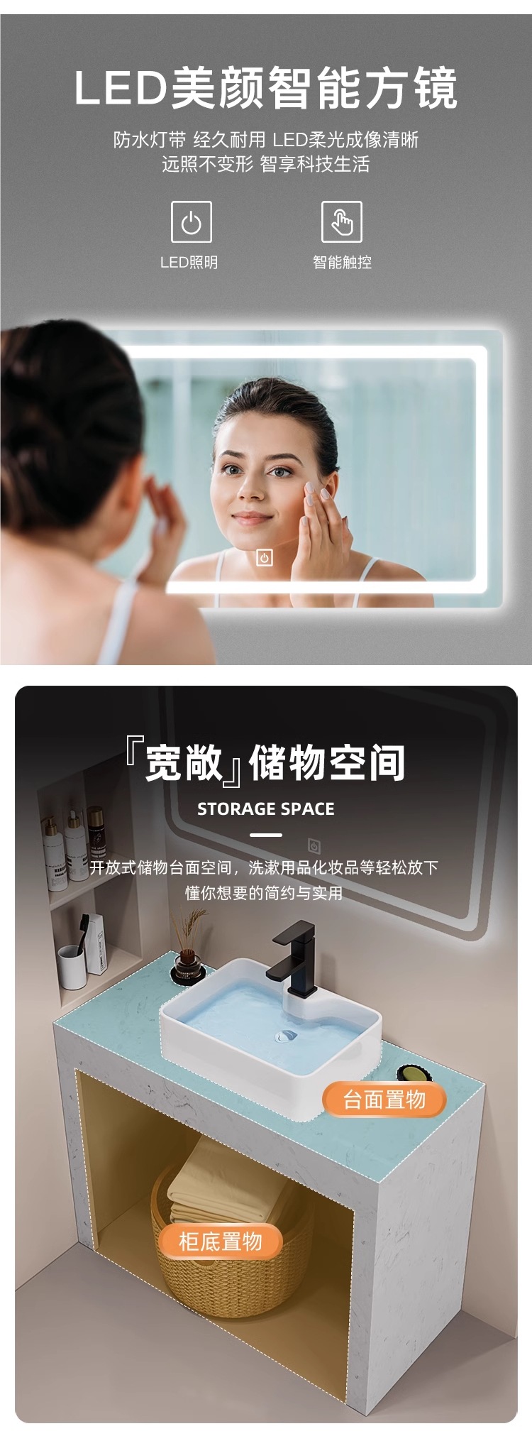 • 0.8 언더카운터 세면대 스마트 사각 거울 + 수도꼭지 하드웨어 액세서리