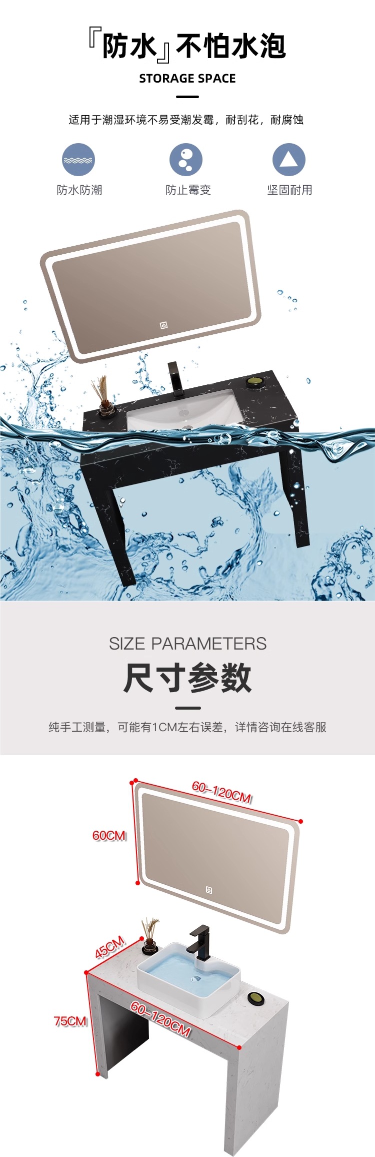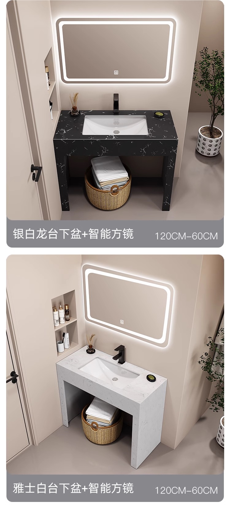 • 1.2m 언더카운터 세면기 스마트 사각 거울 + 수도꼭지 하드웨어 액세서리
