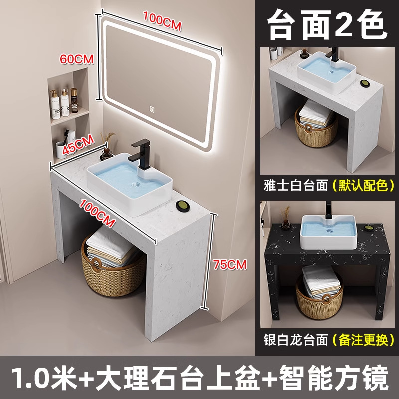 • 1.0m 언더카운터 세면기 스마트 사각 거울 + 수도꼭지 하드웨어 액세서리