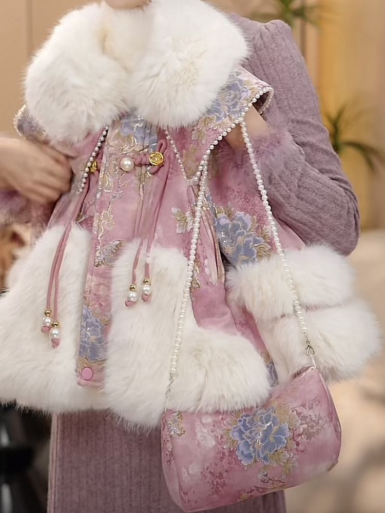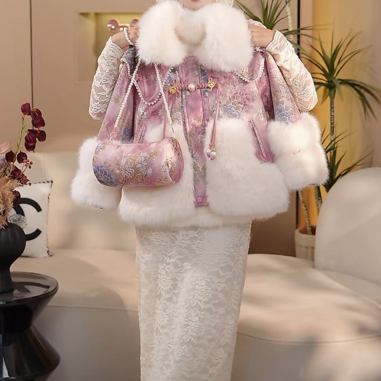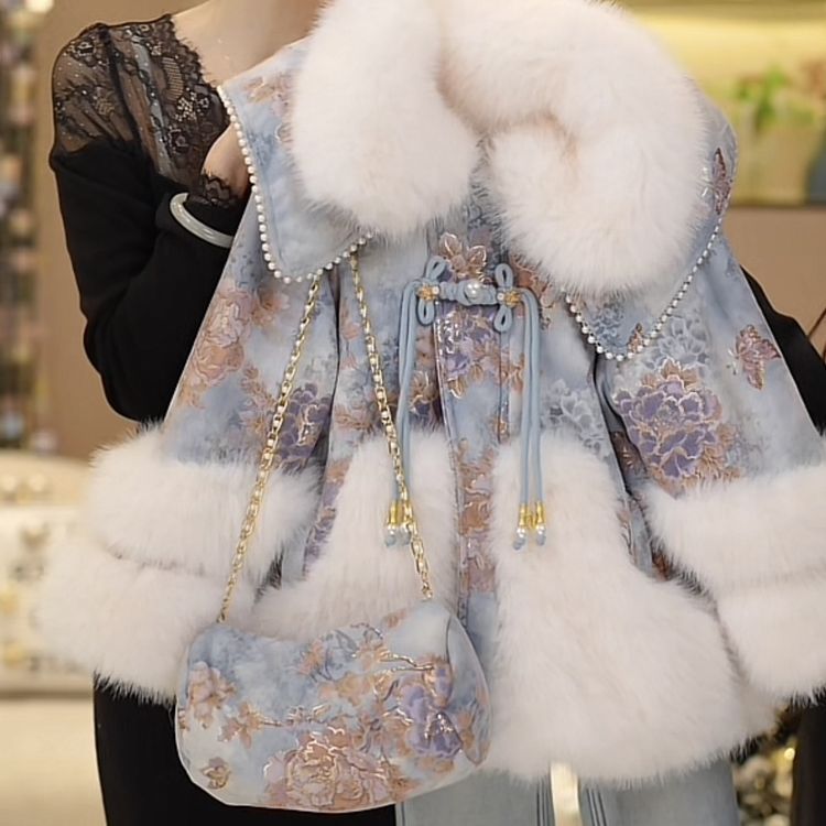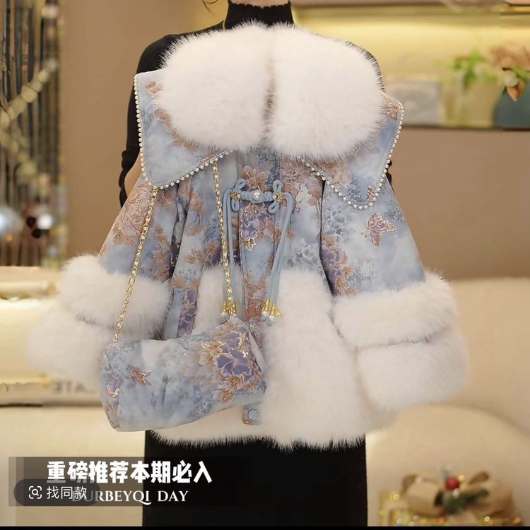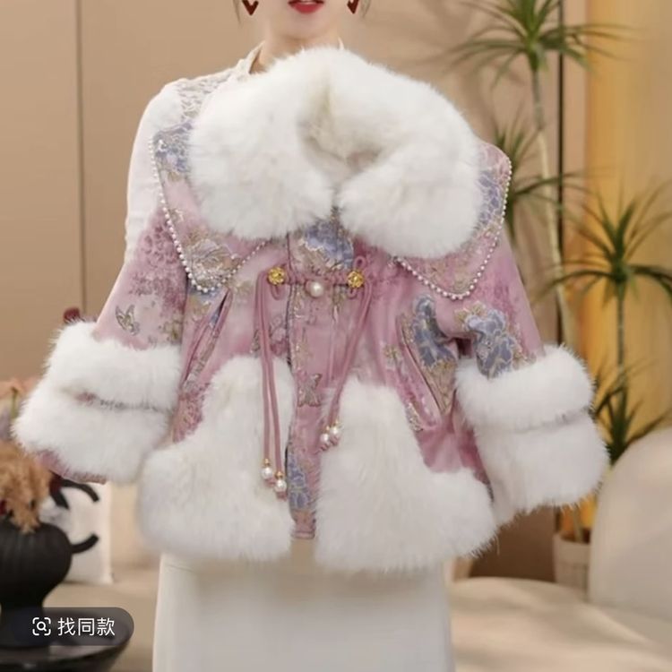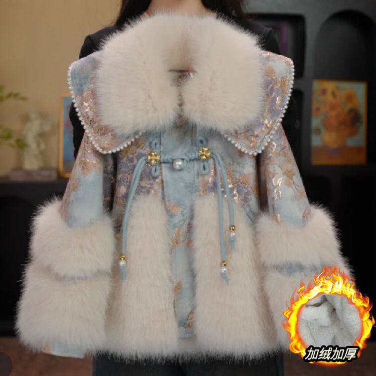 여자 Guofeng 기모 두꺼운 금박 나비 모피 코트 2025 중국 딸 미스 울 스웨터스토어 가기