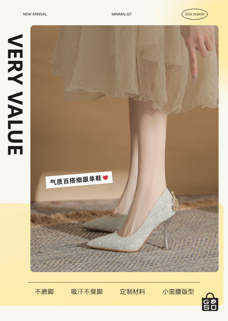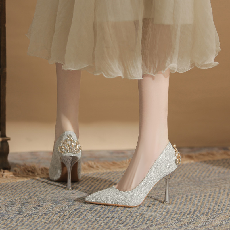 316-A189 프랑스 스타일 아름다운 웨딩 신발 높은 감각 새로운 신부 들러리 신발 플러스 사이즈 뚱뚱한 하이힐스토어 가기