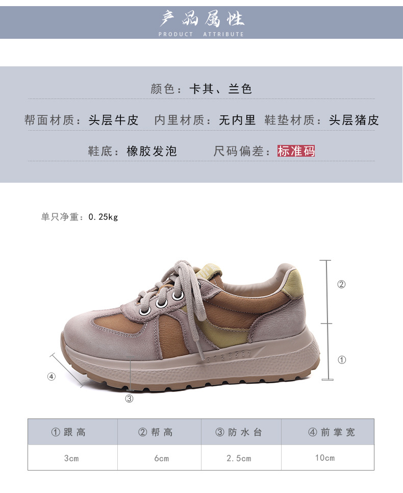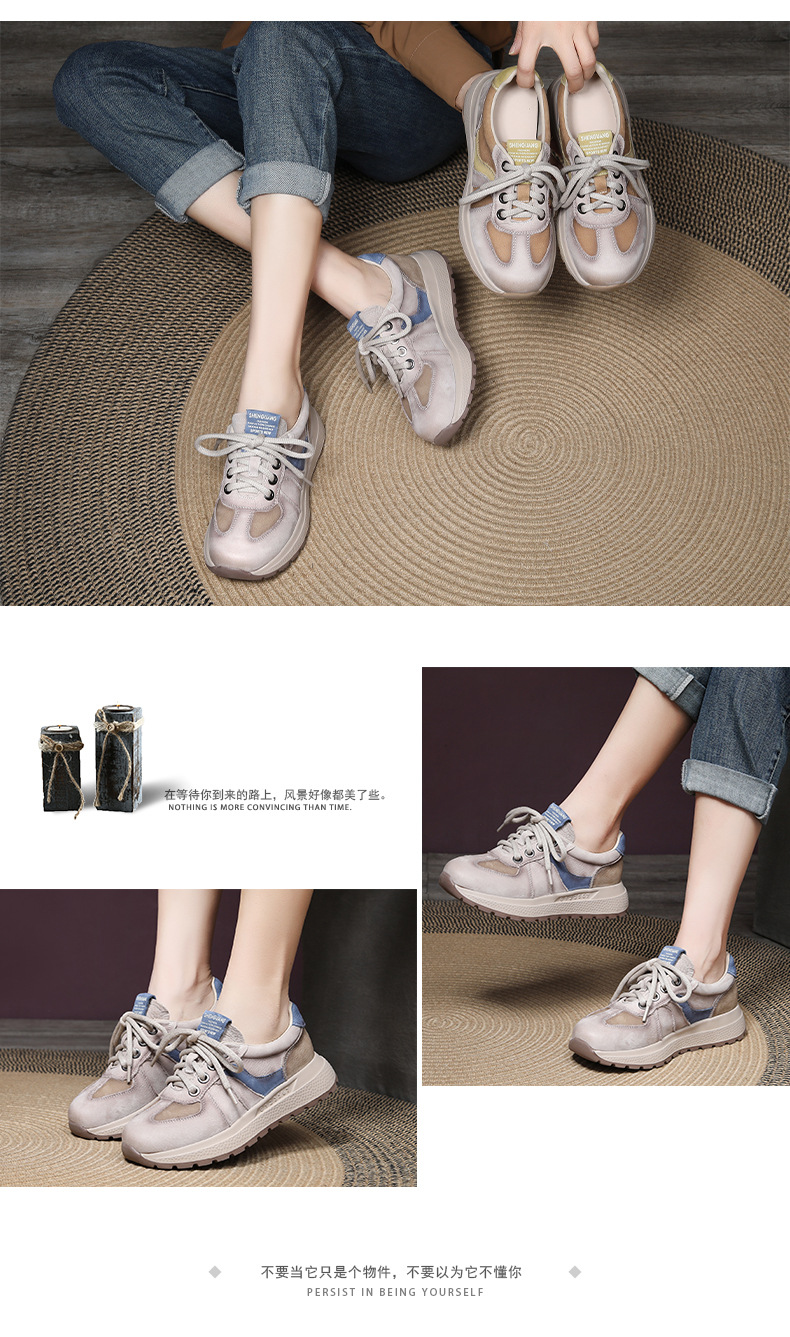 캐주얼 포레스트 검프 신발 2025 새로운 봄과 여름 두꺼운 쐐기 스포츠 탑 레이어 Cowhide 컬러 블록 레이스 업 여성용 싱글 레이어 신발스토어 가기