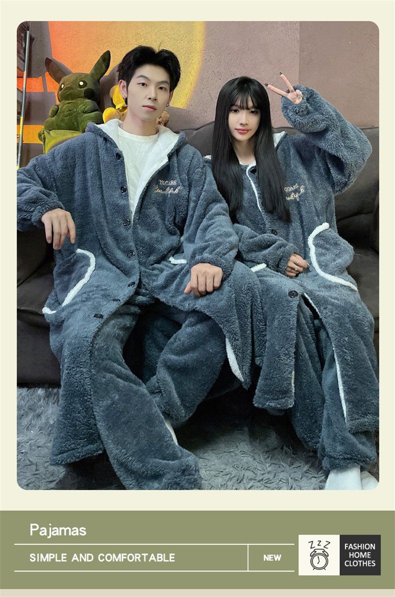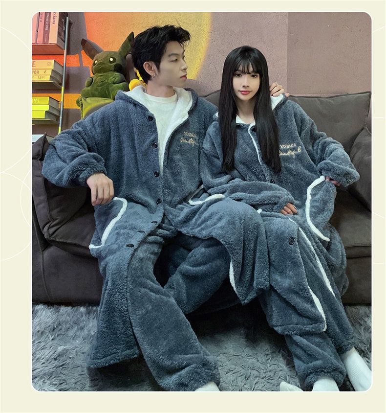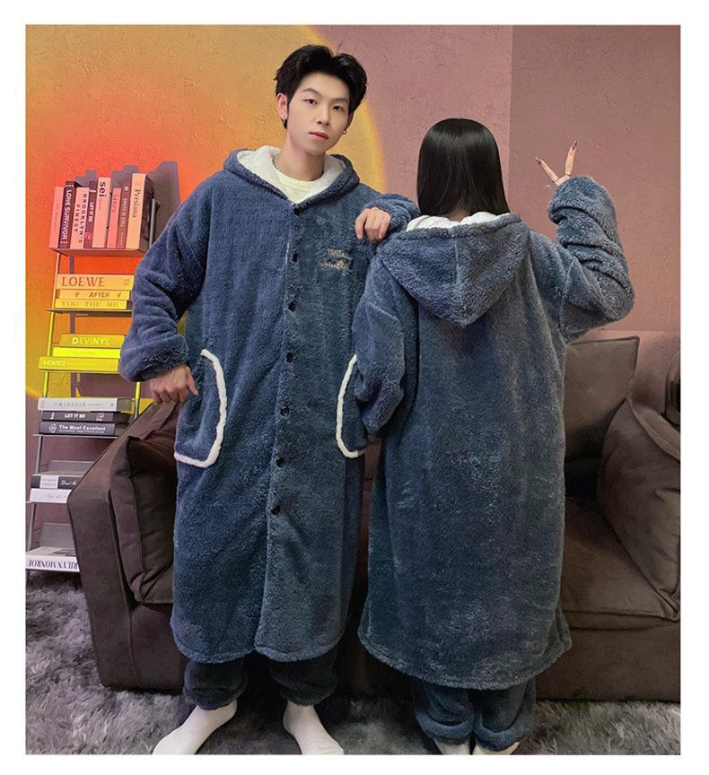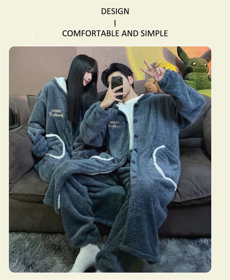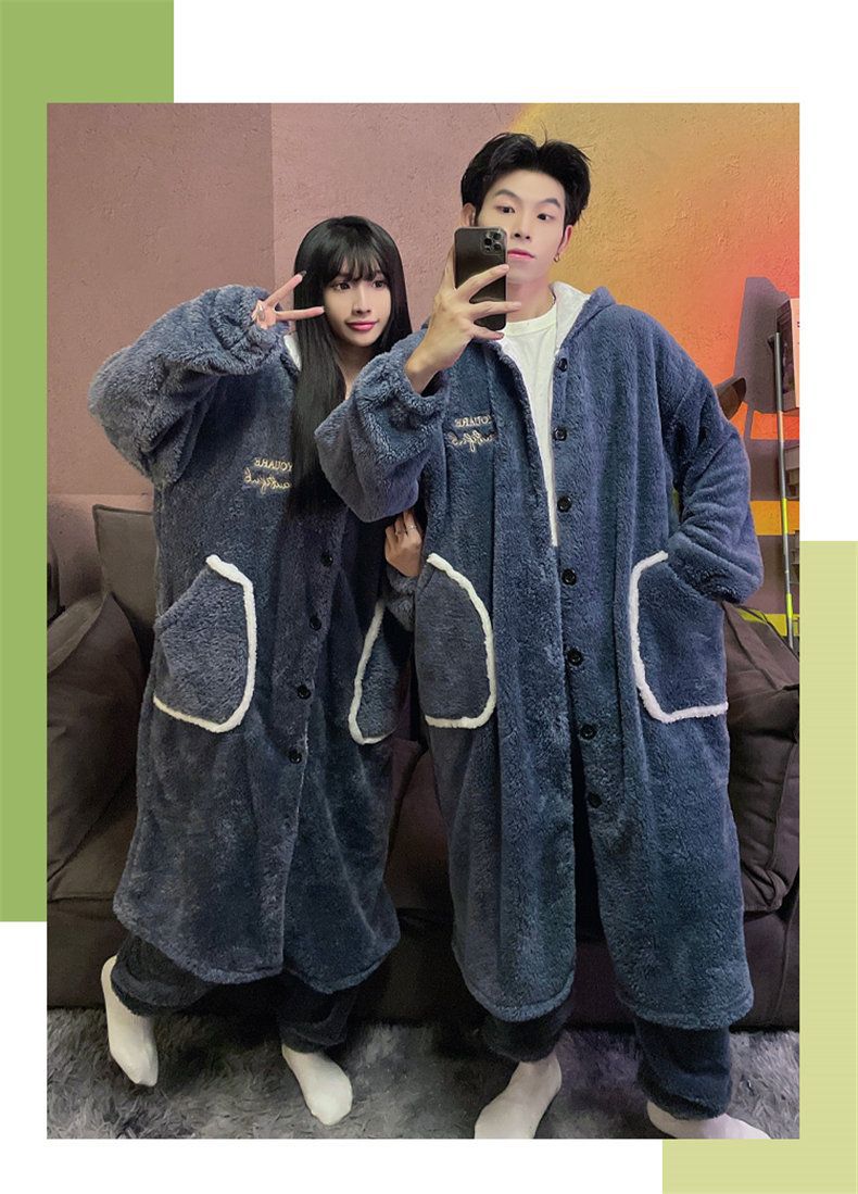 커플 잠옷 여성의 가을과 겨울 플란넬 두꺼운 기모 새로운 느슨한 플러스 사이즈 남성 잠옷 따뜻한 집 옷