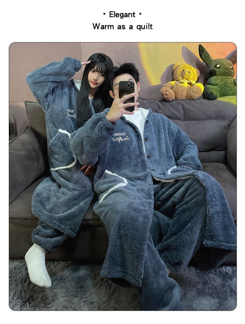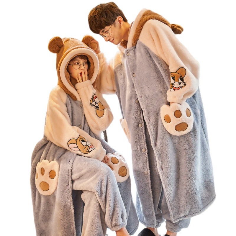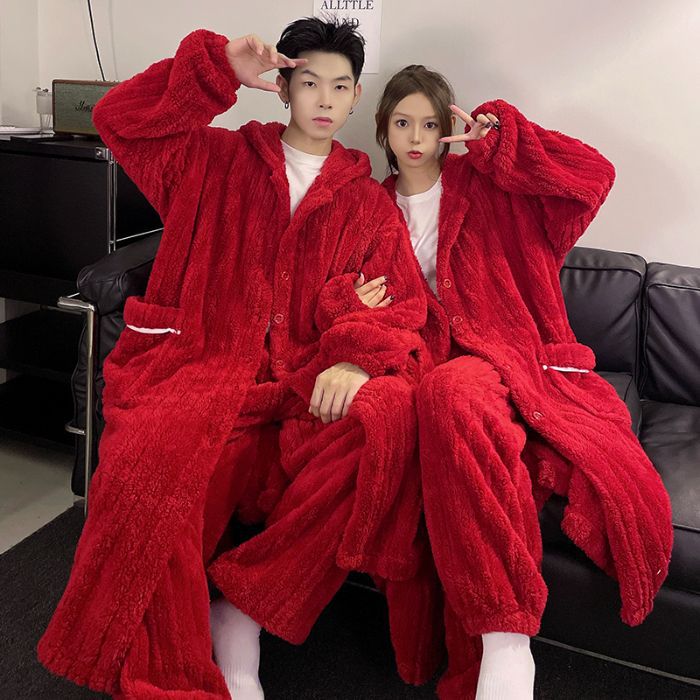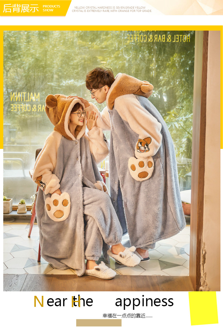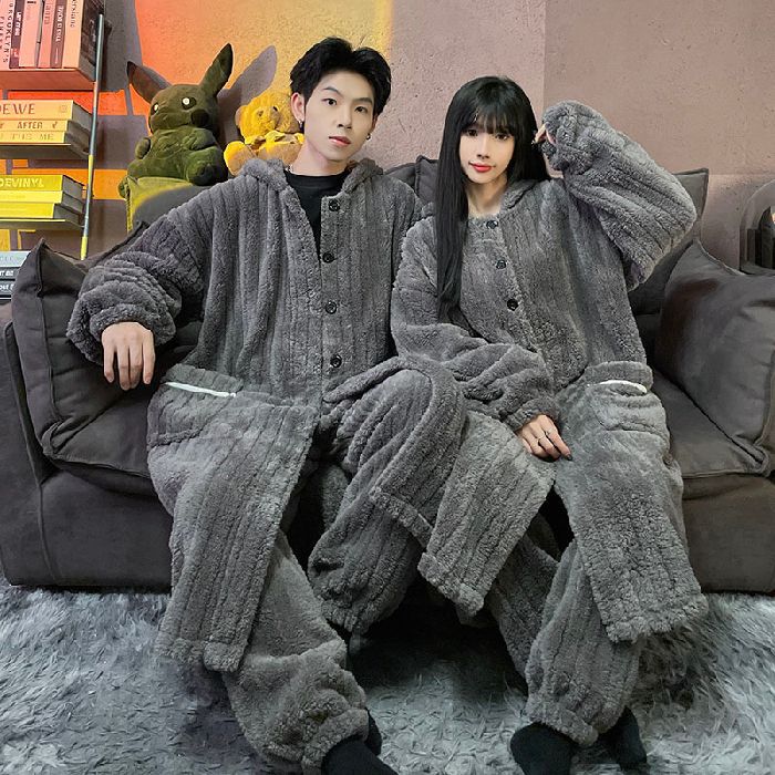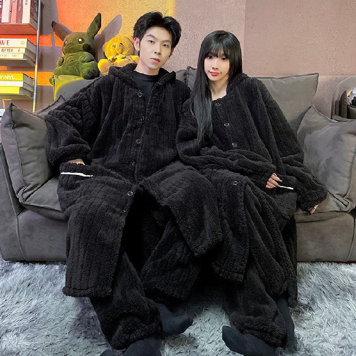커플 잠옷 여성의 가을과 겨울 플란넬 두꺼운 기모 새로운 느슨한 플러스 사이즈 남성 잠옷 따뜻한 집 옷