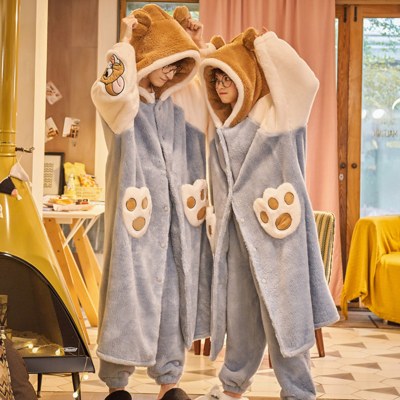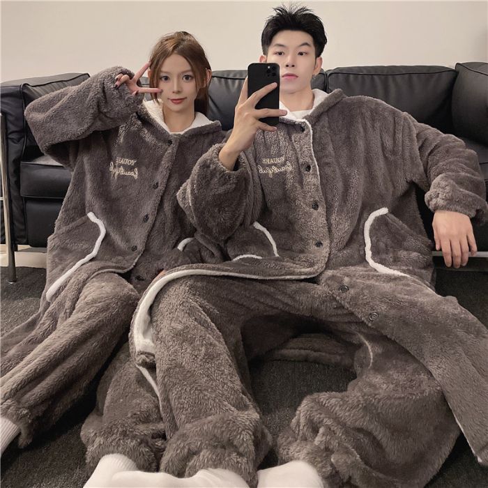 커플 잠옷 여성의 가을과 겨울 플란넬 두꺼운 기모 새로운 느슨한 플러스 사이즈 남성 잠옷 따뜻한 집 옷스토어 가기