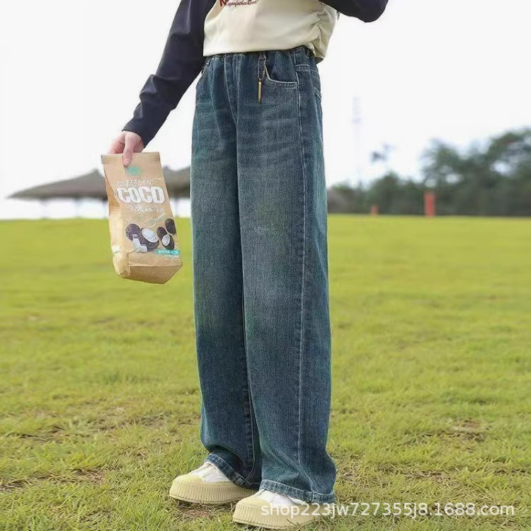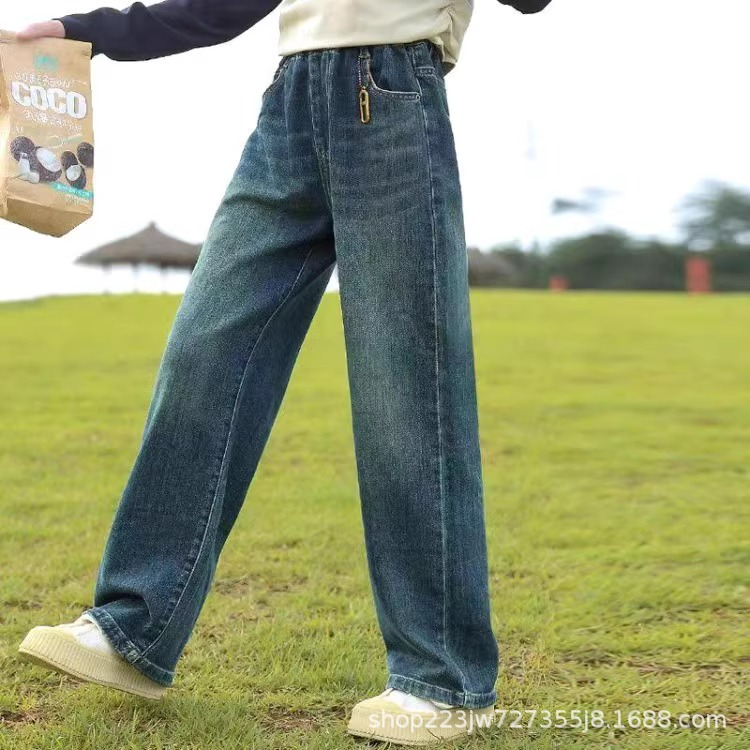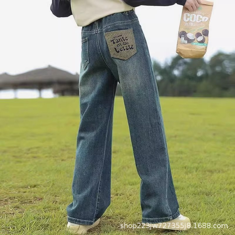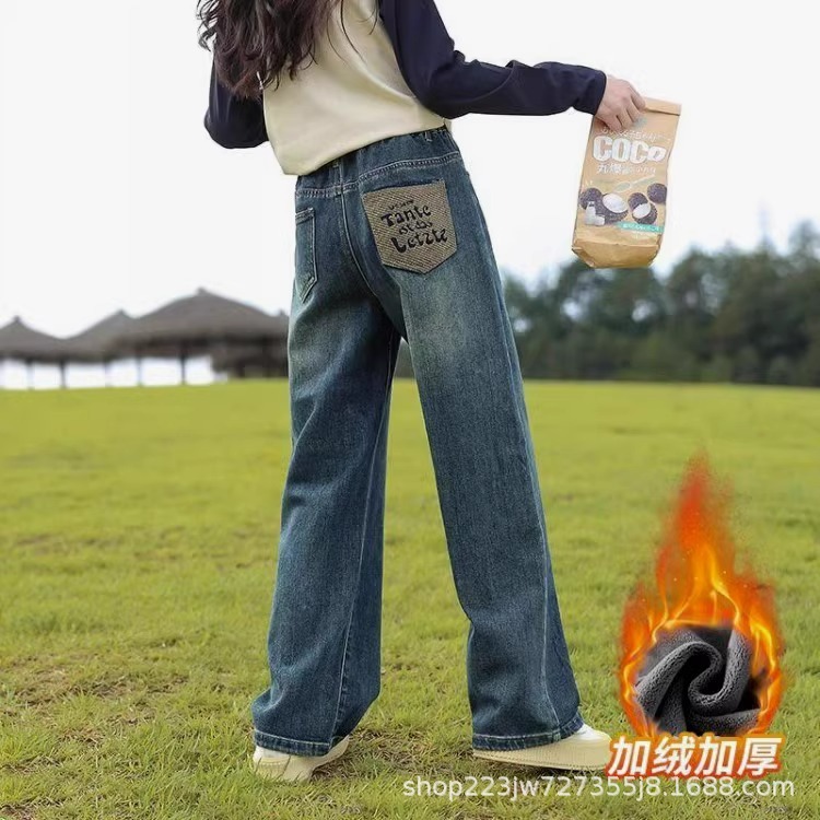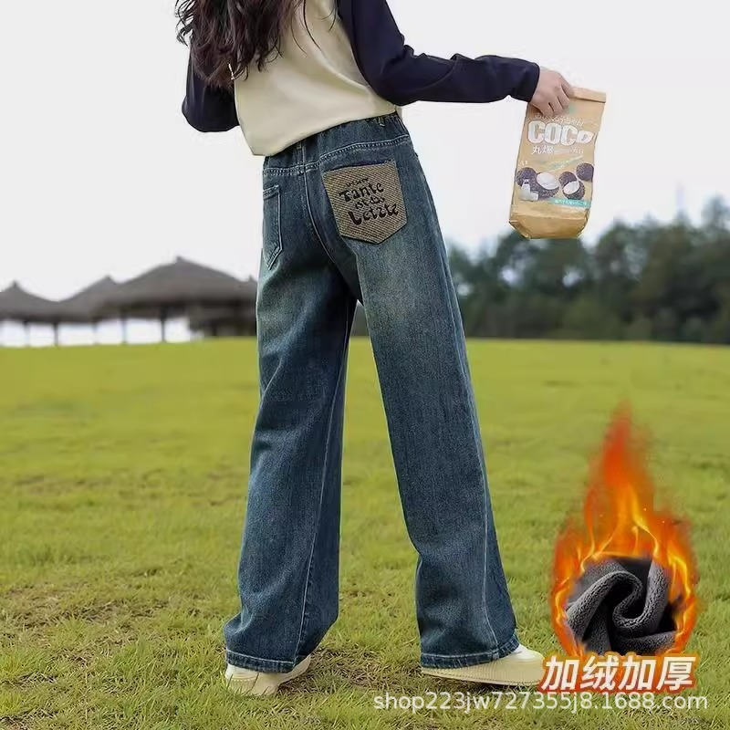 아동복 봄과 가을 새로운 서양식 소녀 청바지 대형 어린이 느슨한 캐주얼 소녀 기모 겨울 넓은 다리 트렌디 바지스토어 가기