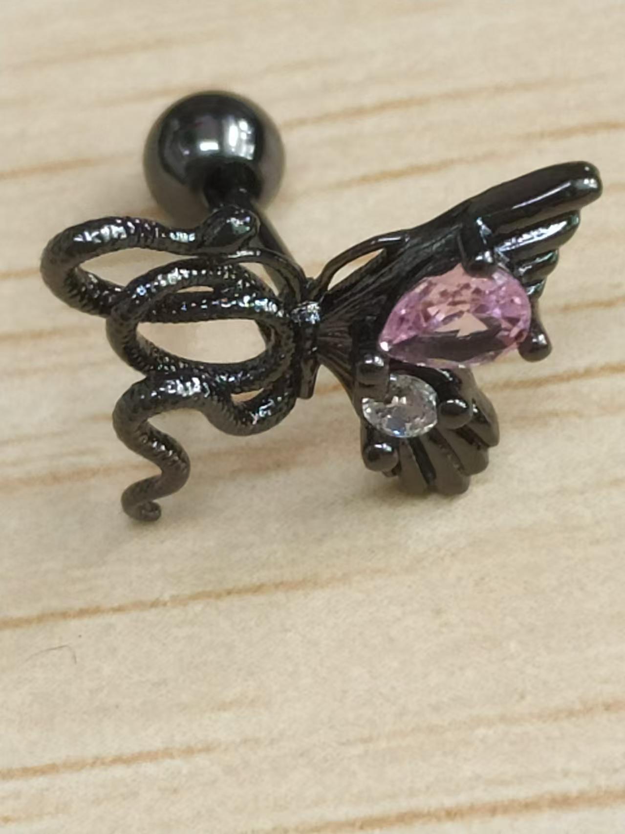 • 핑크 나비와 뱀 모양의 원피스 귀걸이 싱글