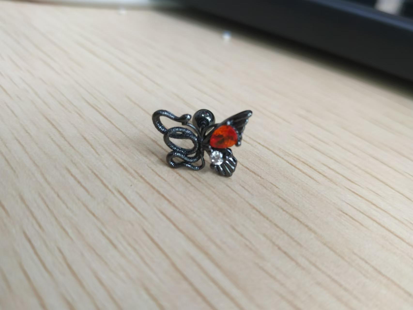• 밝은 붉은 나비와 뱀 모양의 원피스 귀걸이 싱글