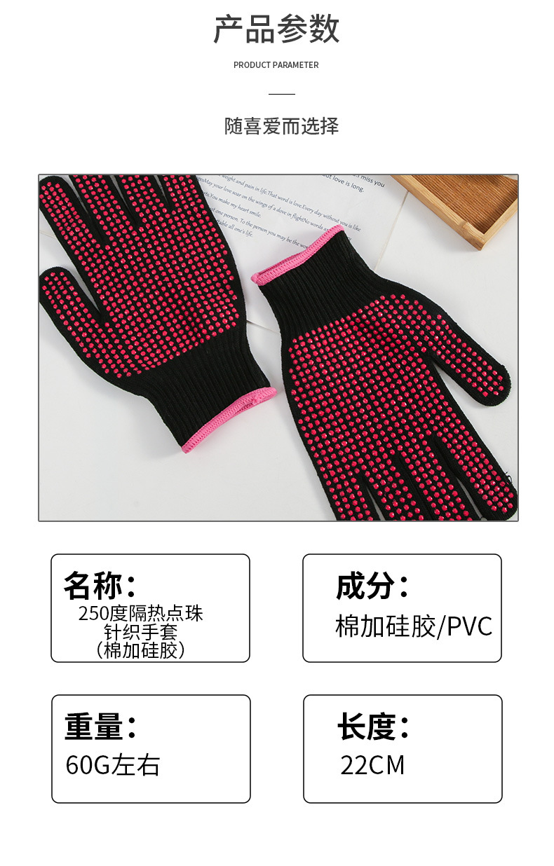 헤어 도구 장갑 컬링로드 스플린트 특수 안티 스케일 장갑 단열 방지 비드 고온 저항 니트 장갑