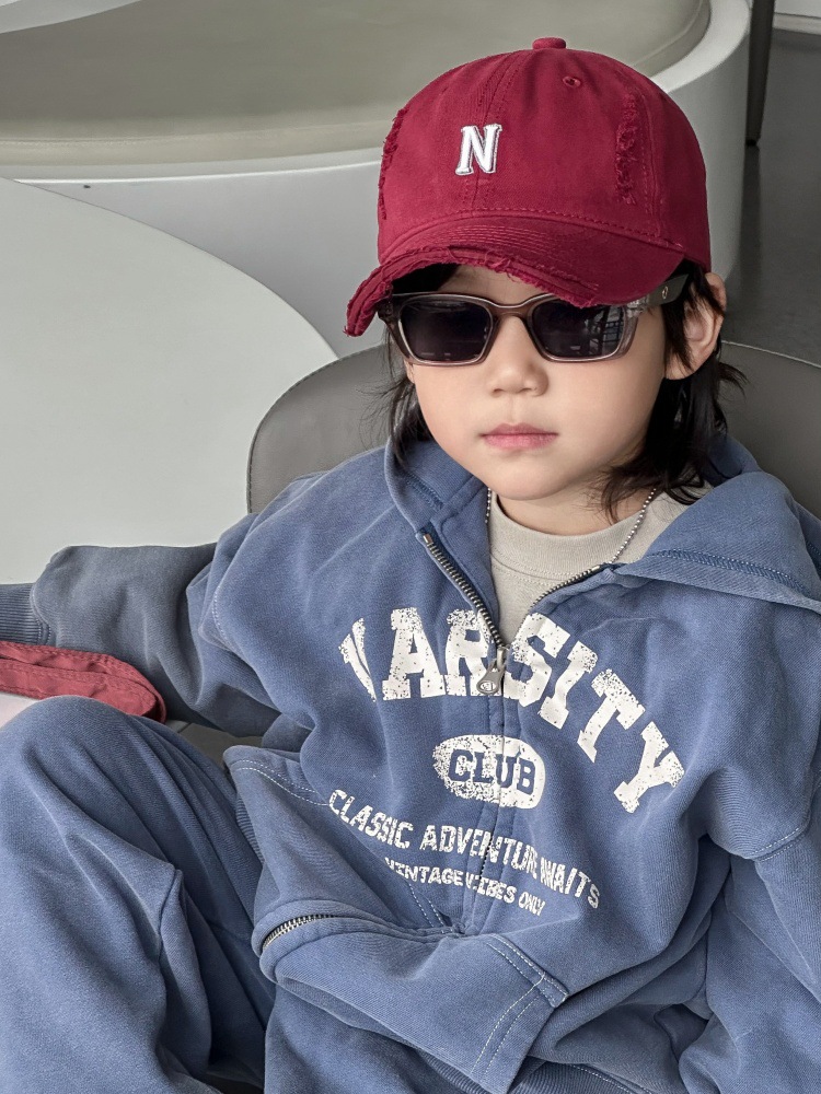 2025 아동 야구 모자 레트로 디자인 빈티지 자수 순면 멋스러운 다용도 트렌디한 아동용 테두리가 있는 모자스토어 가기