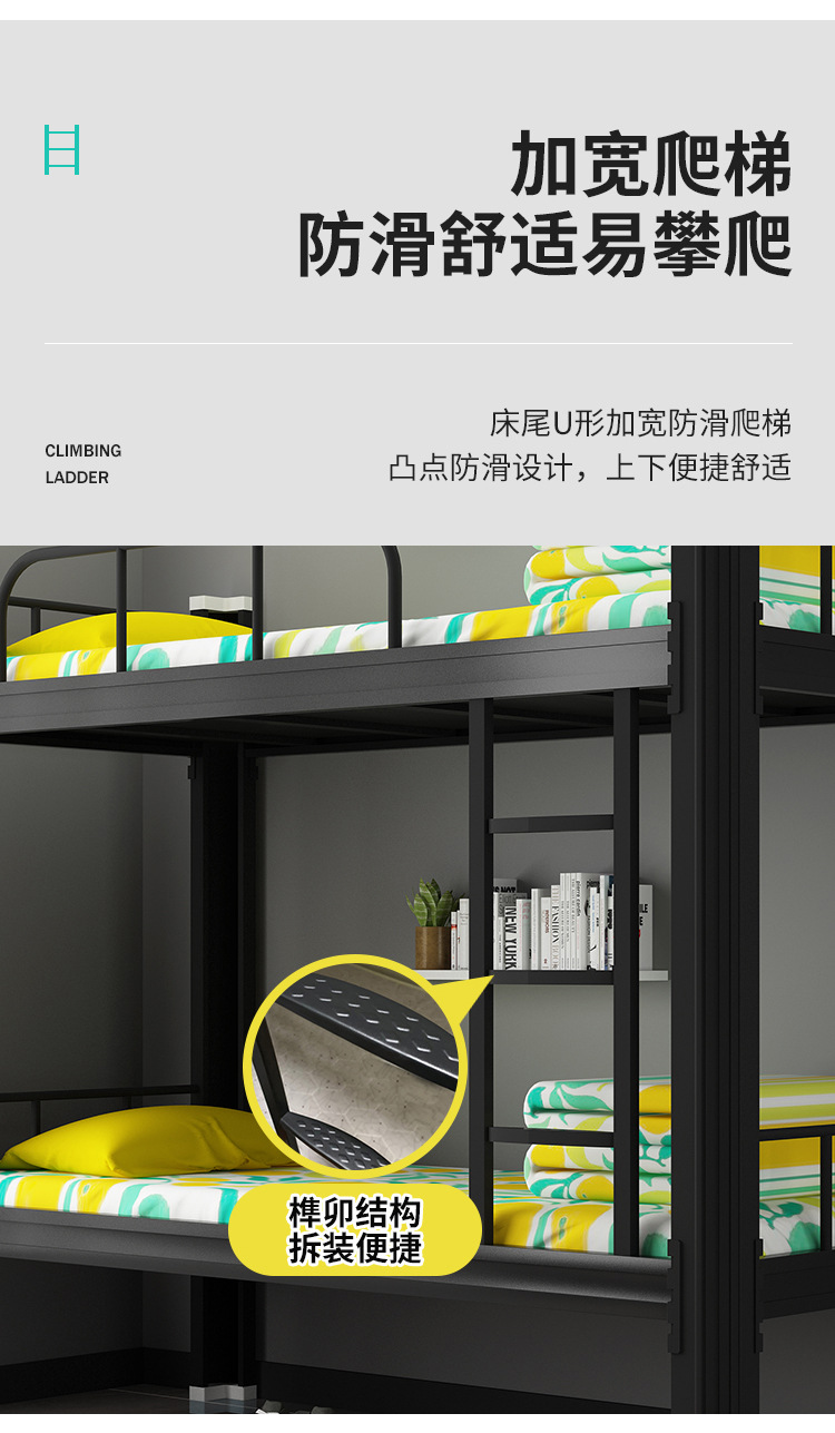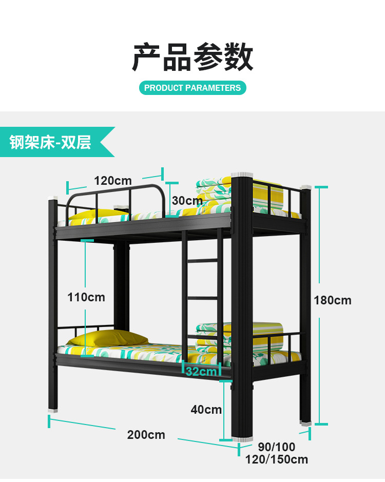 강철 학생 기숙사 이층 침대 더블 레이어 프로파일 침대 아파트 침대 건설 현장 높고 낮은 침대 직원 철제 프레임 침대