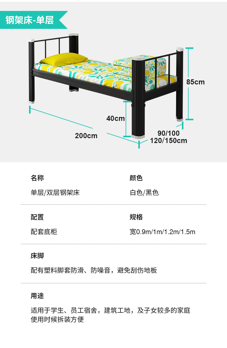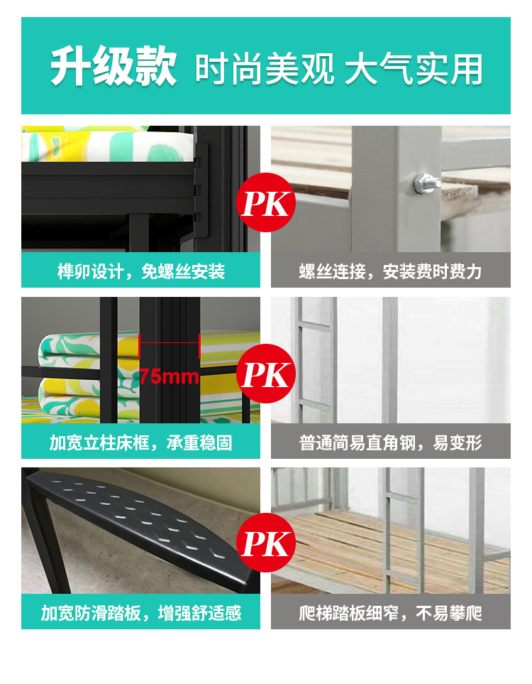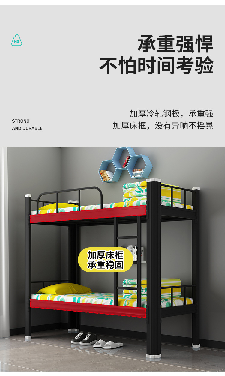 강철 학생 기숙사 이층 침대 더블 레이어 프로파일 침대 아파트 침대 건설 현장 높고 낮은 침대 직원 철제 프레임 침대스토어 가기