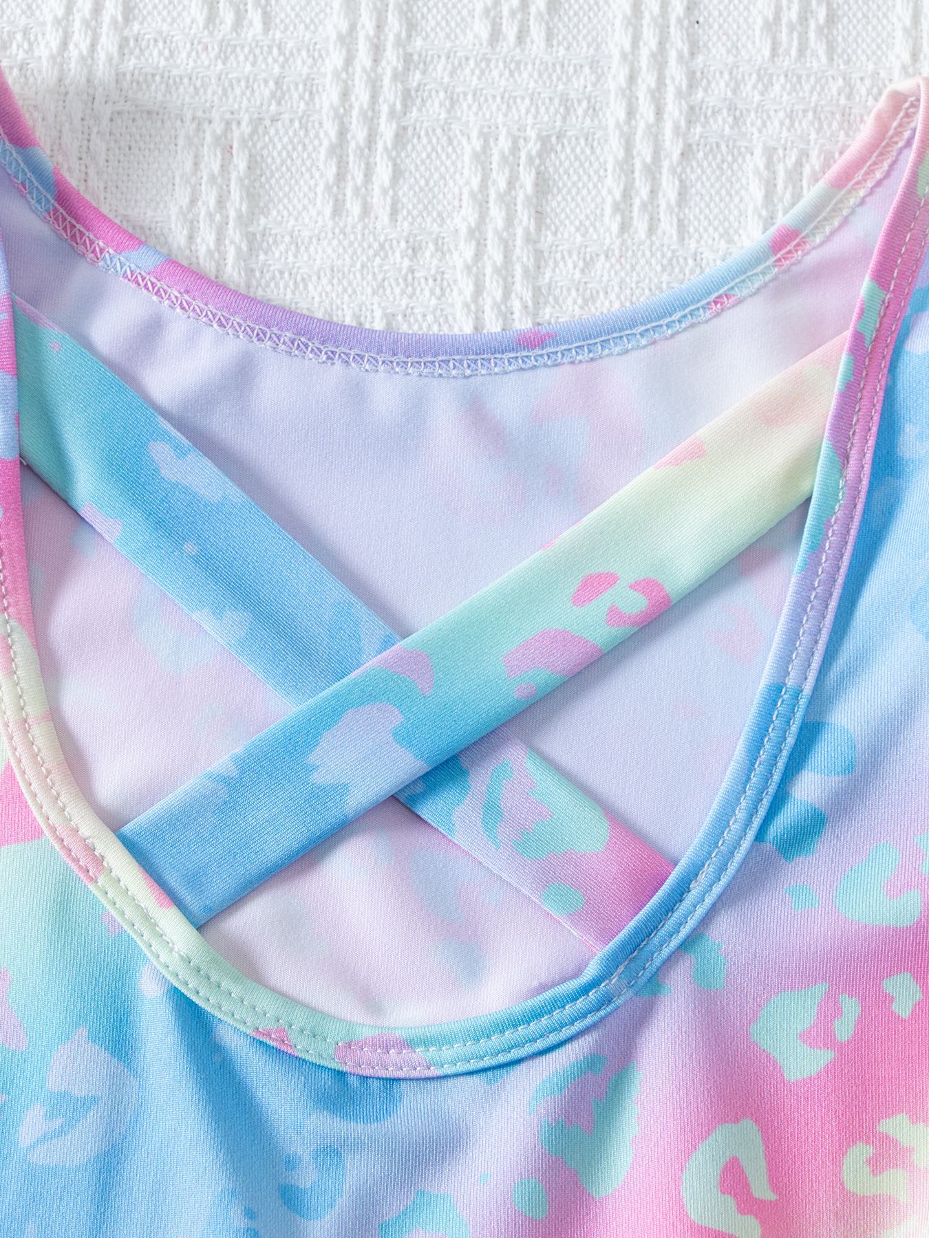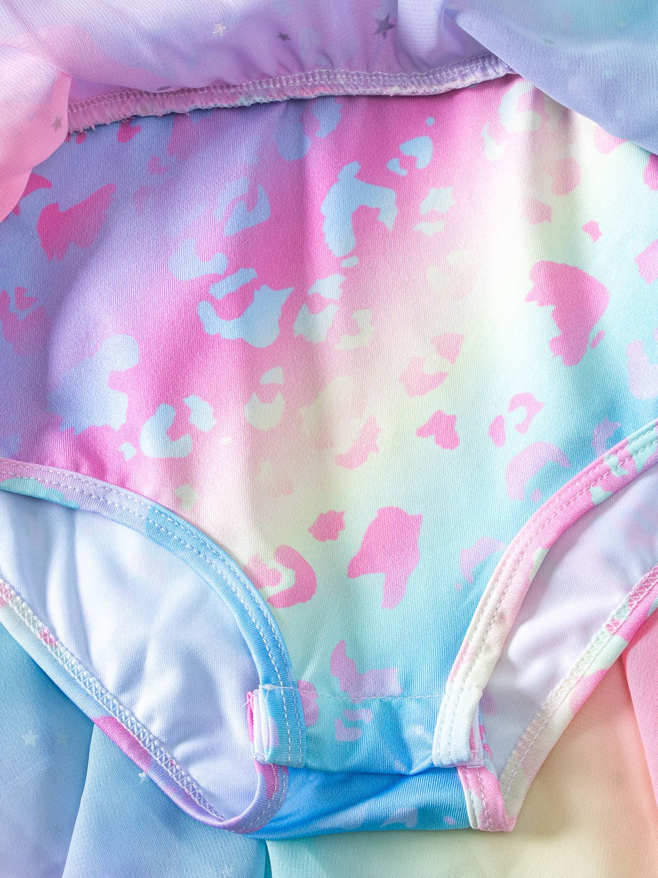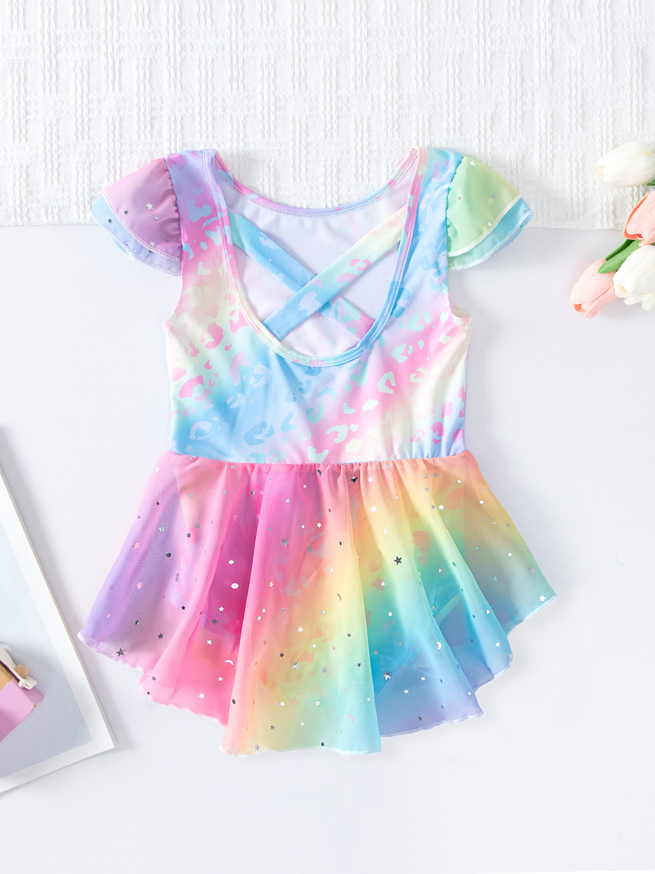국경을 넘나 드는 어린이 춤 옷 올인원 2025 원피스 유럽과 미국 소녀 인쇄 빈 아웃 연습 옷 시폰 공주 원피스