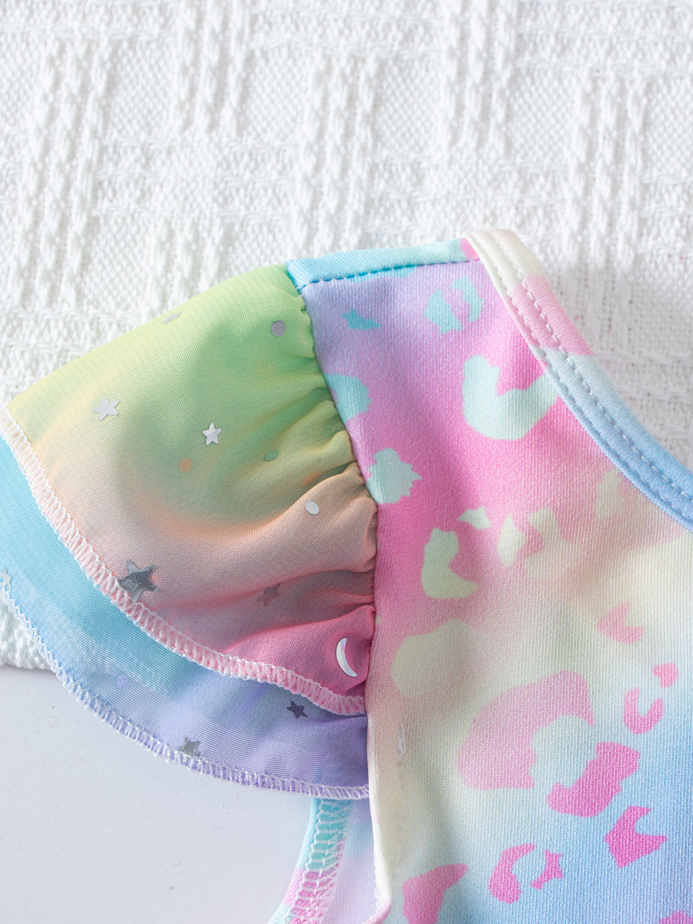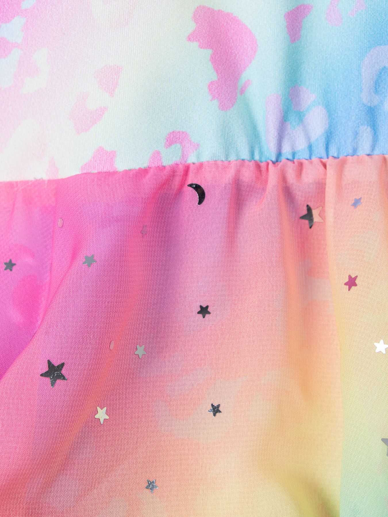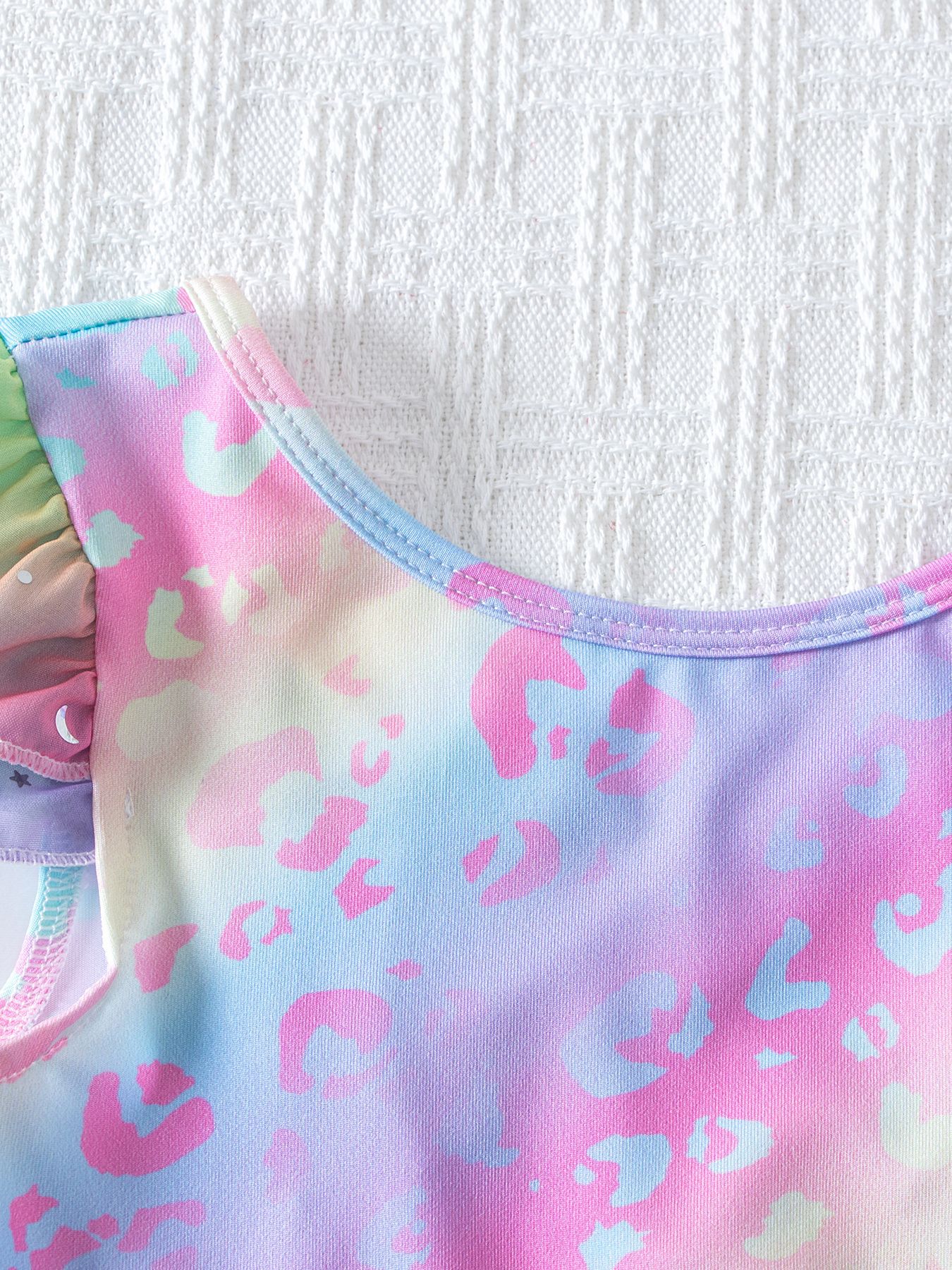 국경을 넘나 드는 어린이 춤 옷 올인원 2025 원피스 유럽과 미국 소녀 인쇄 빈 아웃 연습 옷 시폰 공주 원피스