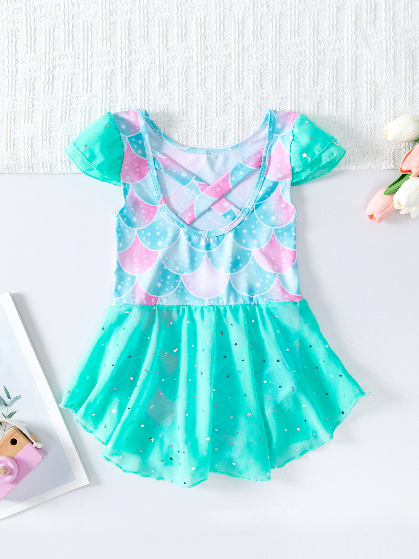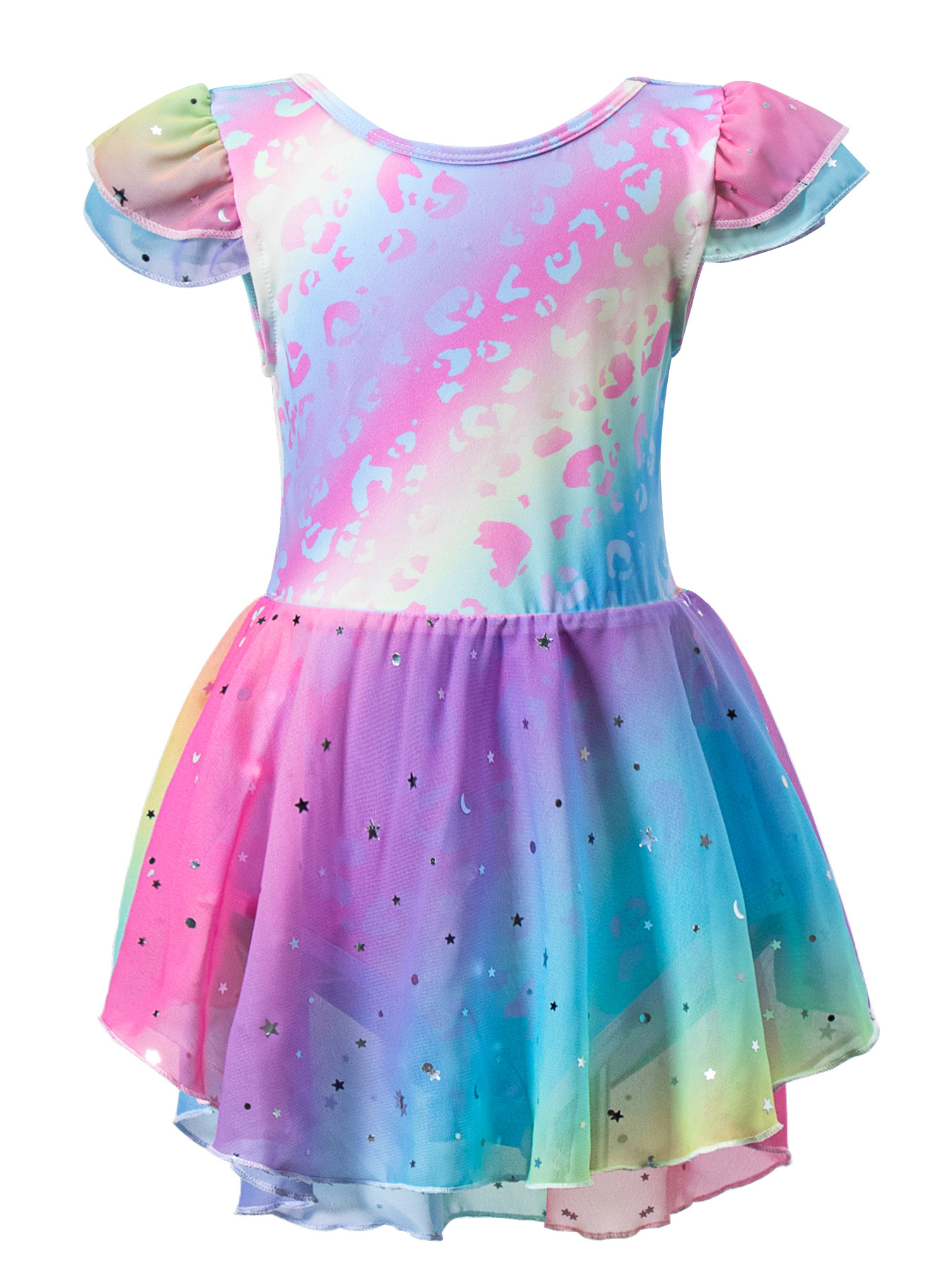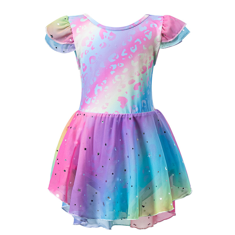 국경을 넘나 드는 어린이 춤 옷 올인원 2025 원피스 유럽과 미국 소녀 인쇄 빈 아웃 연습 옷 시폰 공주 원피스스토어 가기