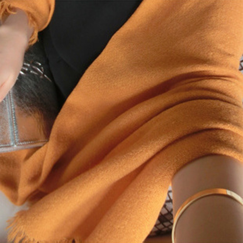 봄과 가을 단색 스카프 여성 유럽과 미국의 단색 올 매치 가을과 겨울 긴 양모 수염 스카프 듀얼 사용 얇은 목도리