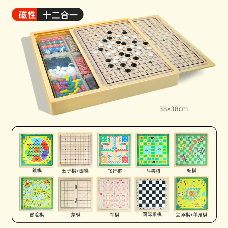 • 자기❤38CM [일인원] 체커 + 주사위 놀이 + 바둑 + 플라잉 체스 + 짐승 싸움 체스 + 어드벤처 체스 + 뱀 체스 + 체스 + 군 체스 + 체스 + 회의
