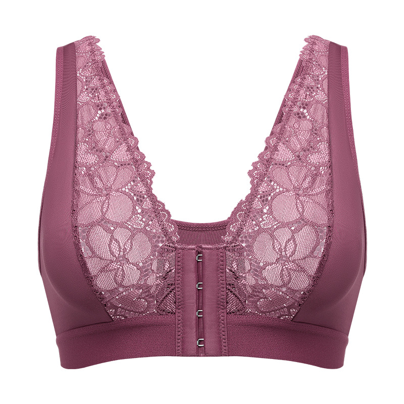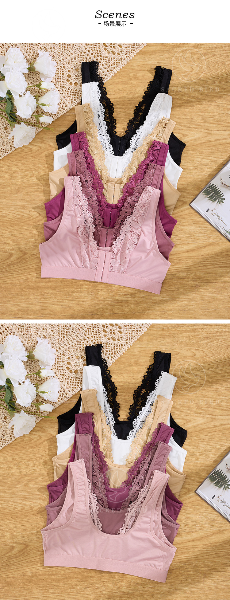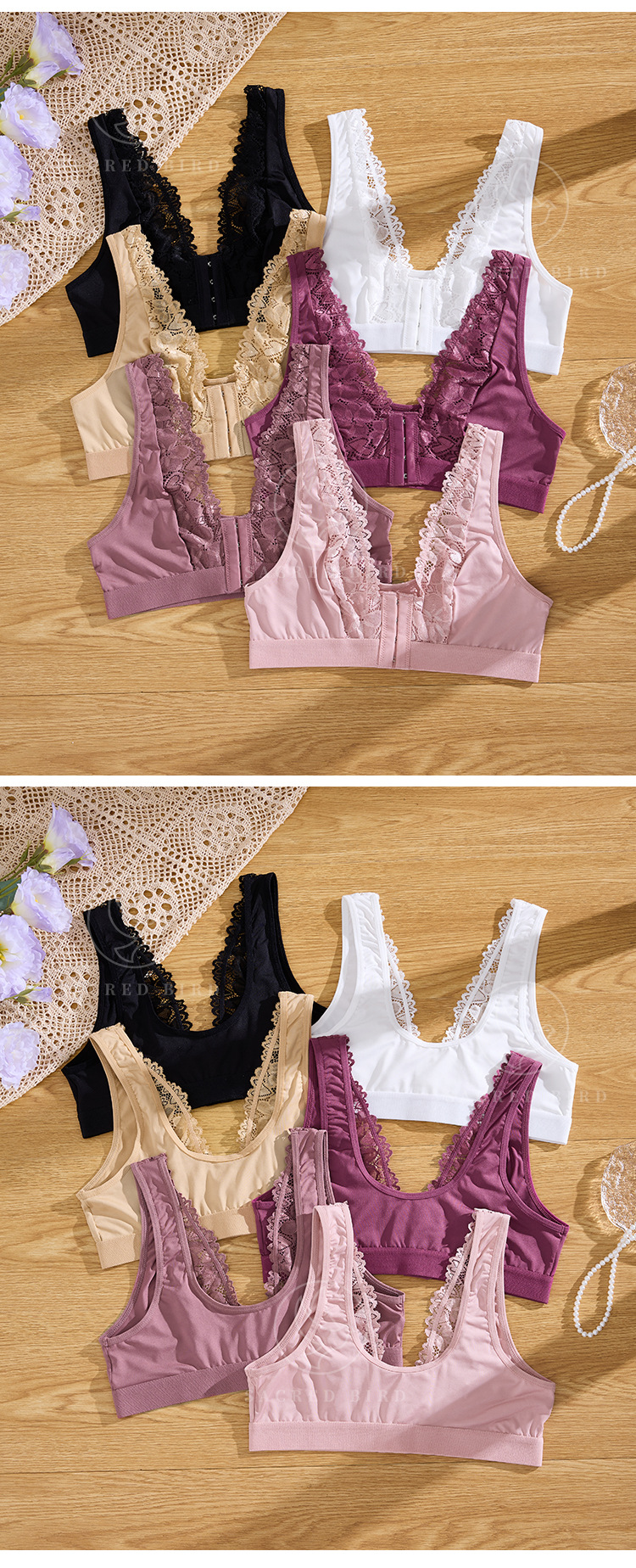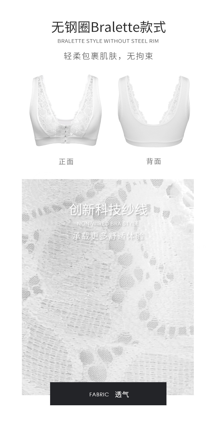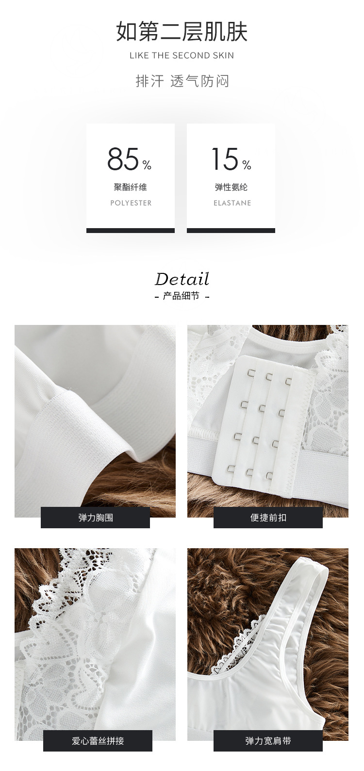 레이스 레이스 스티칭 아이스 실크 얇은 통기성 스포츠 속옷 섹시한 프론트 버클 사이드 Collateral 여성용 반지 없는 브래지어