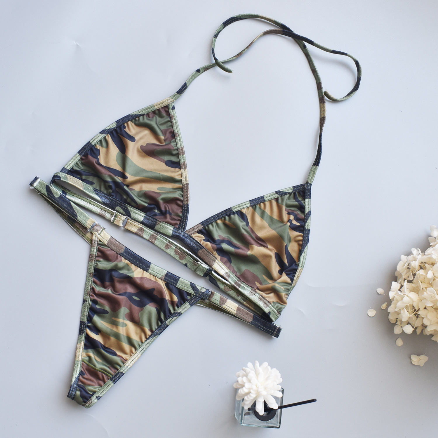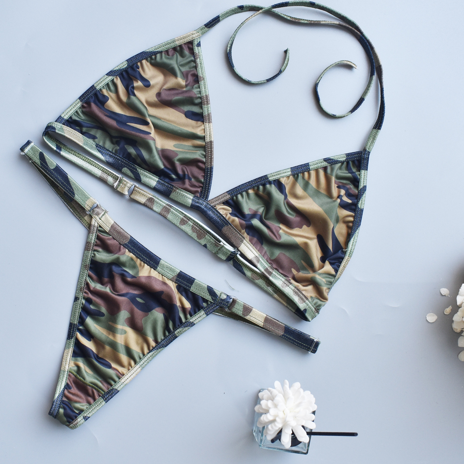 아마존 유럽과 미국 여성의 3 점 위장 열정 재미 비키니 빠른 건조 수영복 여성 속옷 V018