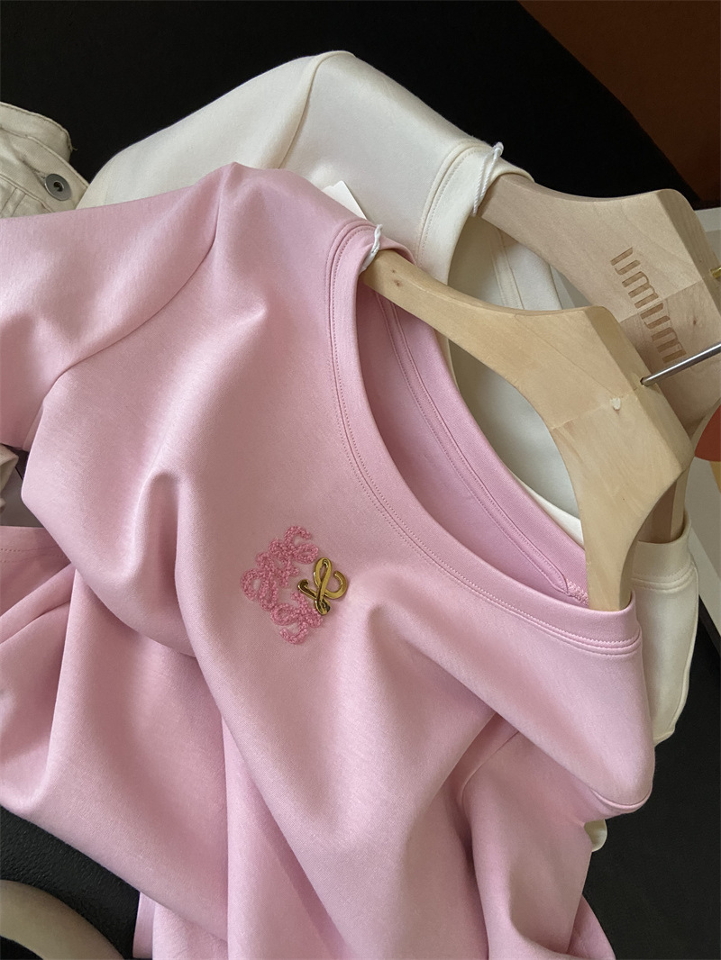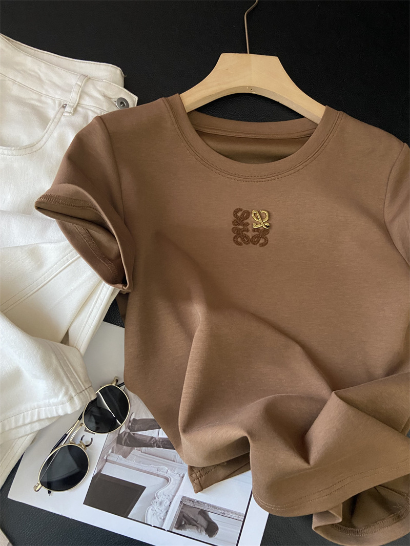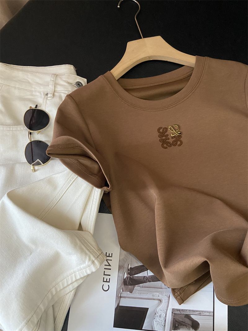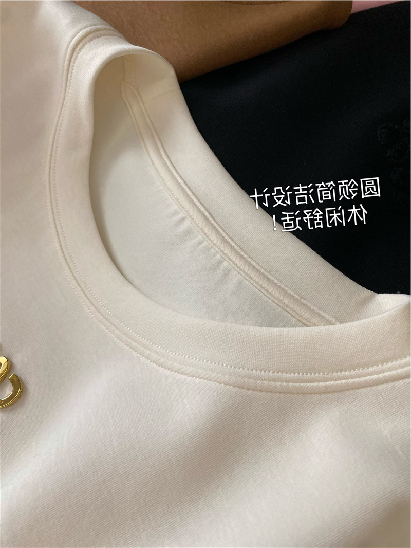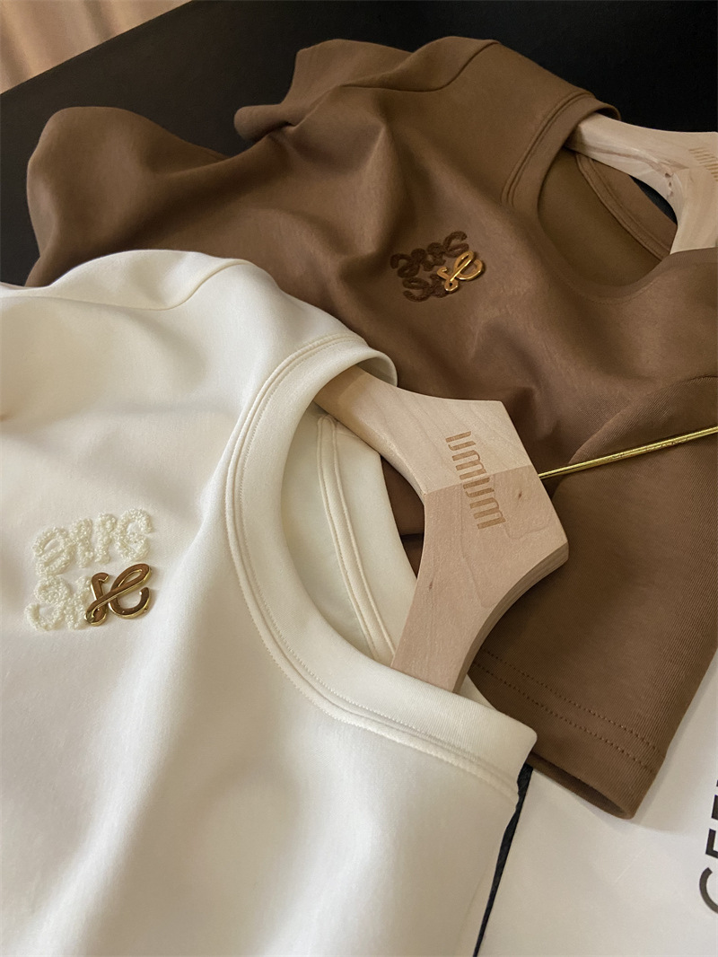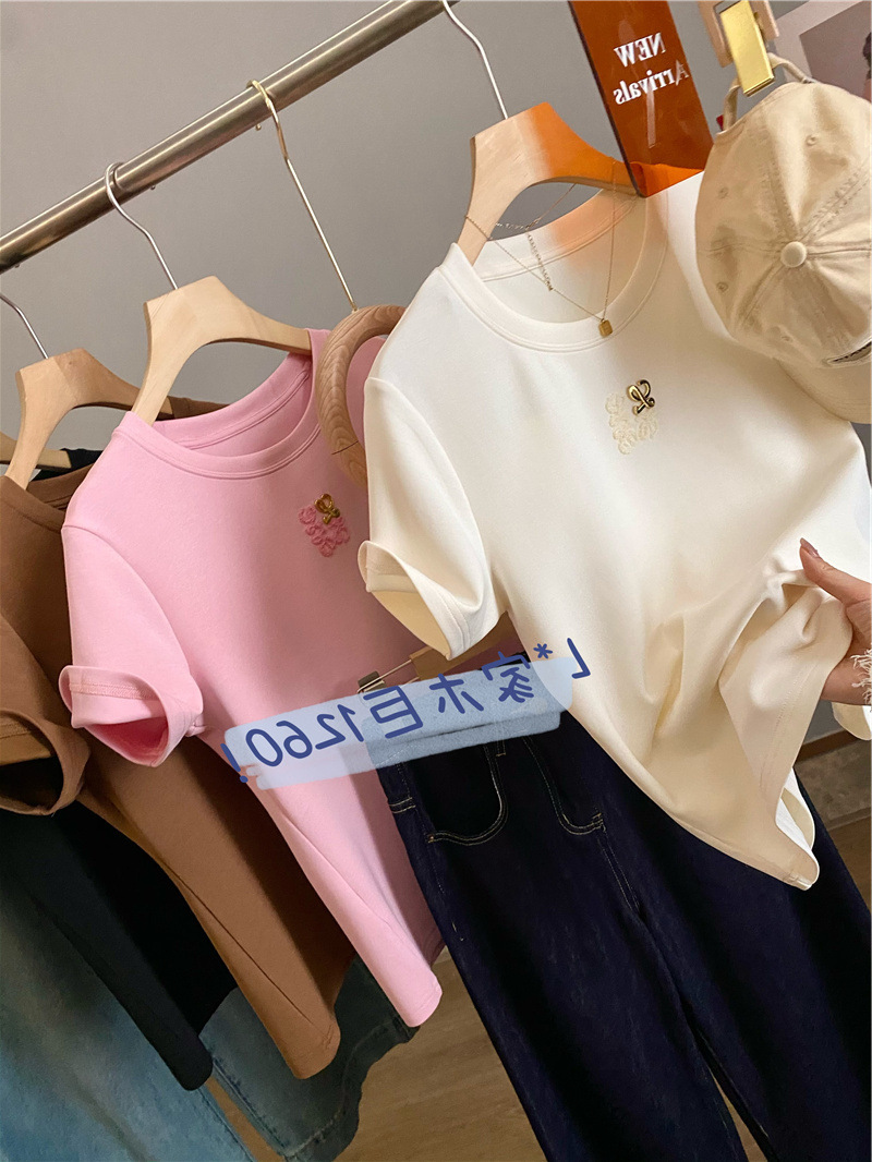 Moneka 중공업 타월 자수 캐주얼 크루 넥 반팔 티셔츠 여성의 2024 년 새 여름 느슨한 반소매 탑 Ins스토어 가기