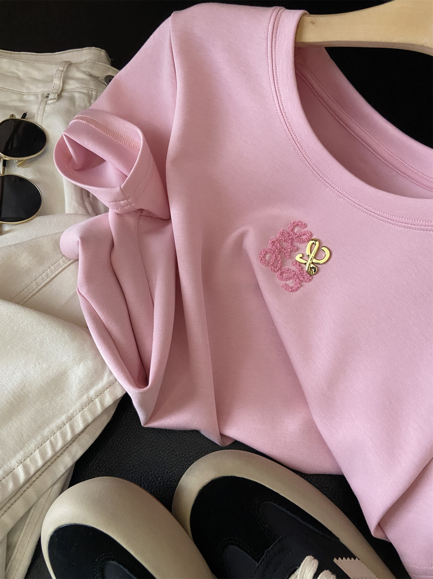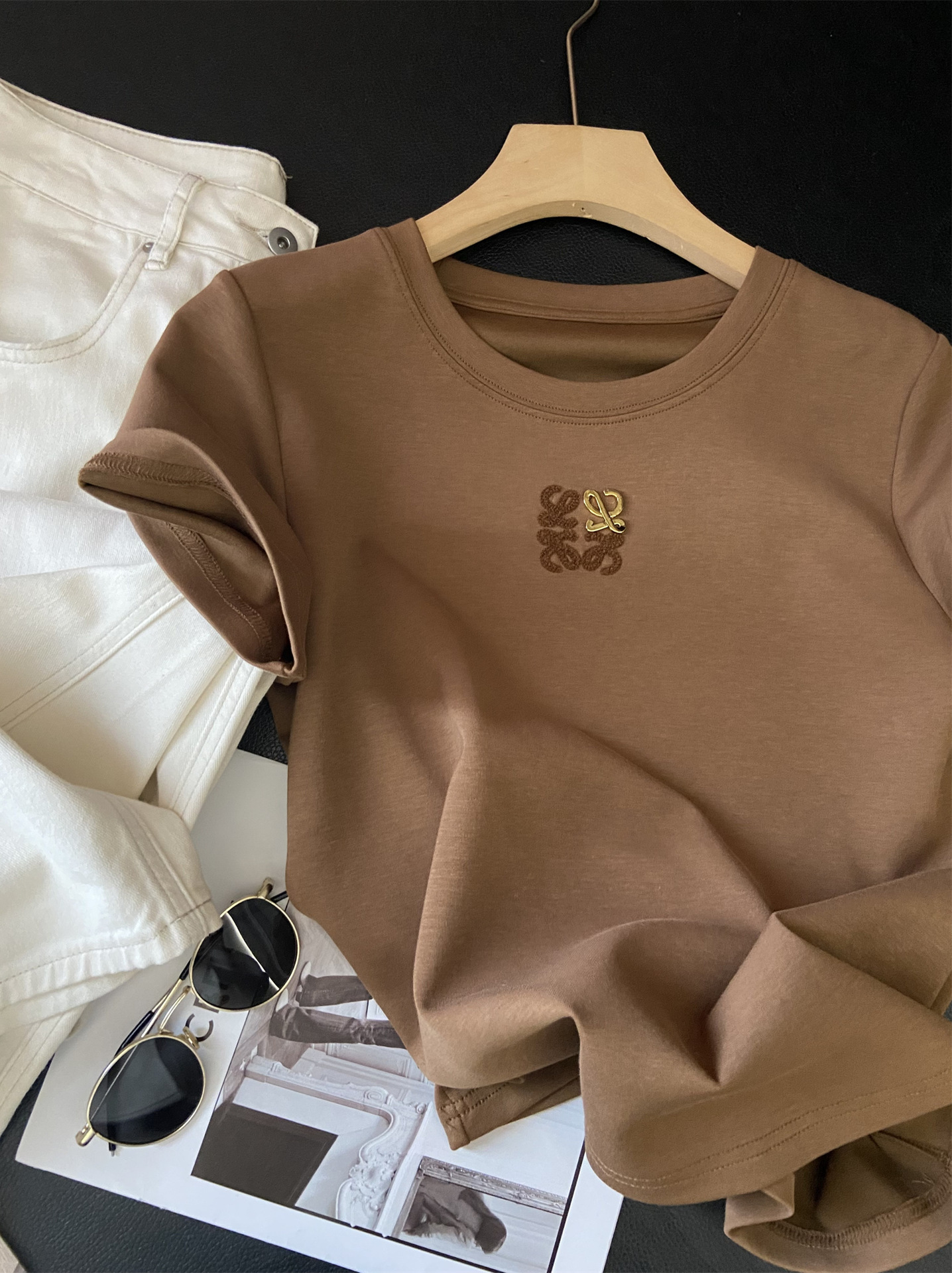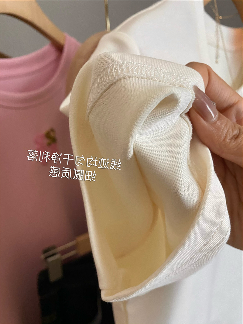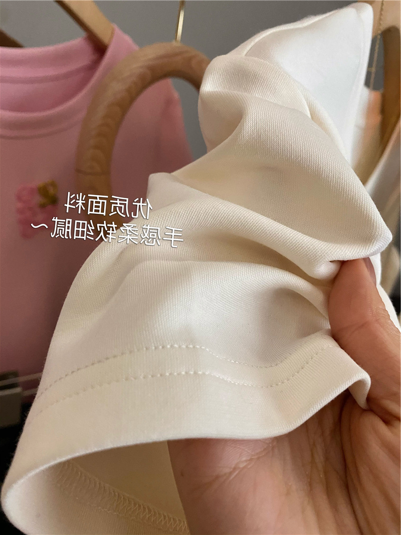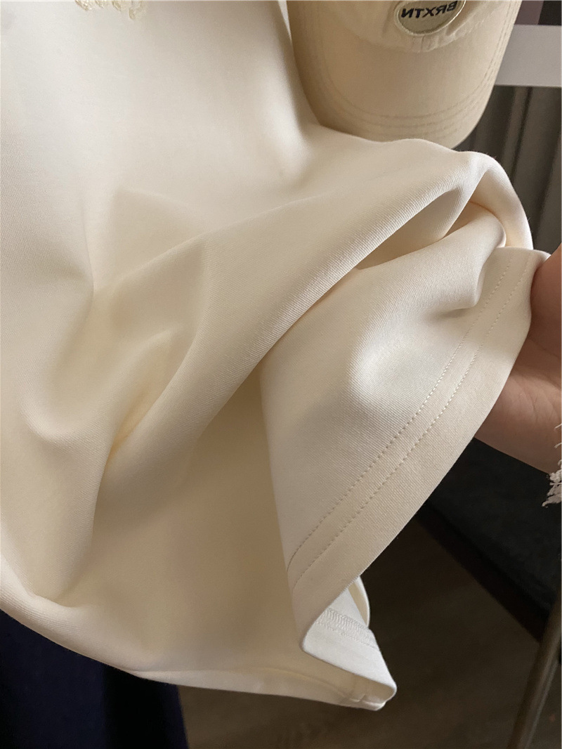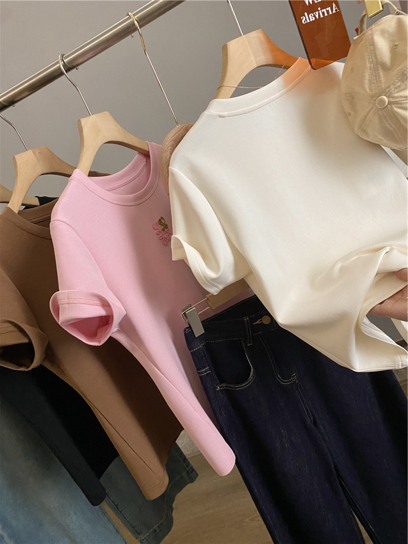 Moneka 중공업 타월 자수 캐주얼 크루 넥 반팔 티셔츠 여성의 2024 년 새 여름 느슨한 반소매 탑 Ins스토어 가기