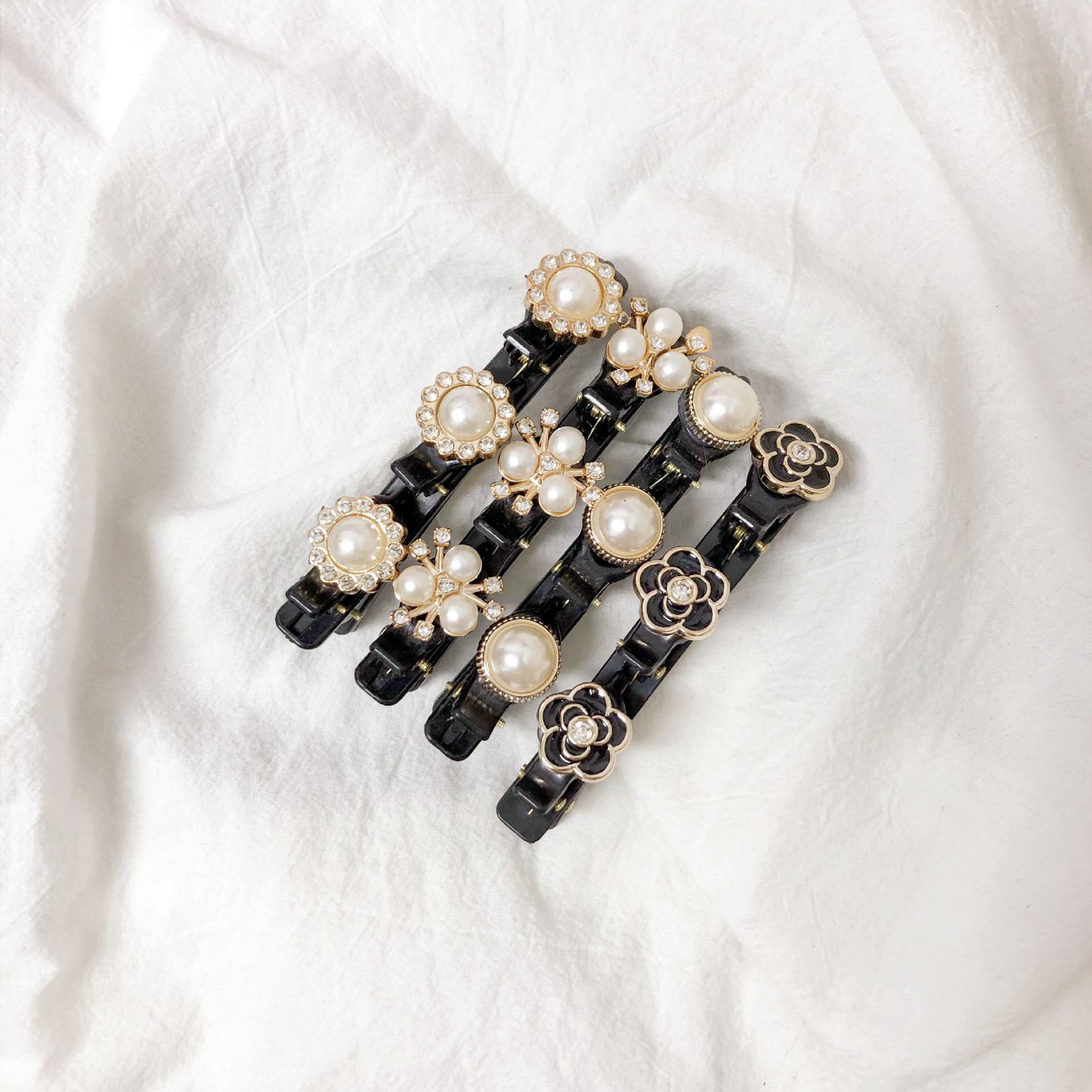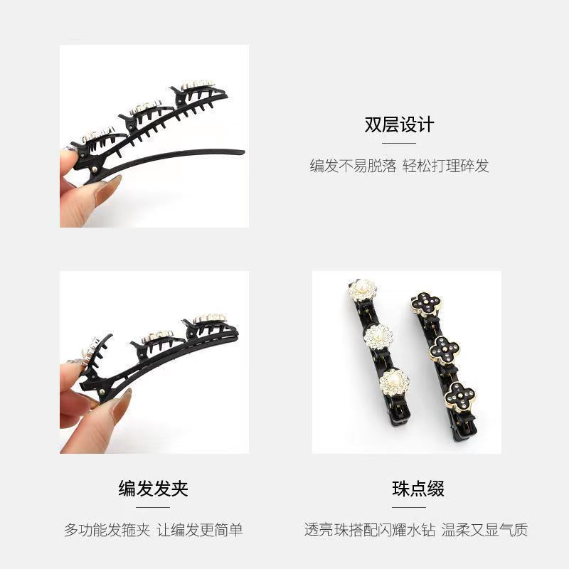 Xiaoxiangfeng 덕빌 클립 꼰 헤어 클립 소녀의 앞머리 사이드 헤어 클립 그물 붉은 부러진 머리 마무리 아티팩트 클립 머리 장식스토어 가기