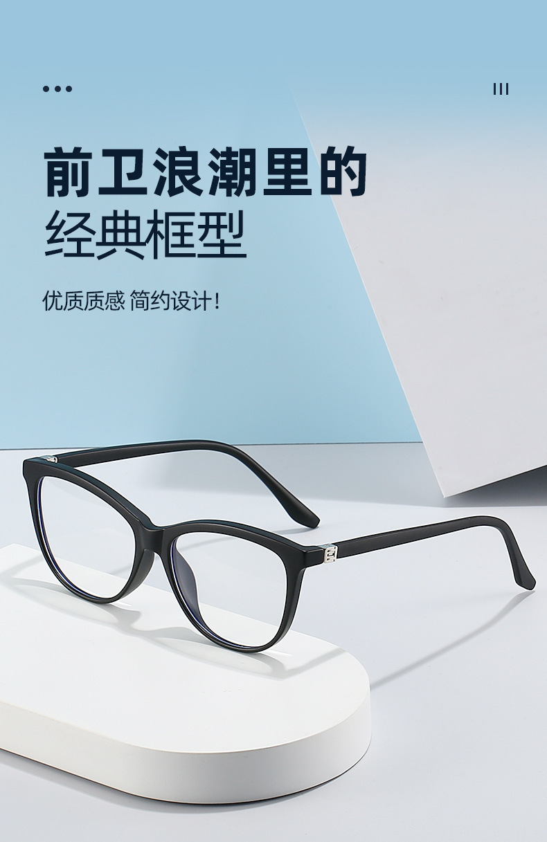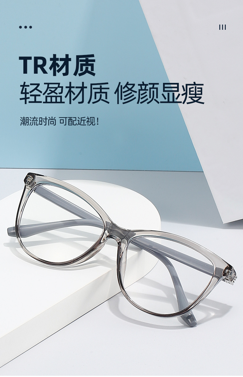 새로운 스타일의 간단한 고양이 안경 프레임 여성의 고급 대학 스타일 안티 블루 라이트 안경 쿨 센스 세련된 플랫 안경 남성 경량
